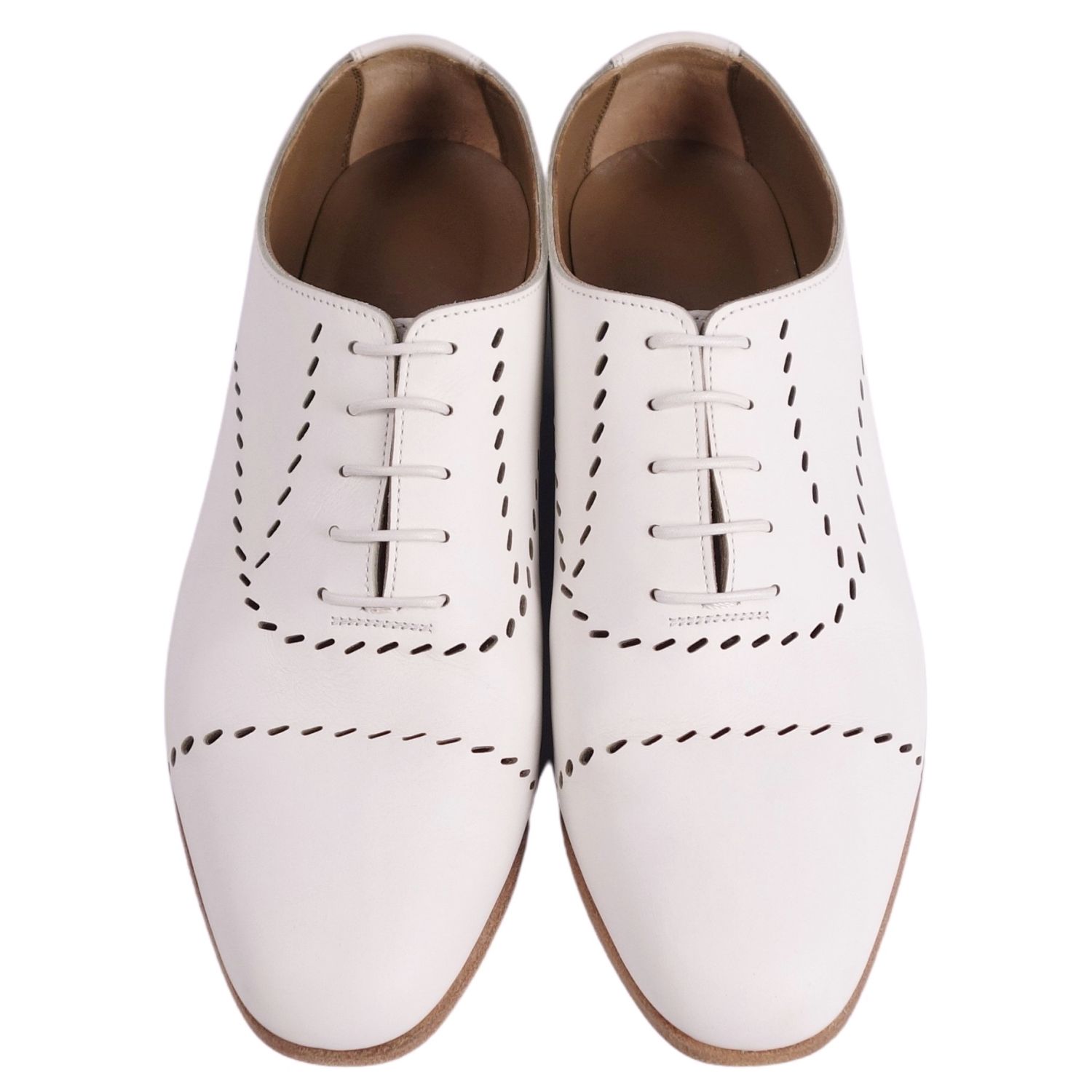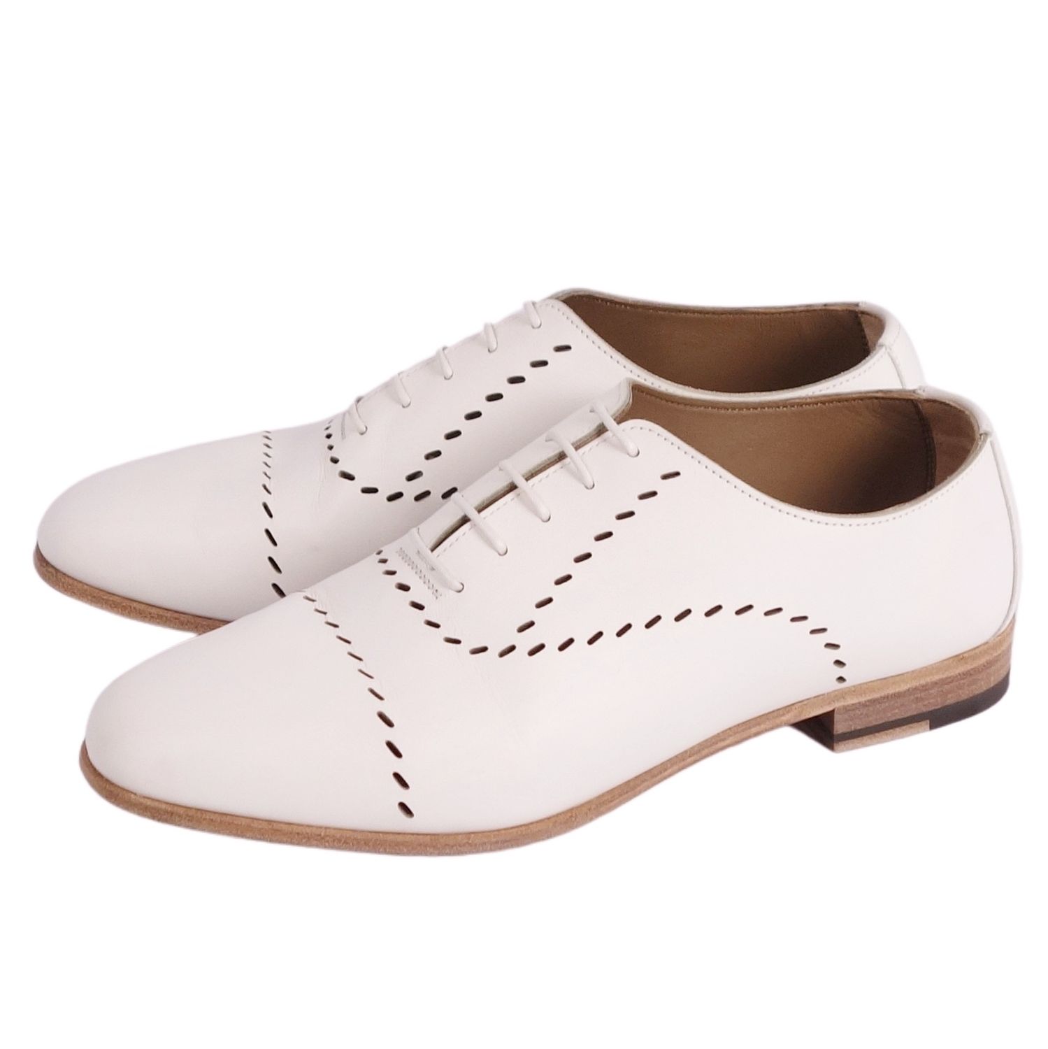 エルメス HERMES レザーシューズ オックスフォード パンチング レザー 革靴 レディース イタリア製 ホワイト サイズ36(23cm相当)