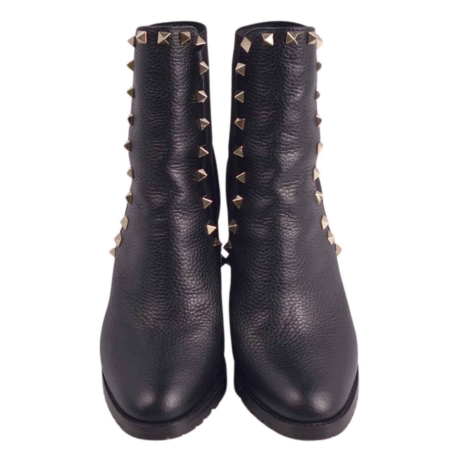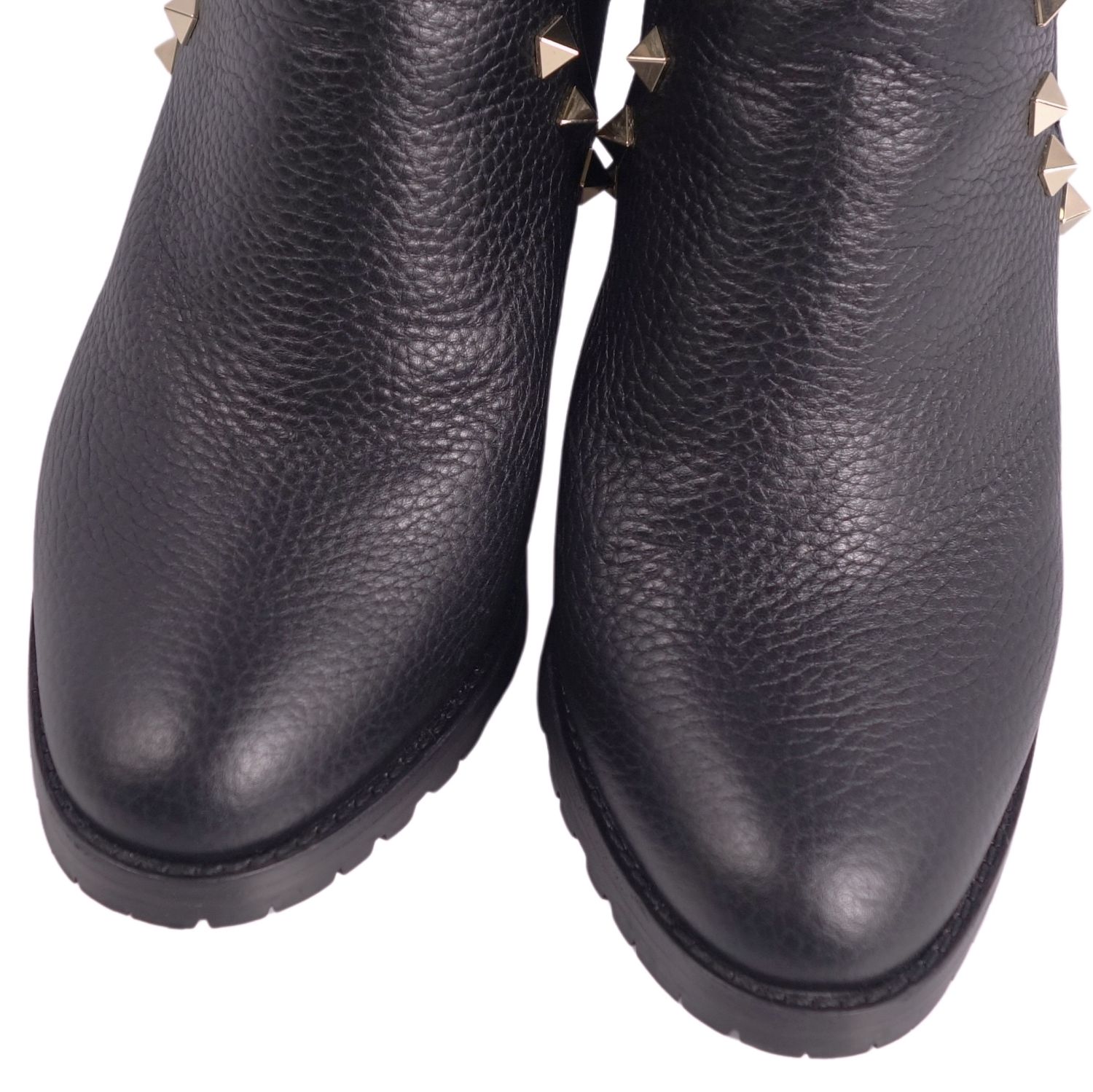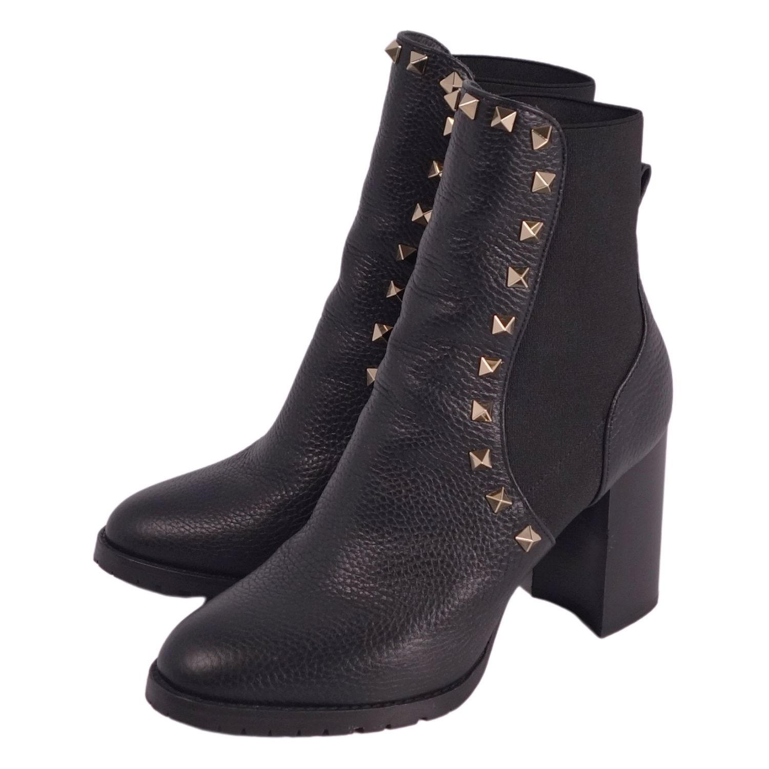 ヴァレンティノ VALENTINO ブーツ ショートブーツ サイドゴア スタッズ レザー ヒール シューズ 靴 レディース イタリア製 ブラック サイズ37.5(24.5cm相当)