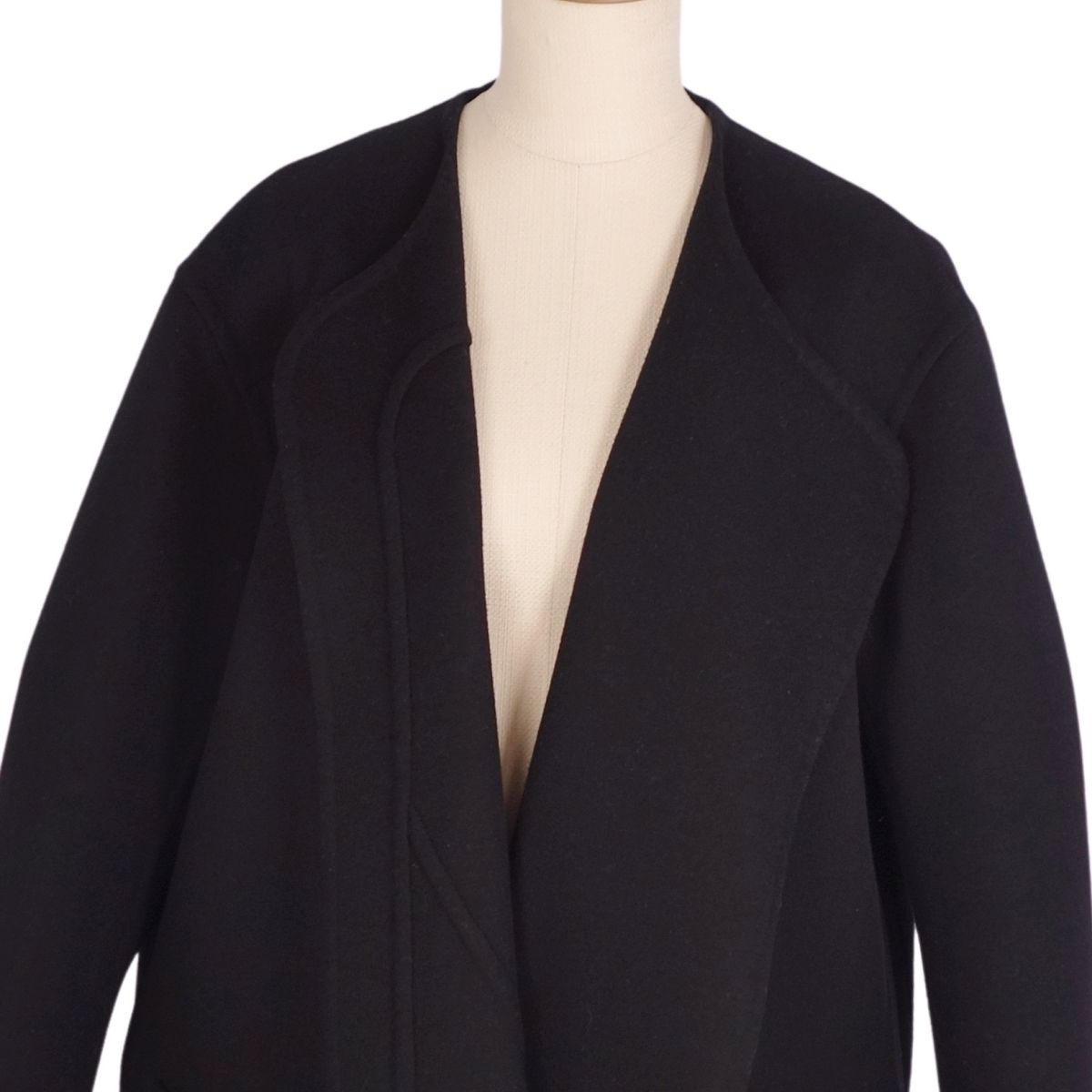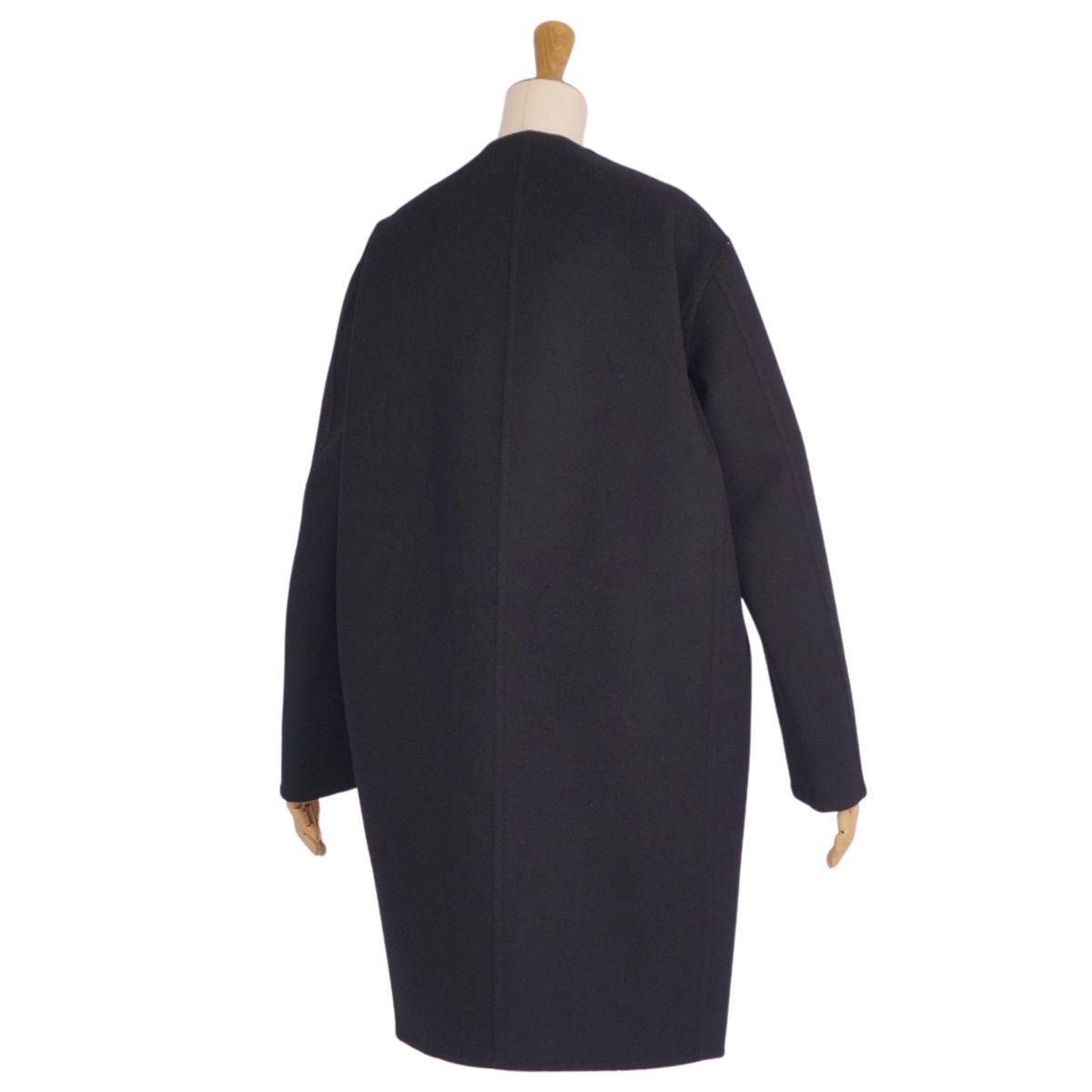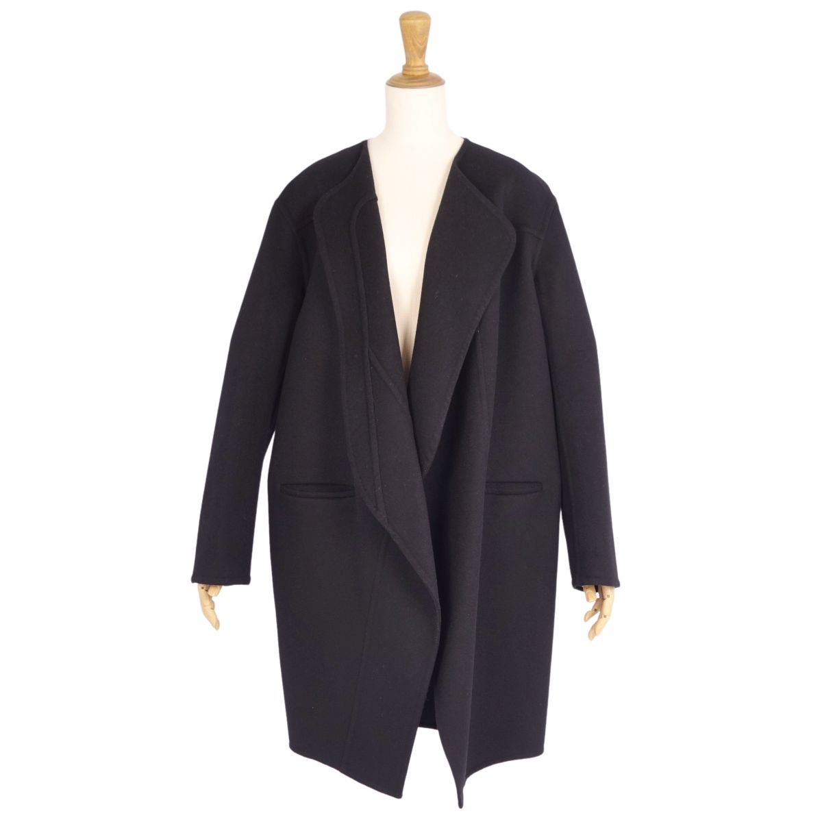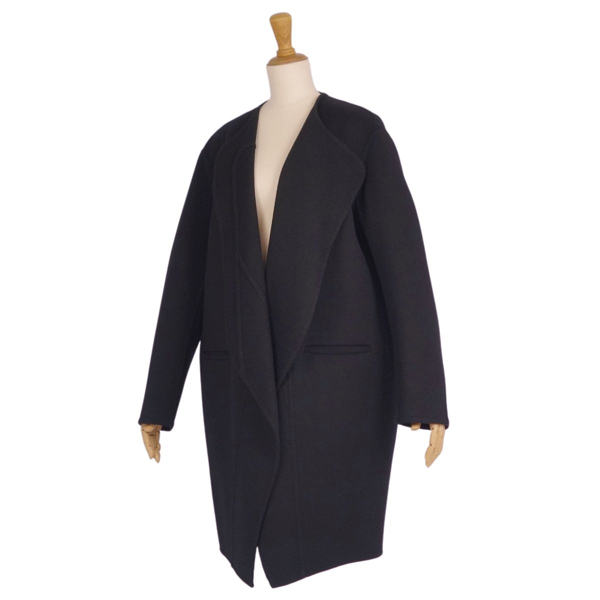 セリーヌ CELINE コート フィービー期 ロングコート ボタンレス ウール カシミヤ アウター レディース イタリア製 ブラック サイズ36(S相当)