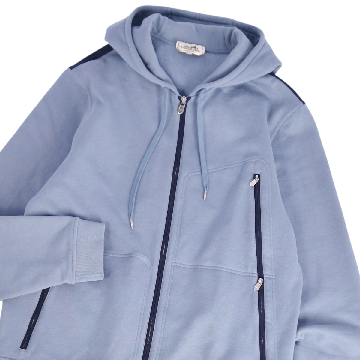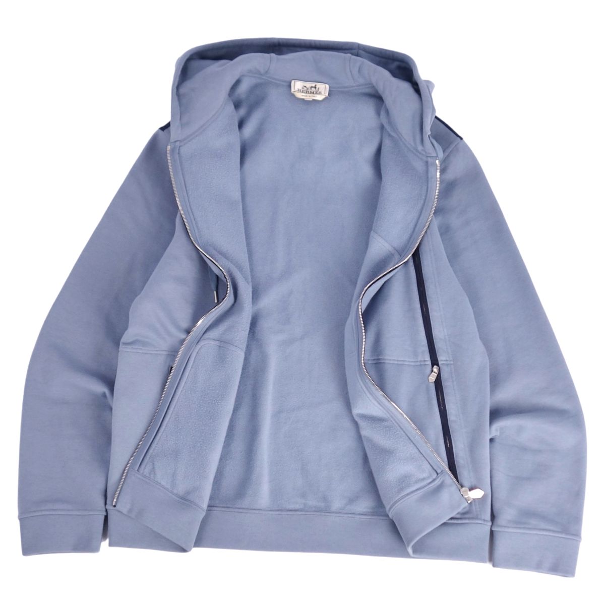 【極美品】エルメス HERMES パーカー 24SS フーディー スウェット ジップアップ コットン トップス メンズ イタリア製 L ブルー【中古】