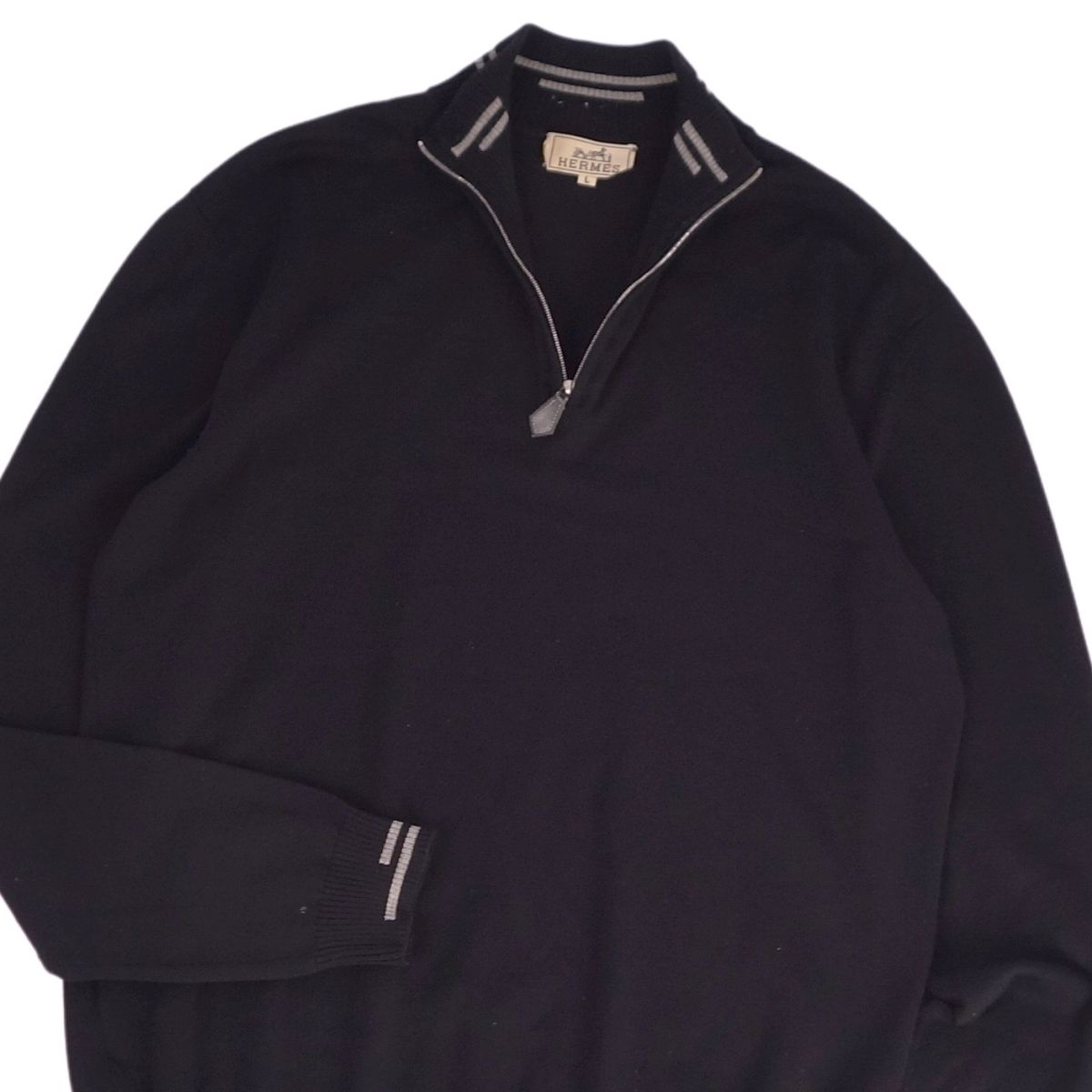 【美品】エルメス HERMES ニット ハーフジップ セーター ロングスリーブ 長袖 ウール トップス メンズ イタリア製 L ブラック【中古】
