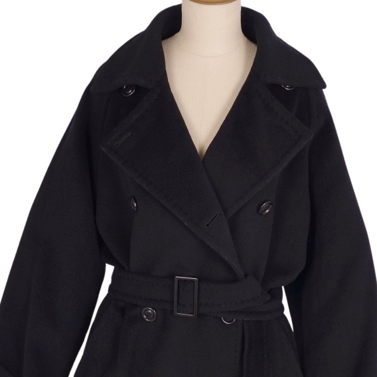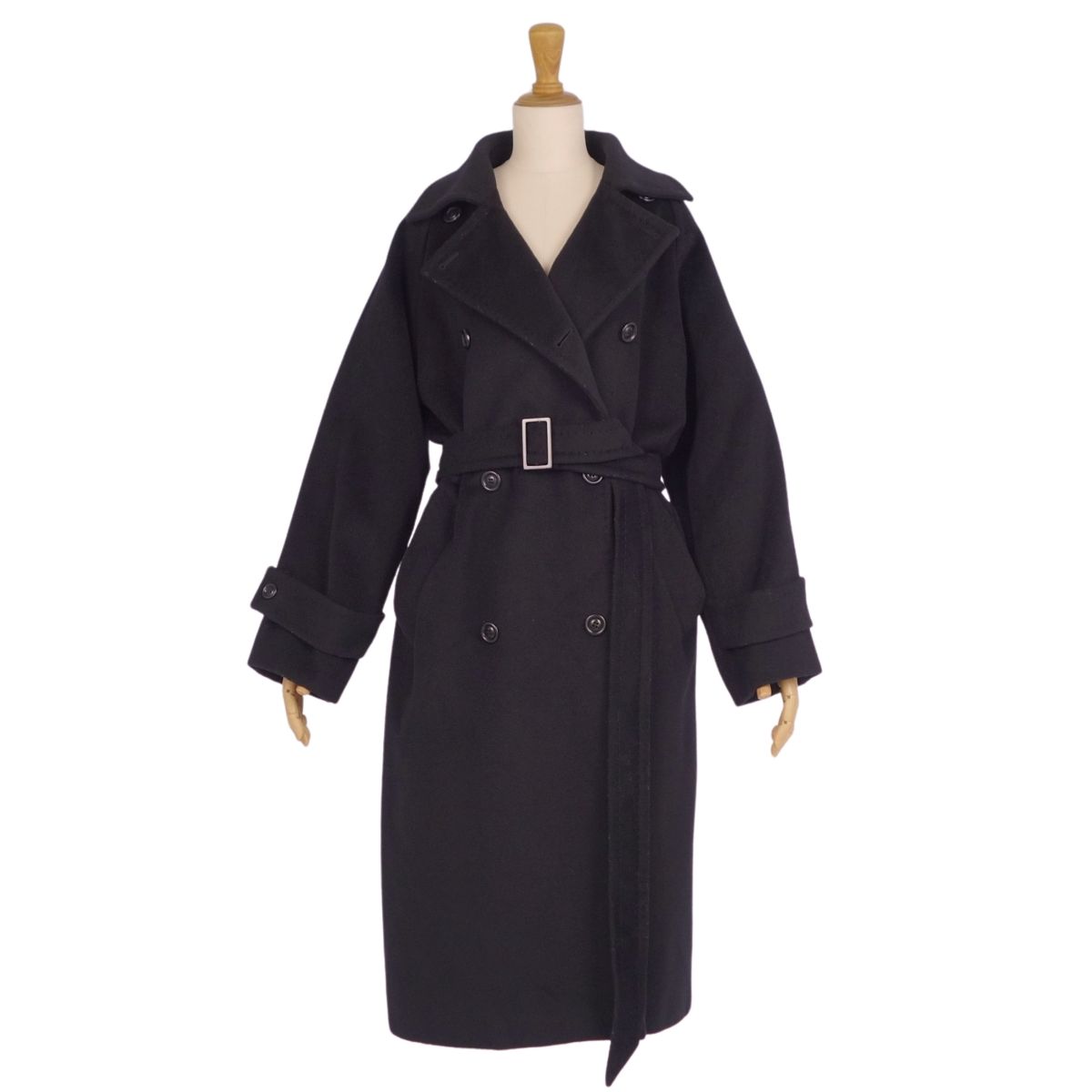 マックスマーラ Max Mara コート 白タグ ベルト付き ロングコート ウール カシミヤ アウター レディース イタリア製 ブラック サイズJI38 USA4 GB6(M相当)