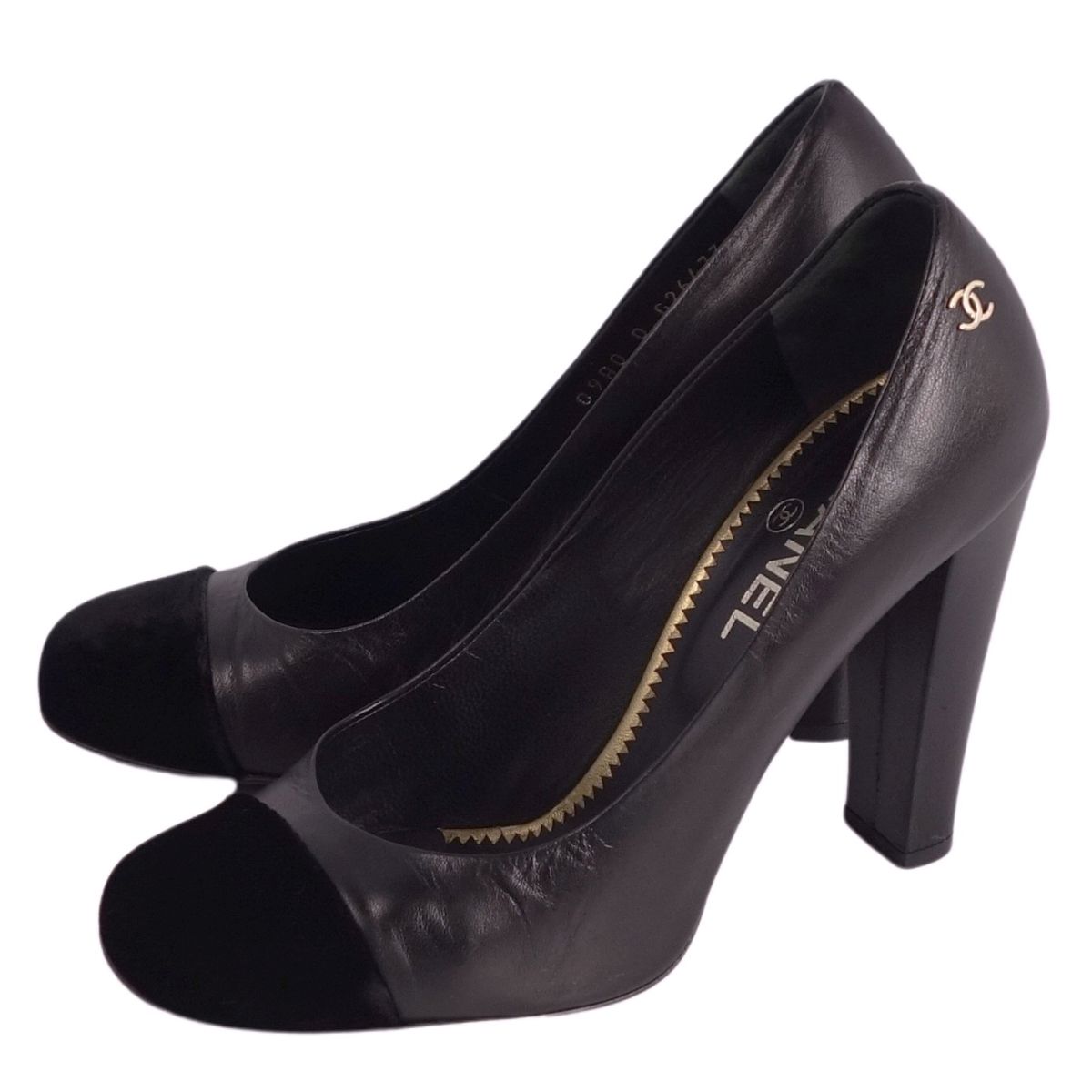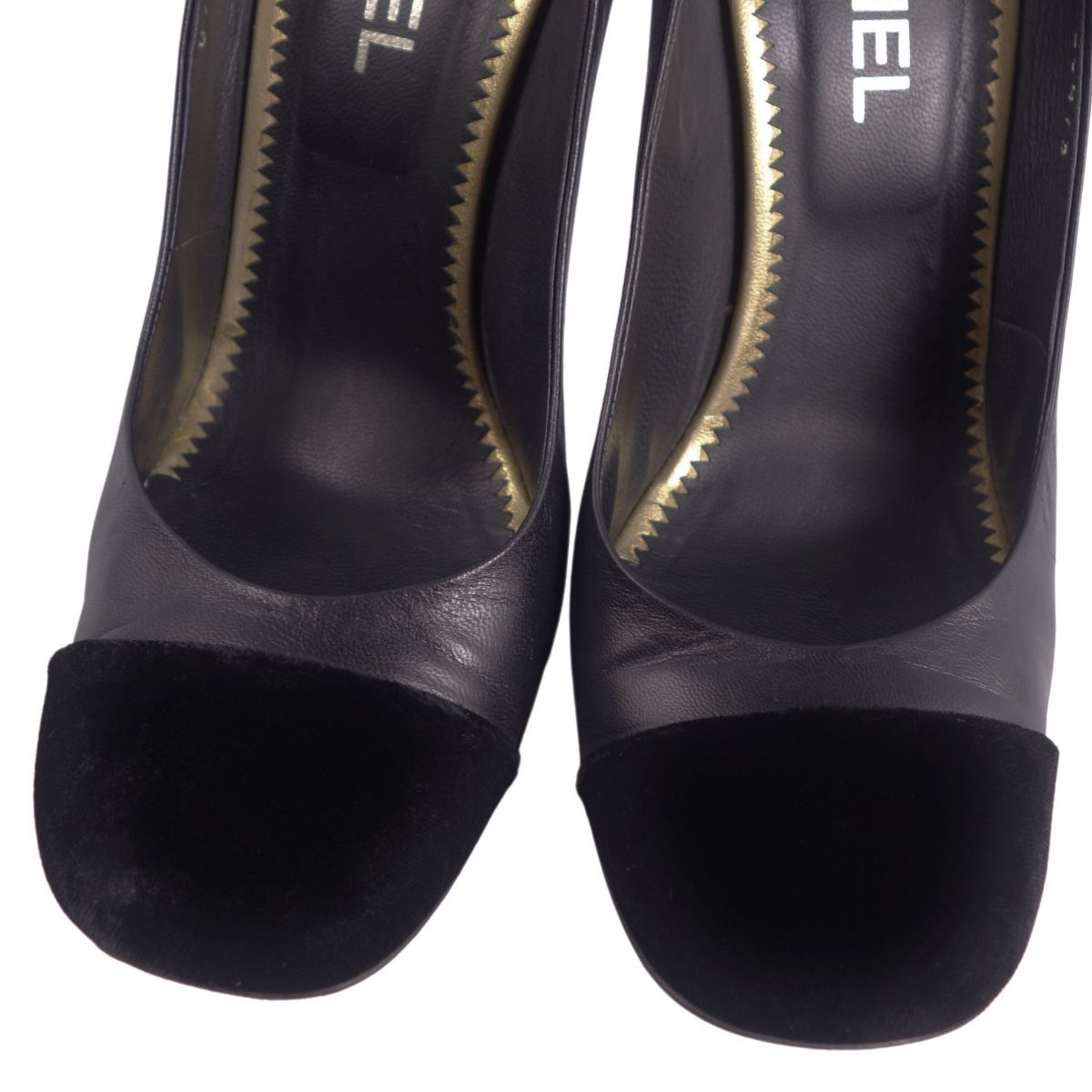 シャネル CHANEL パンプス G26473 ココマーク ベロア レザー ヒール シューズ 靴 レディース イタリア製 ブラック サイズ38.5C