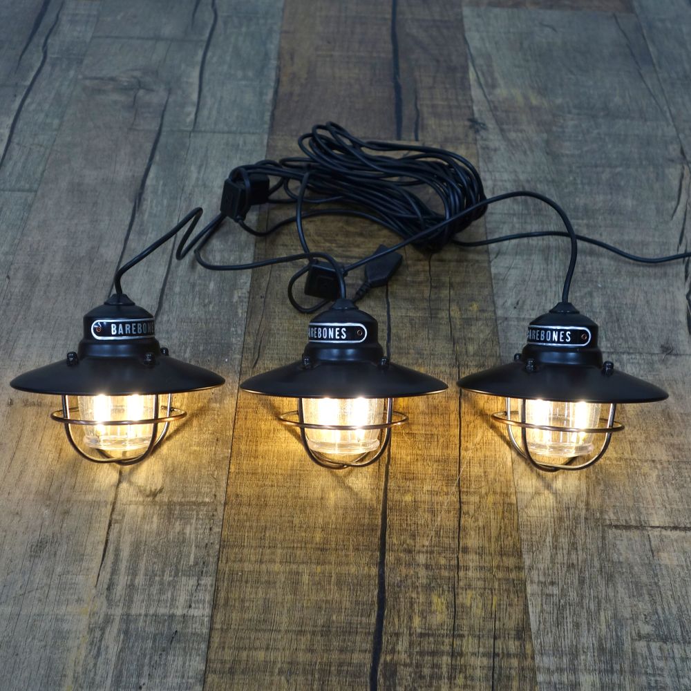 ・BAREBONES「エジソンストリングライト LED ブラック 3連」です♪