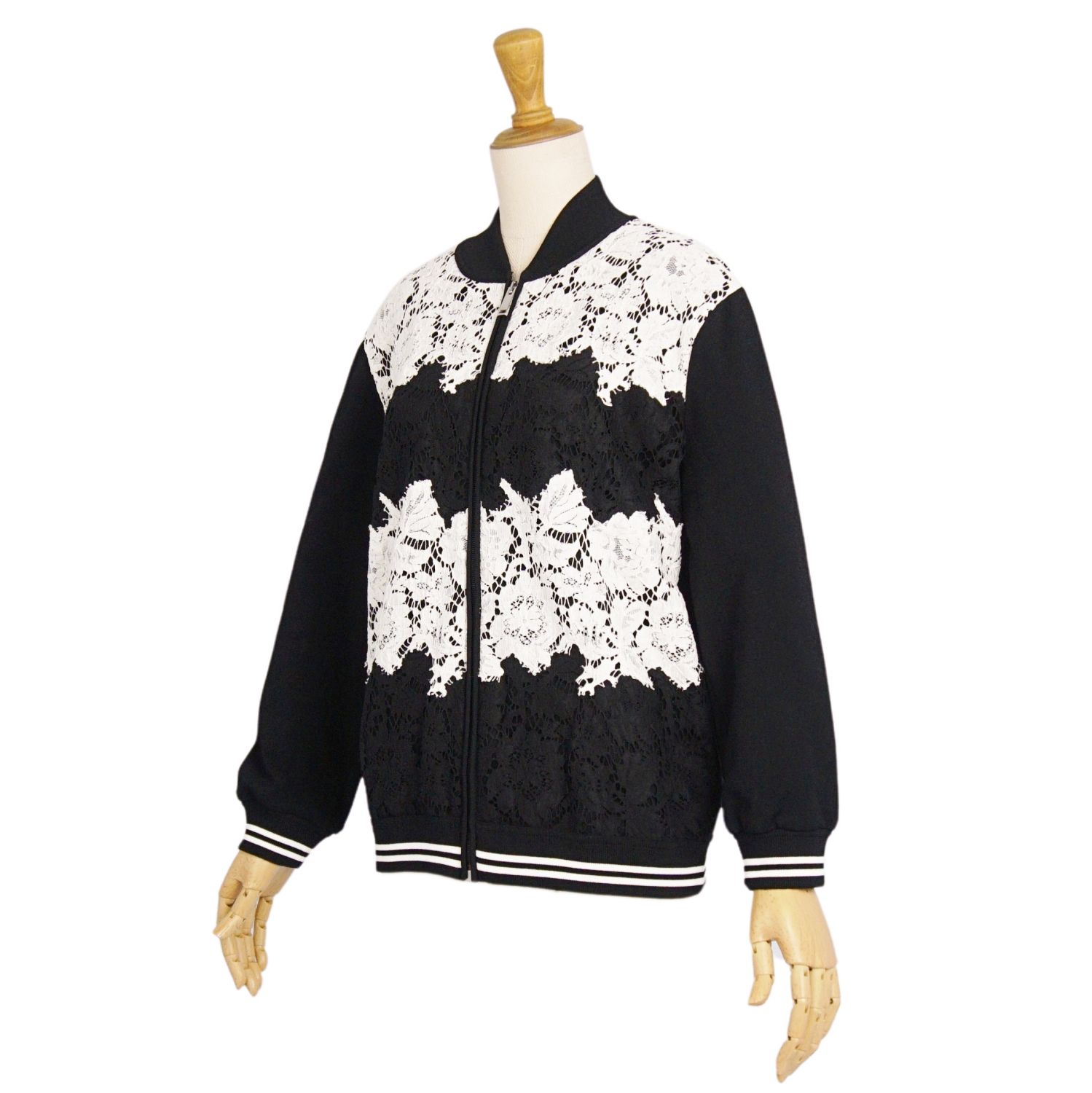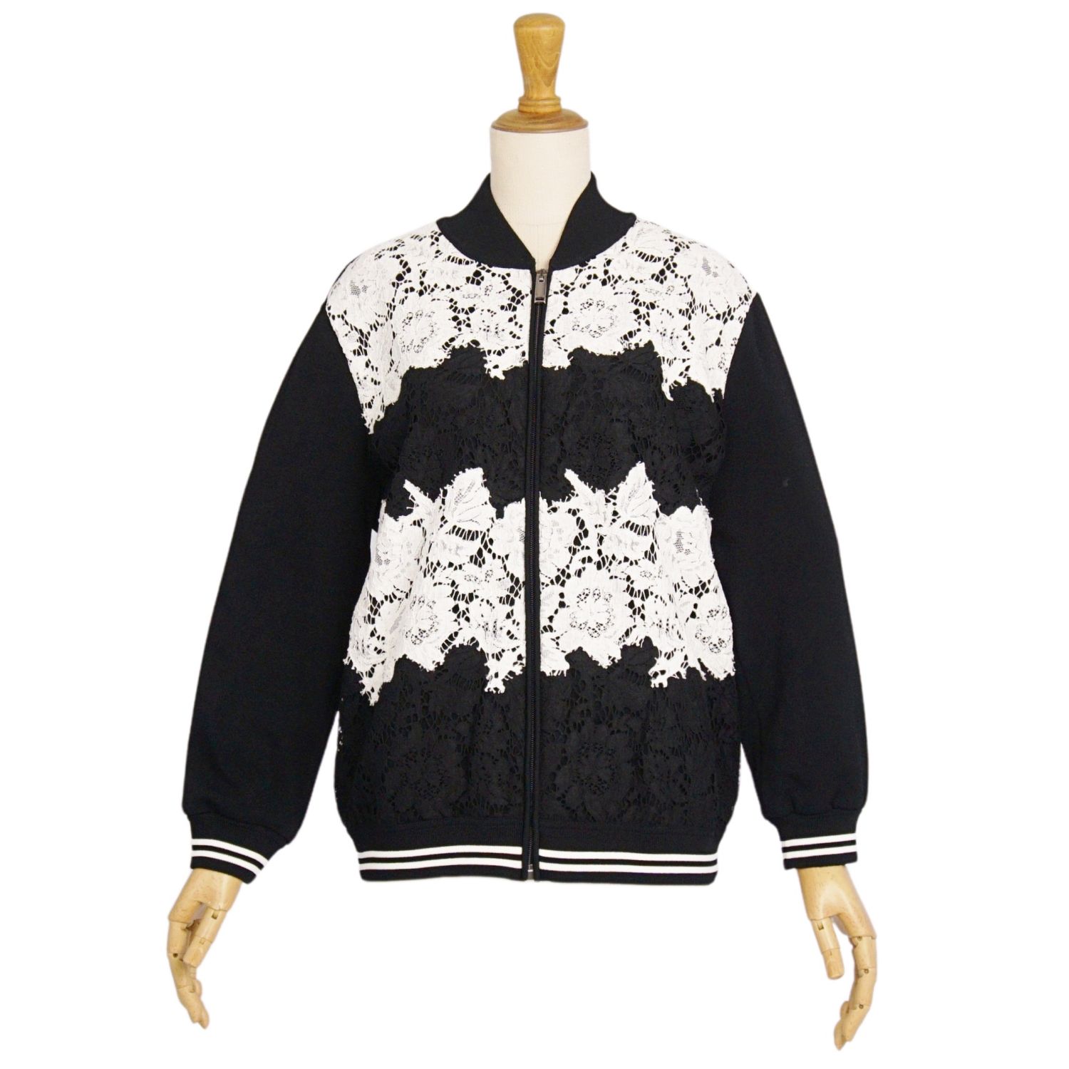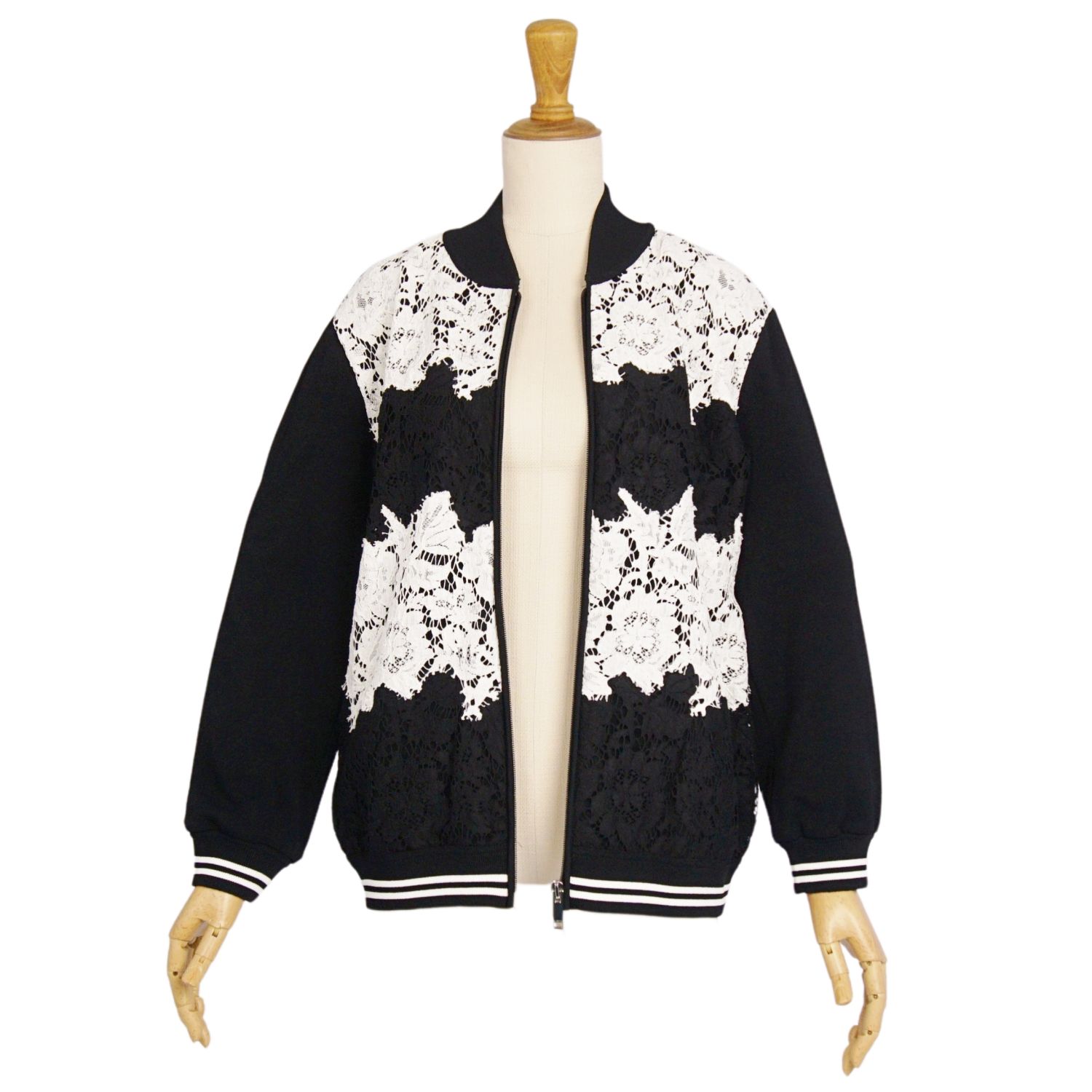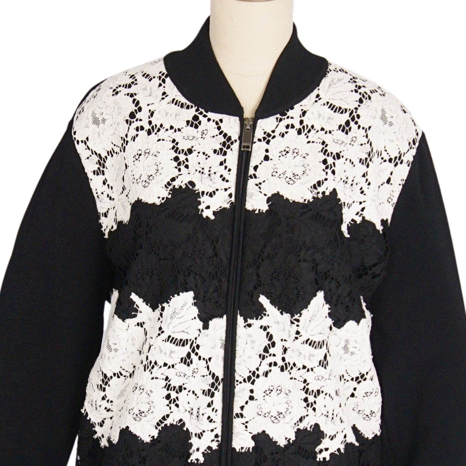 ヴァレンティノ VALENTINO ジャケット ブルゾン ジップアップ レース ジャージー アウター レディース ブラック/ホワイト サイズL