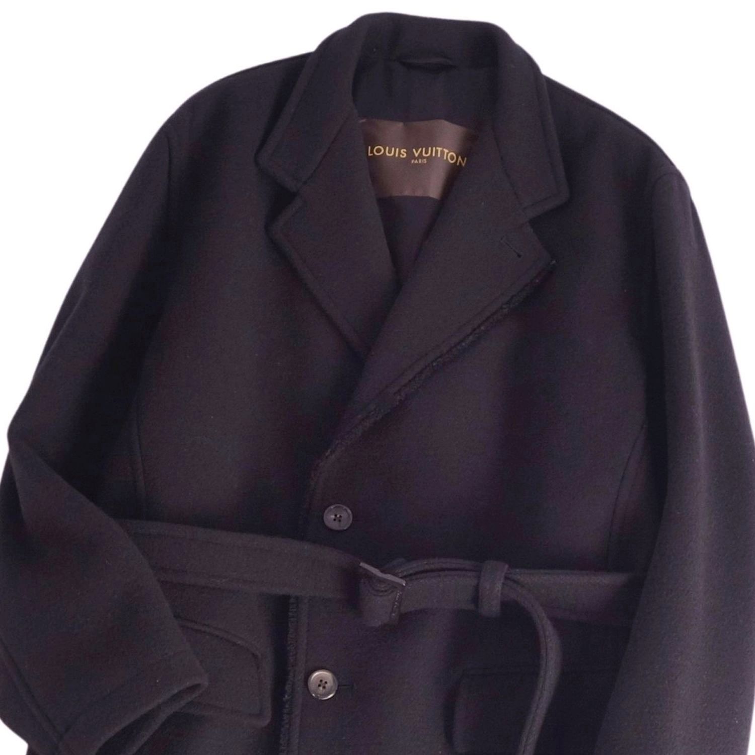 ルイヴィトン LOUIS VUITTON ジャケット コート ショート丈 ベルト付き ウール 無地 アウター メンズ ブラック サイズ52(L相当)