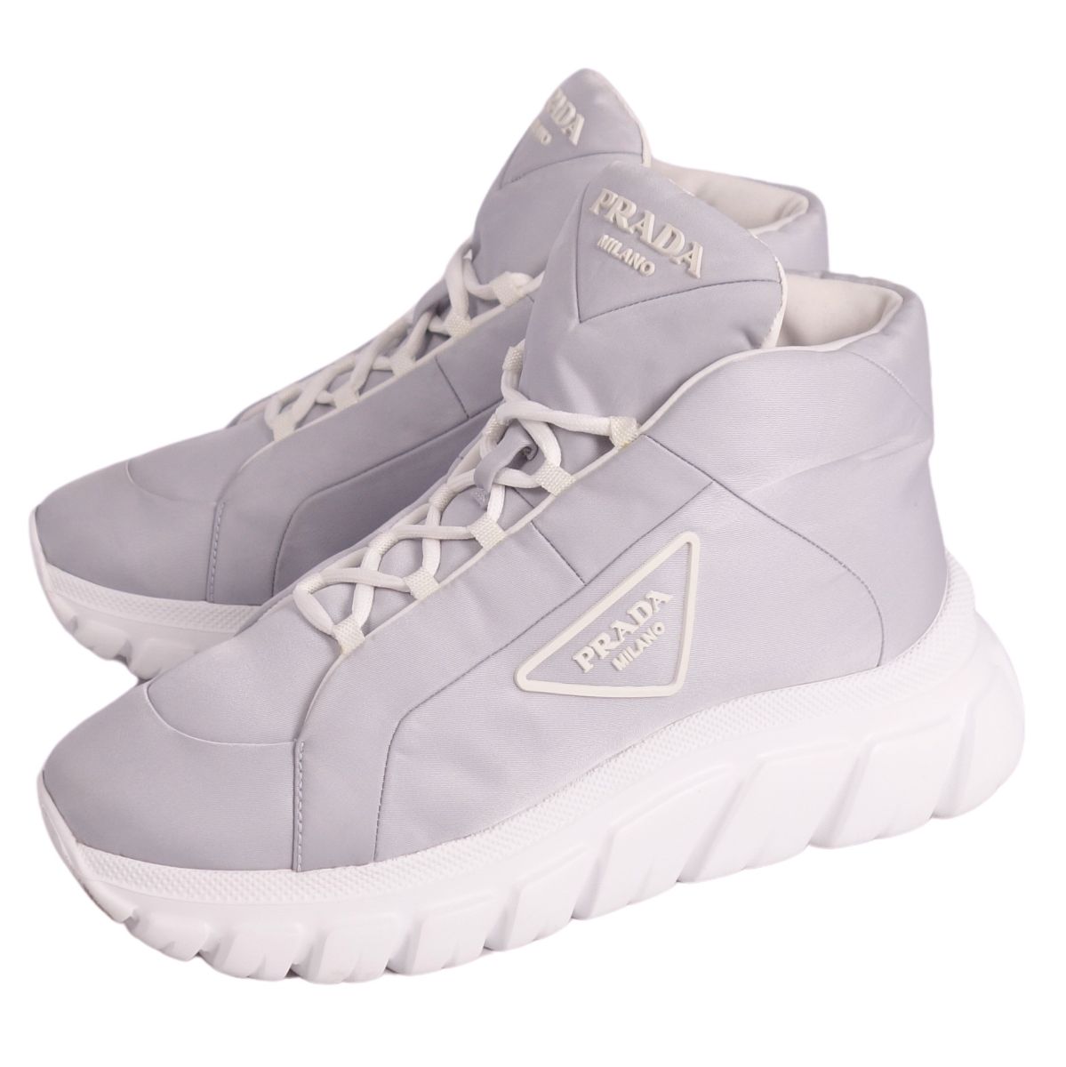 プラダ PRADA スニーカー Re-Nylon ハイカット トライアングル シューズ 靴 レディース イタリア製 グレー サイズ37(24cm相当)