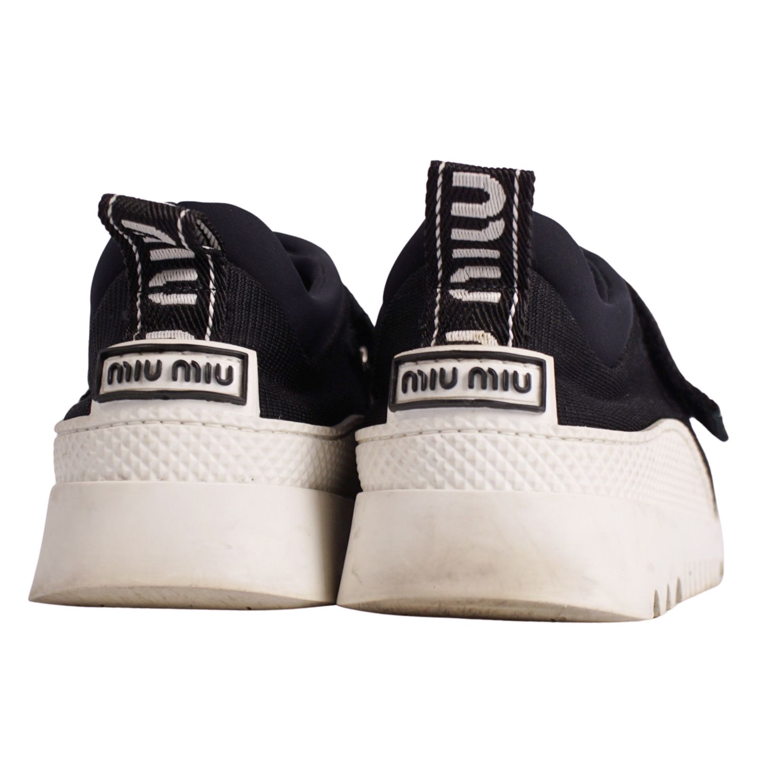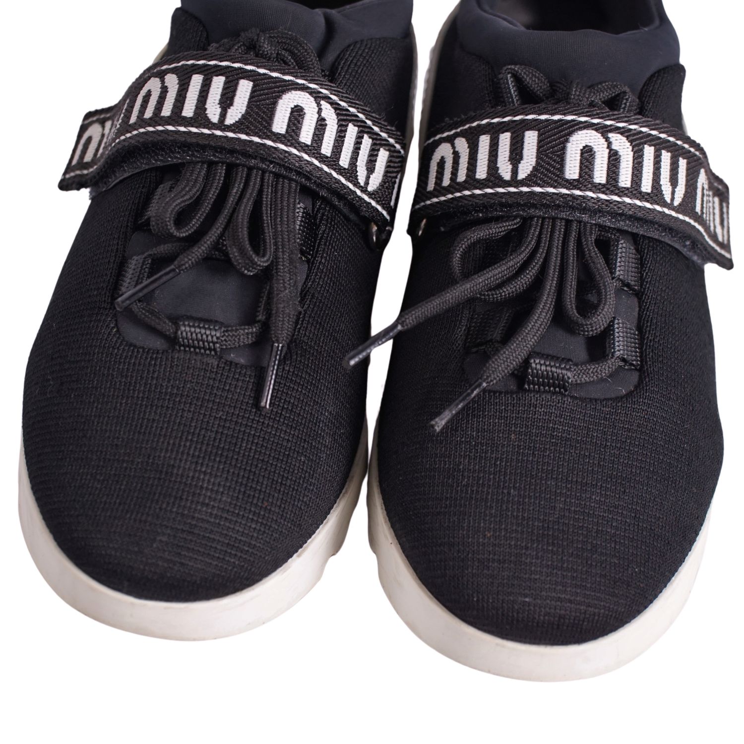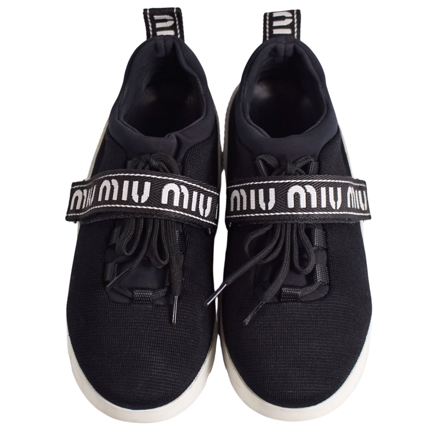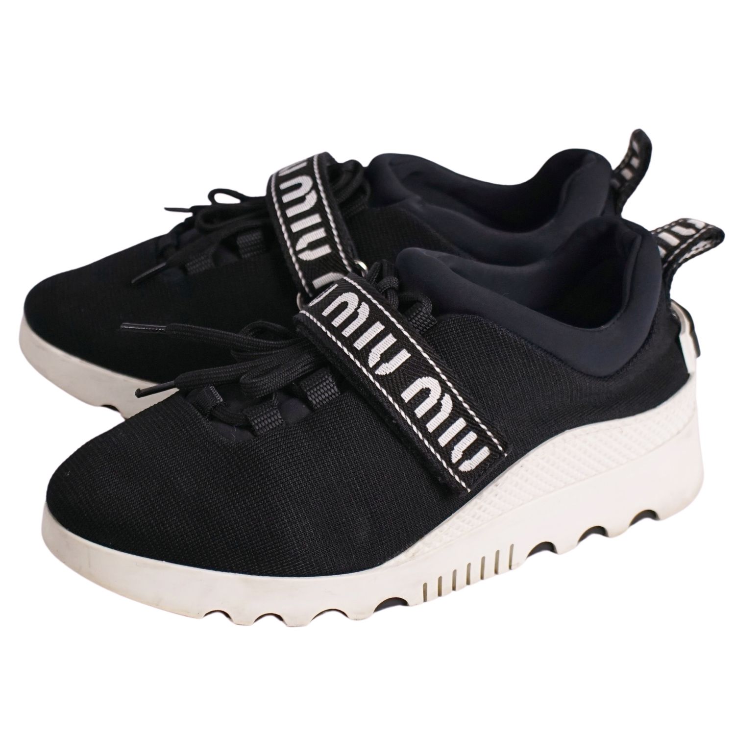 ミュウミュウ miumiu スニーカー ローカット ロゴ ファブリック シューズ 靴 レディース イタリア製 ブラック サイズ36(23cm相当)