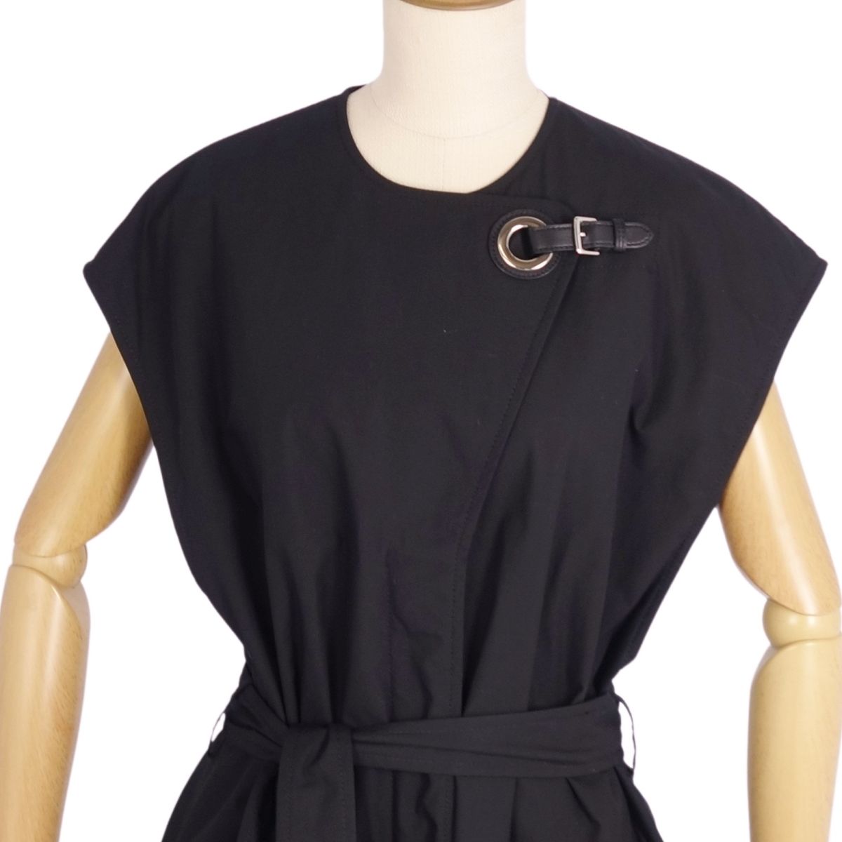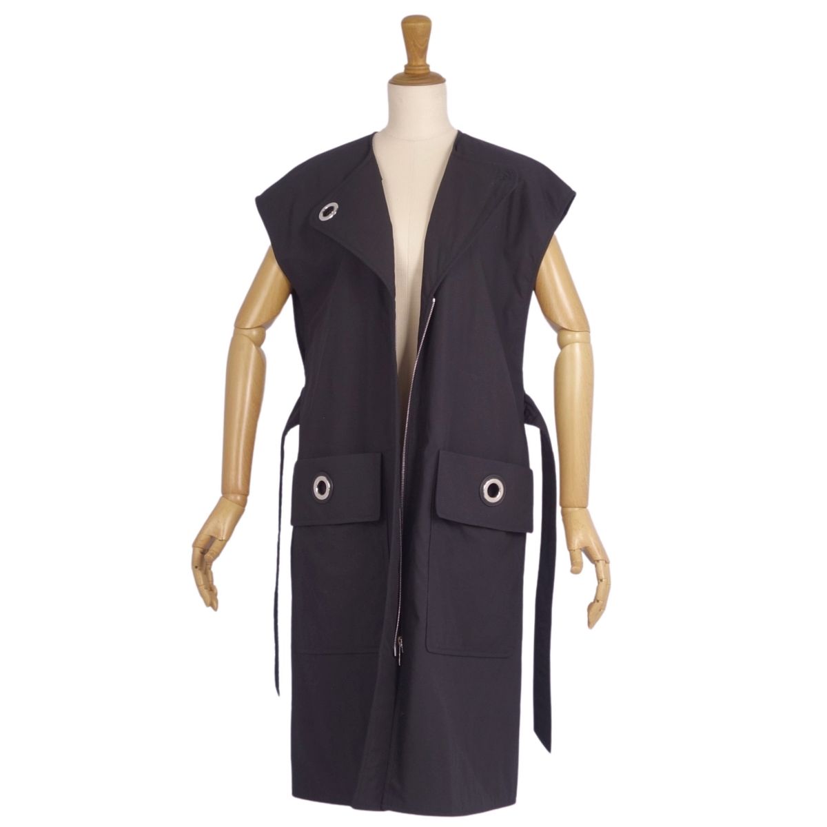 エルメス HERMES コート 22SS ロングコート ロングジレ 中綿入り ノースリーブ コットン アウター レディース フランス製 ブラック サイズ34(S相当)