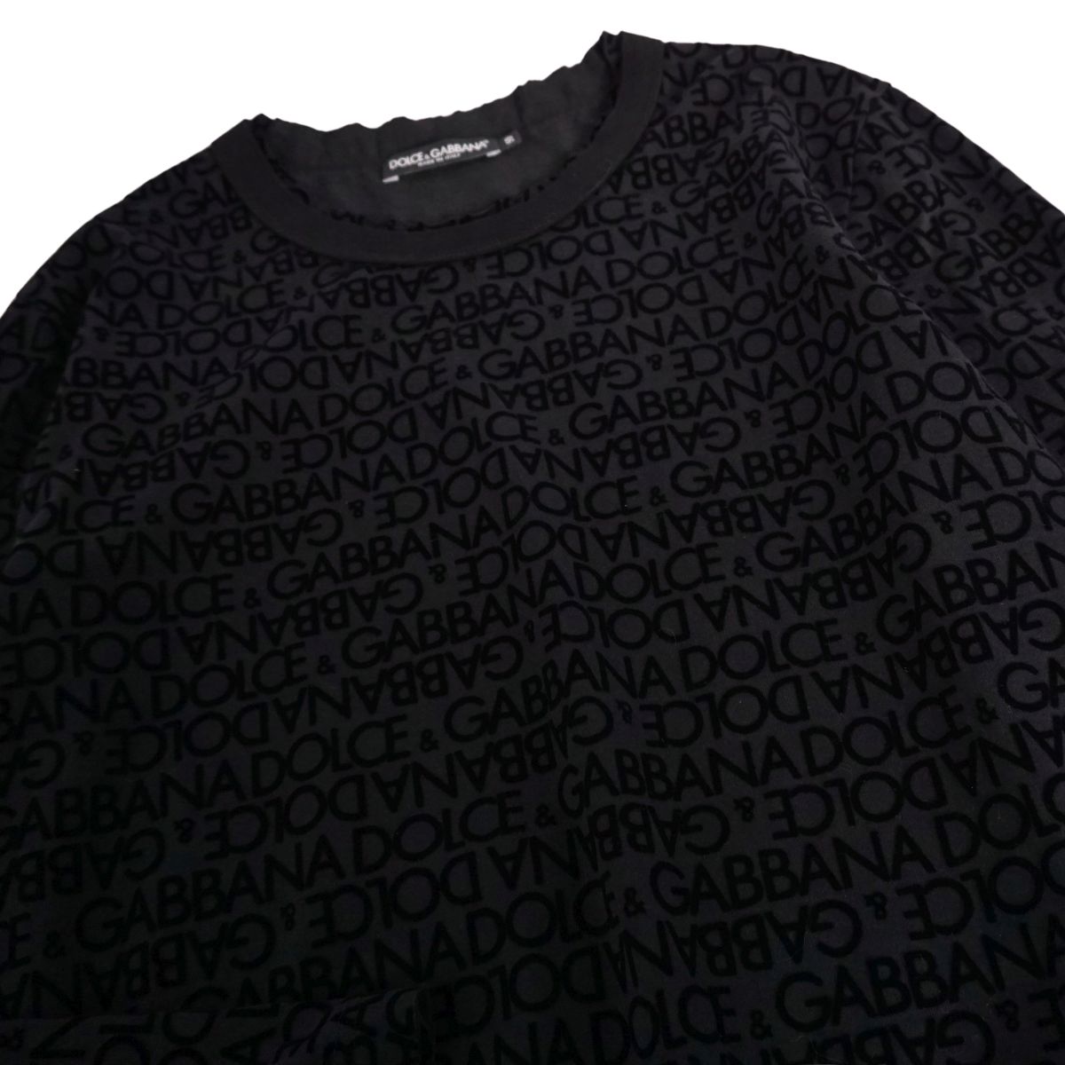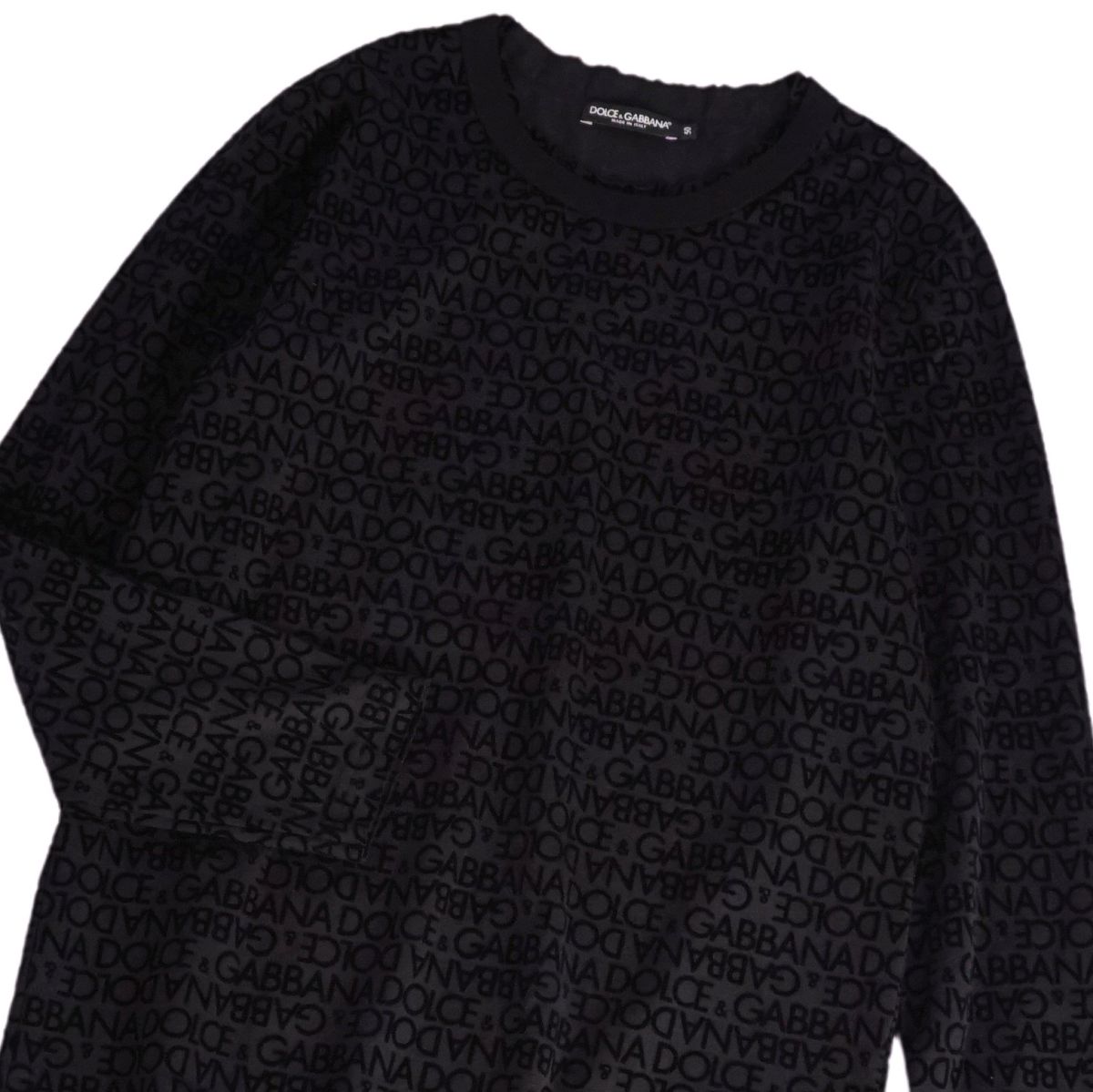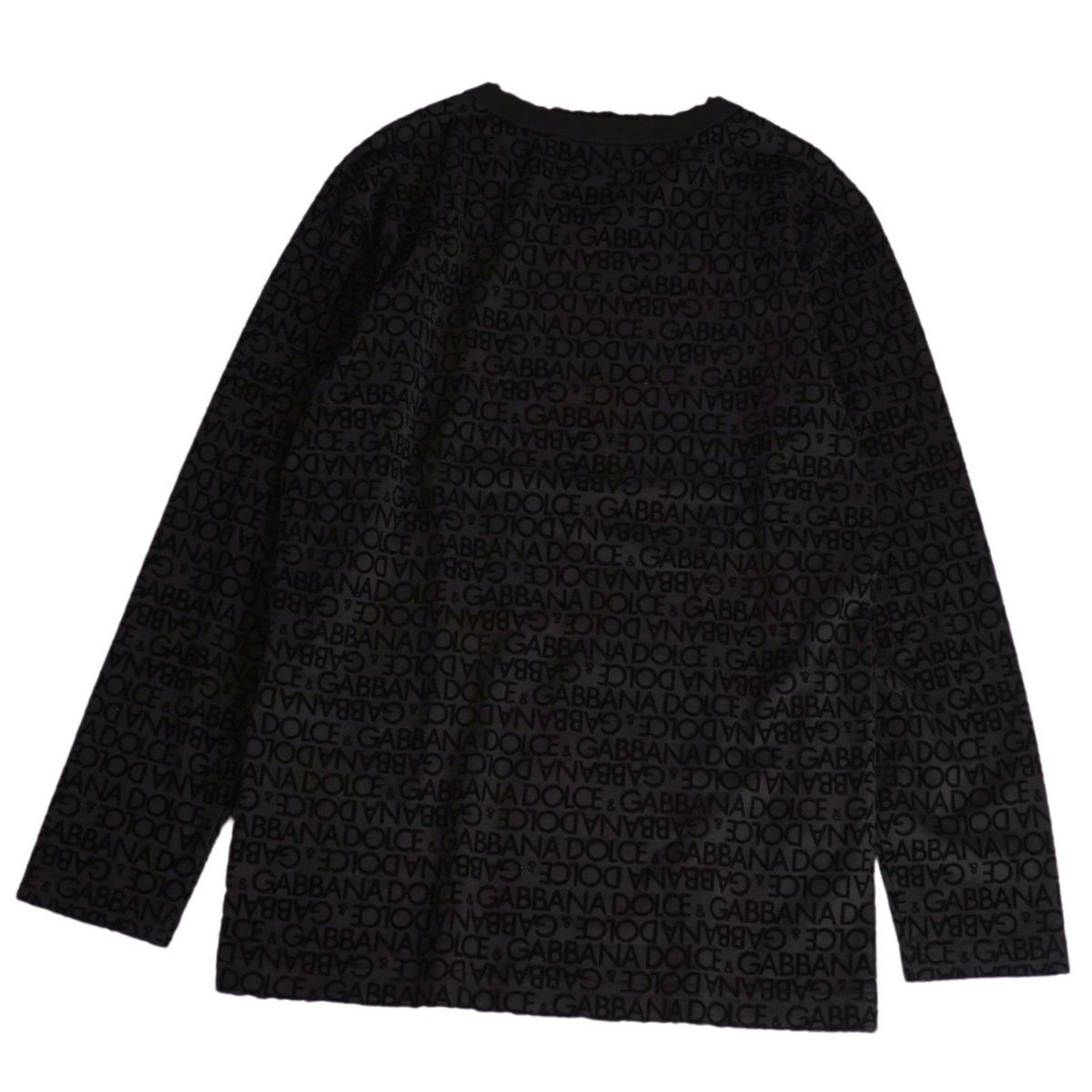 ドルチェ&ガッバーナ DOLCE&GABBANA Tシャツ カットソー ロングスリーブ 長袖 総柄 コットン ベロア トップス メンズ イタリア製 ブラック サイズ50