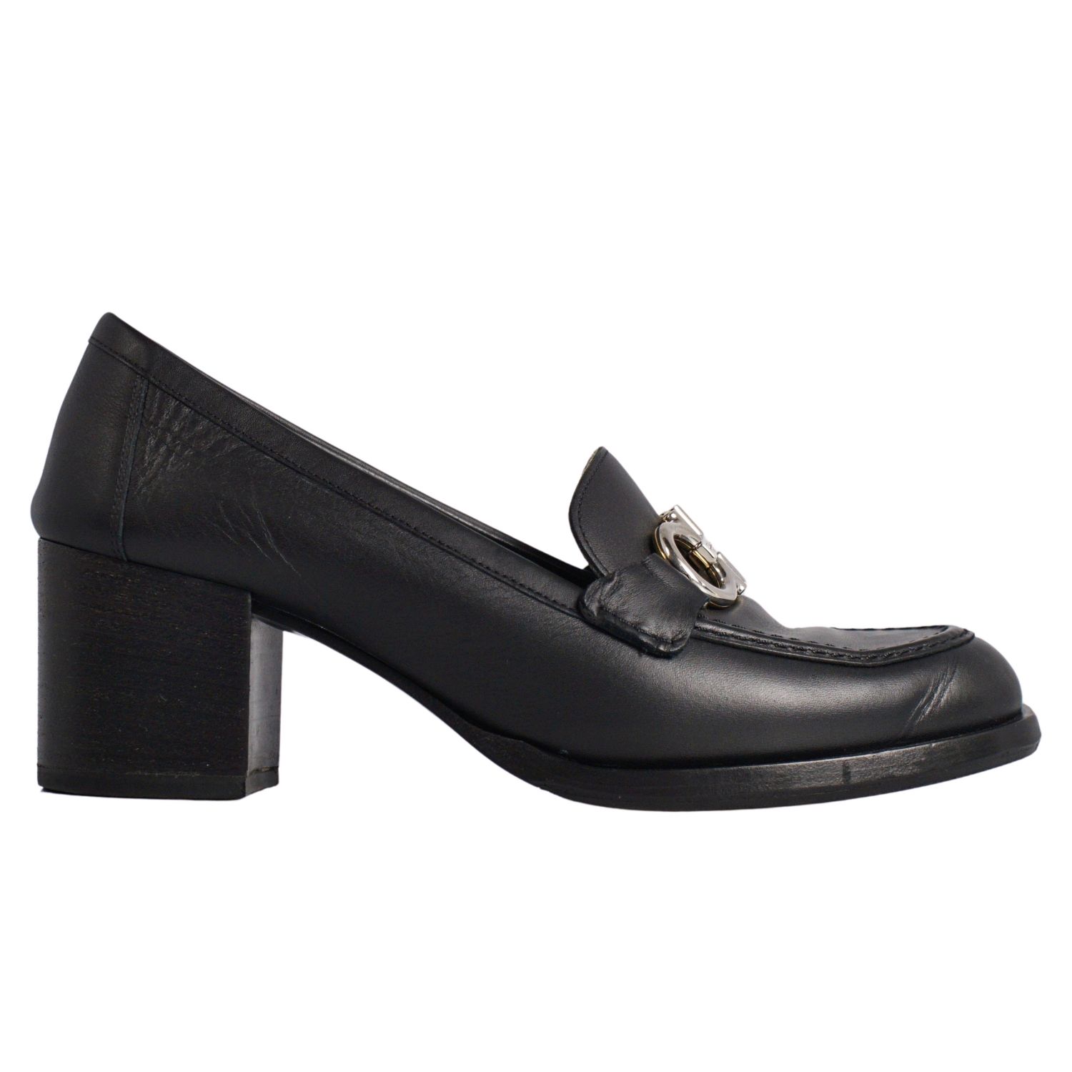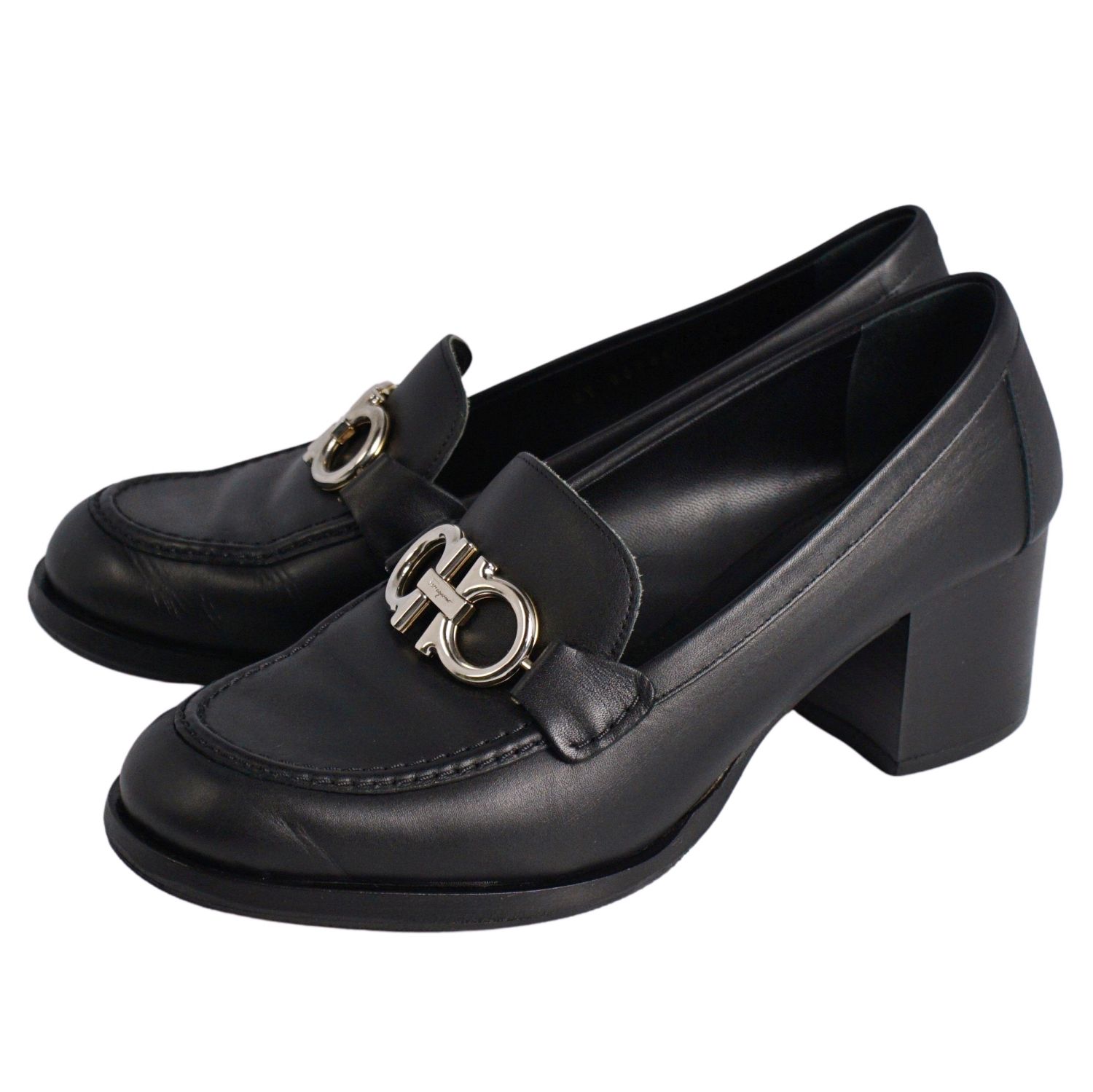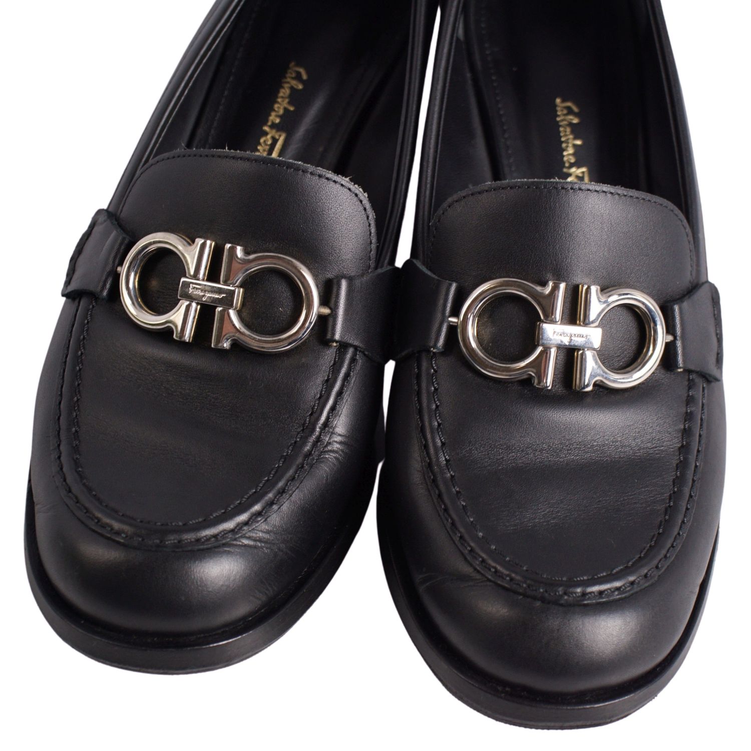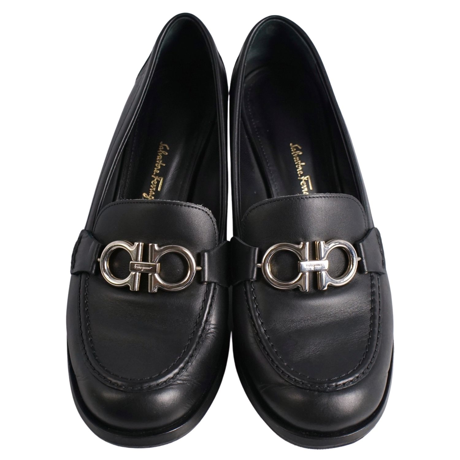 サルヴァトーレ フェラガモ Salvatore Ferragamo ローファー モカシン ガンチーニ レザー ヒール シューズ 靴 レディース ブラック サイズ7.5(25cm相当)