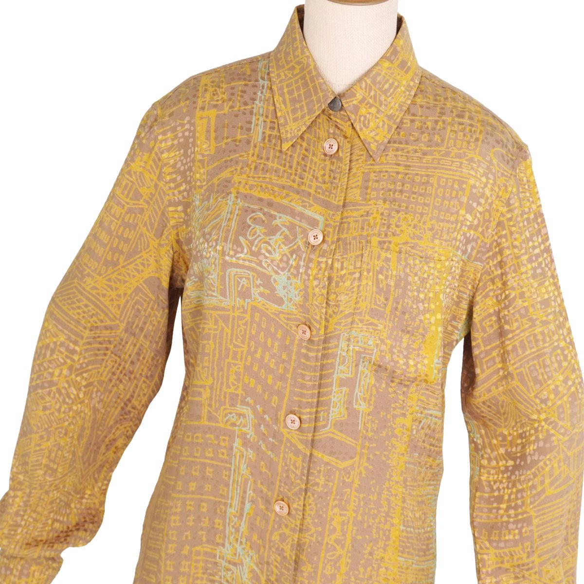エルメス HERMES シャツ ゴルチエ期 ブラウス ロングスリーブ 長袖 総柄 シルク トップス レディース フランス製 イエロー サイズ36(S相当)