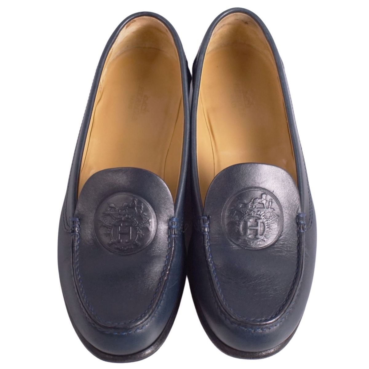 エルメス HERMES ローファー モカシン エクスリブリス レザー シューズ 靴 レディース イタリア製 ネイビー サイズ36(23cm相当)
