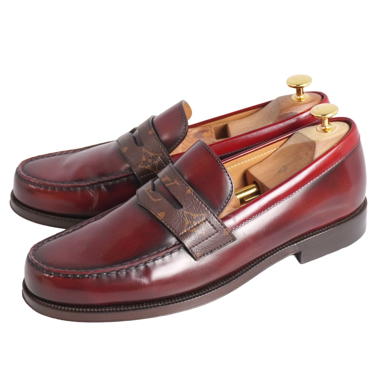 ルイヴィトン LOUIS VUITTON ローファー ソルボンヌライン モカシン モノグラム レザー シューズ 靴 メンズ イタリア製 ボルドー サイズ8(26.5cm相当)