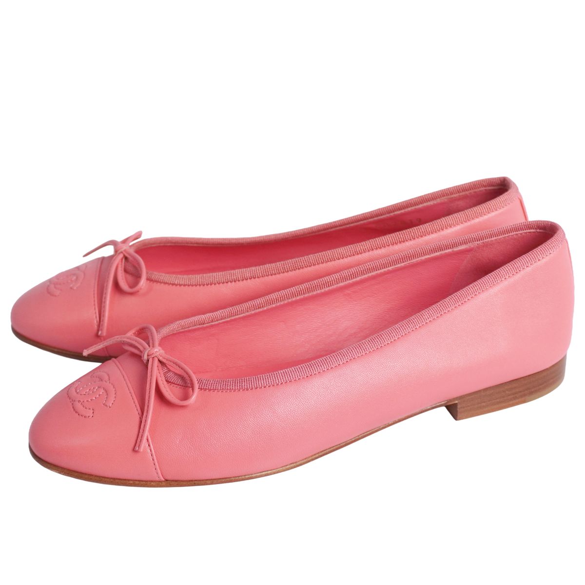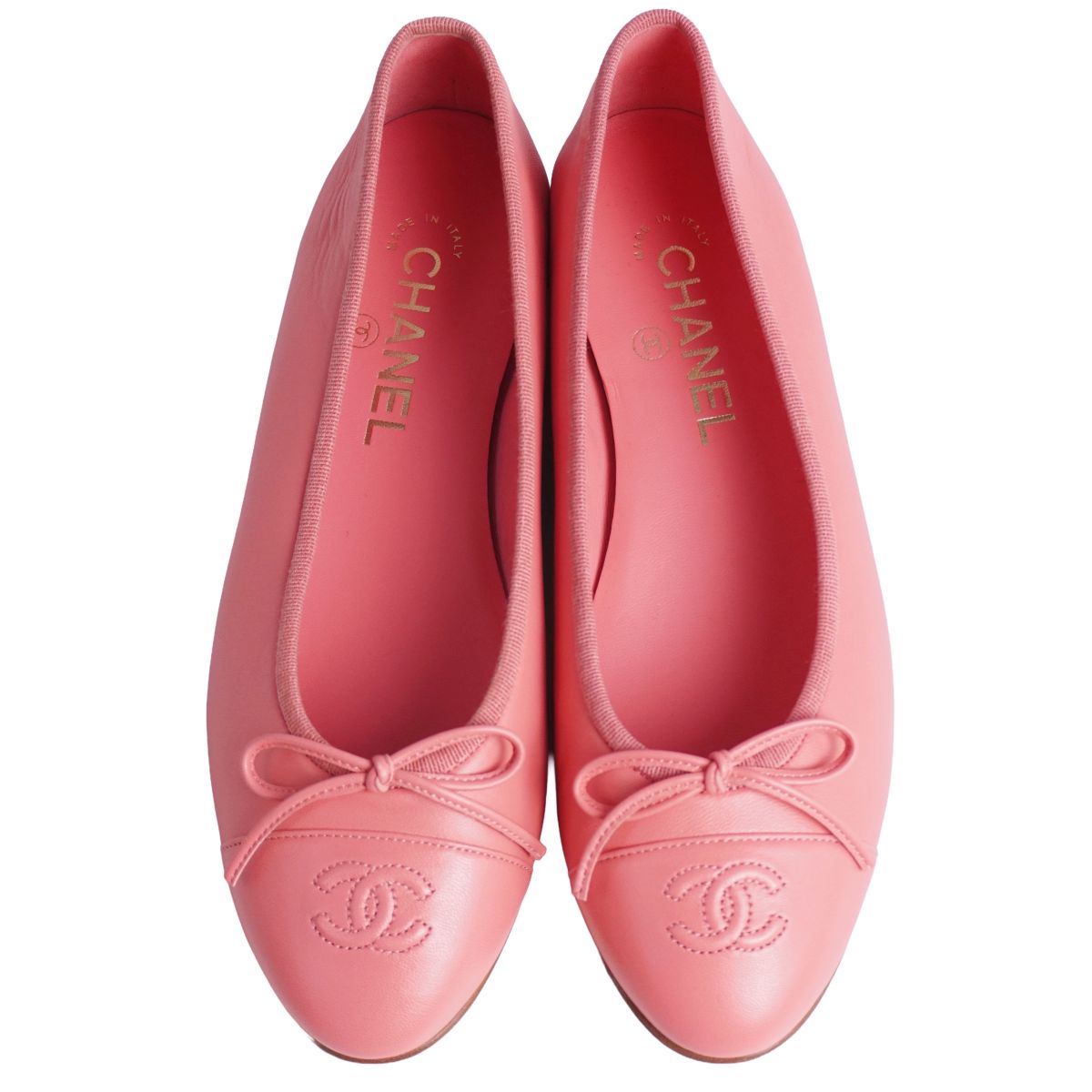 シャネル CHANEL パンプス バレリーナ G02819 リボン ココマーク レザー シューズ 靴 レディース イタリア製 ピンク サイズ37.5C