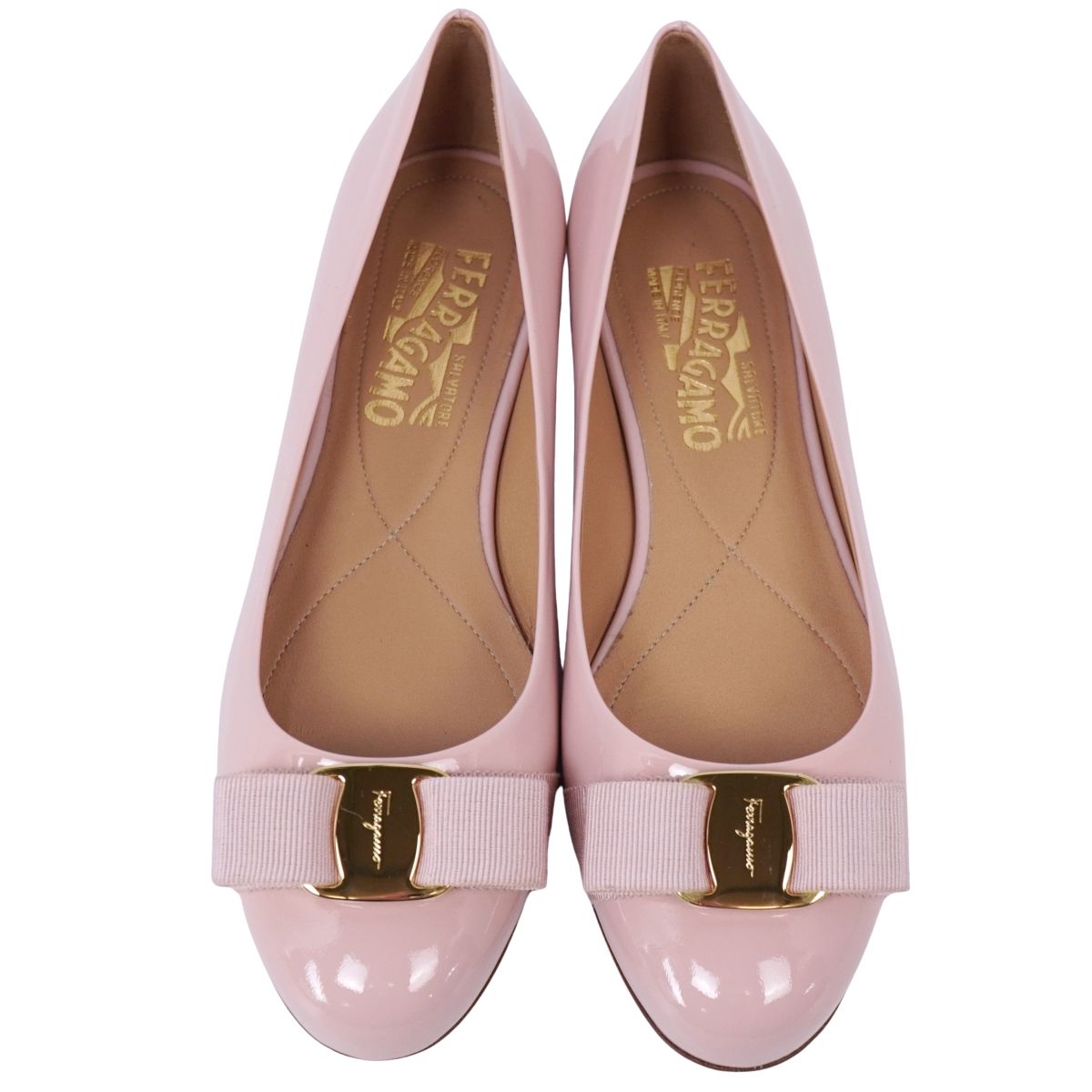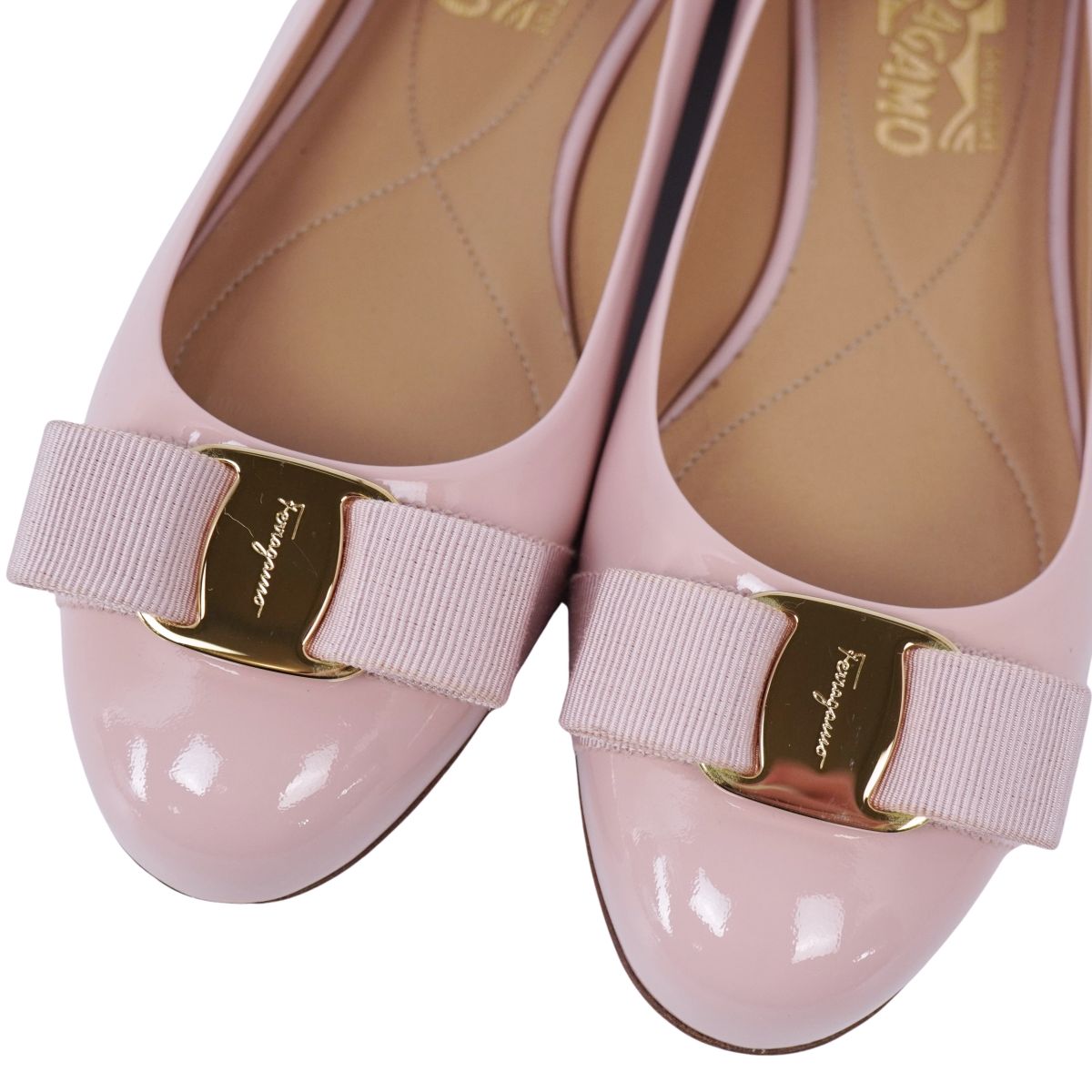 サルヴァトーレ フェラガモ Salvatore Ferragamo パンプス ヴァラ フラットパンプス エナメルレザー シューズ 靴 レディース イタリア製 ピンク サイズ6D(23.5cm相当)