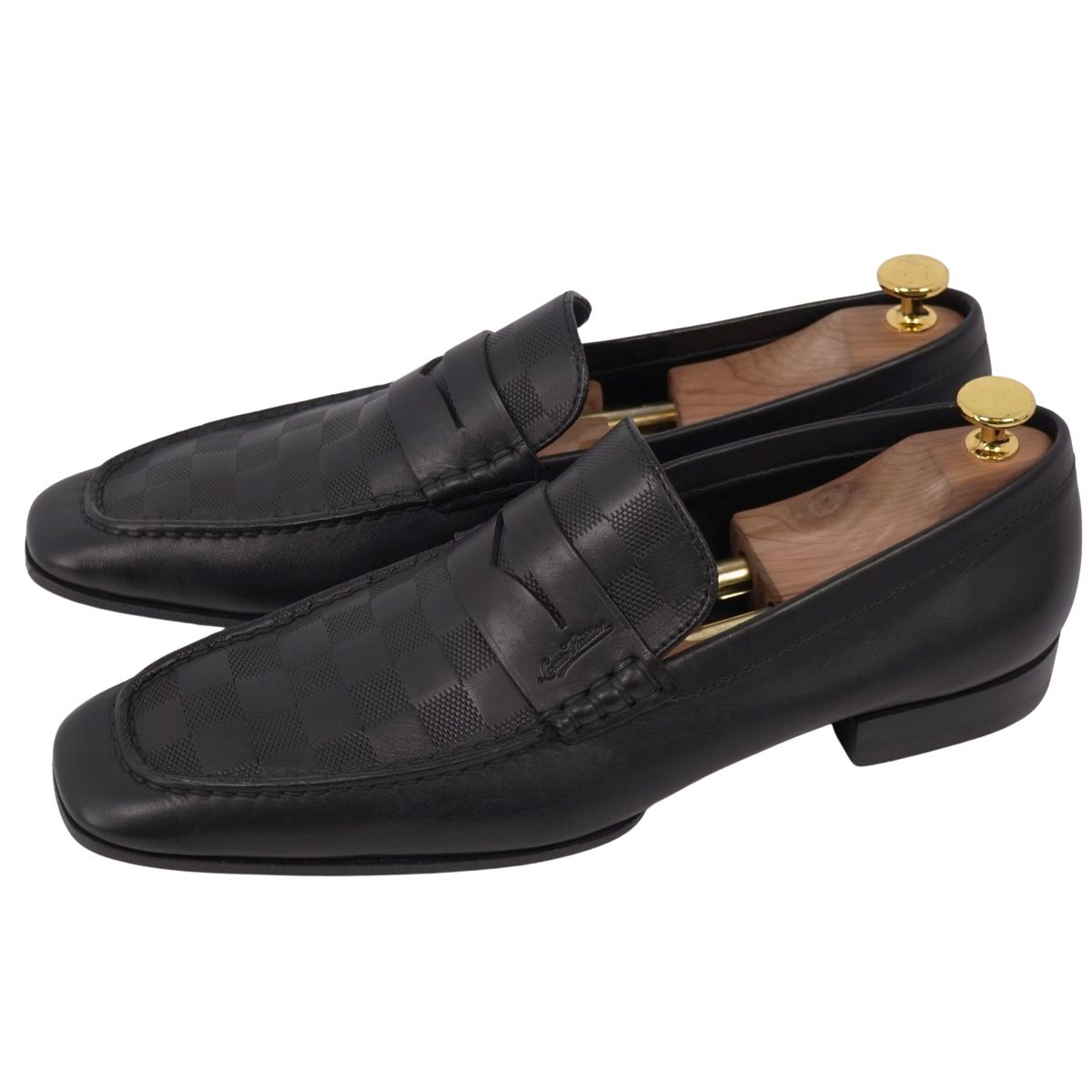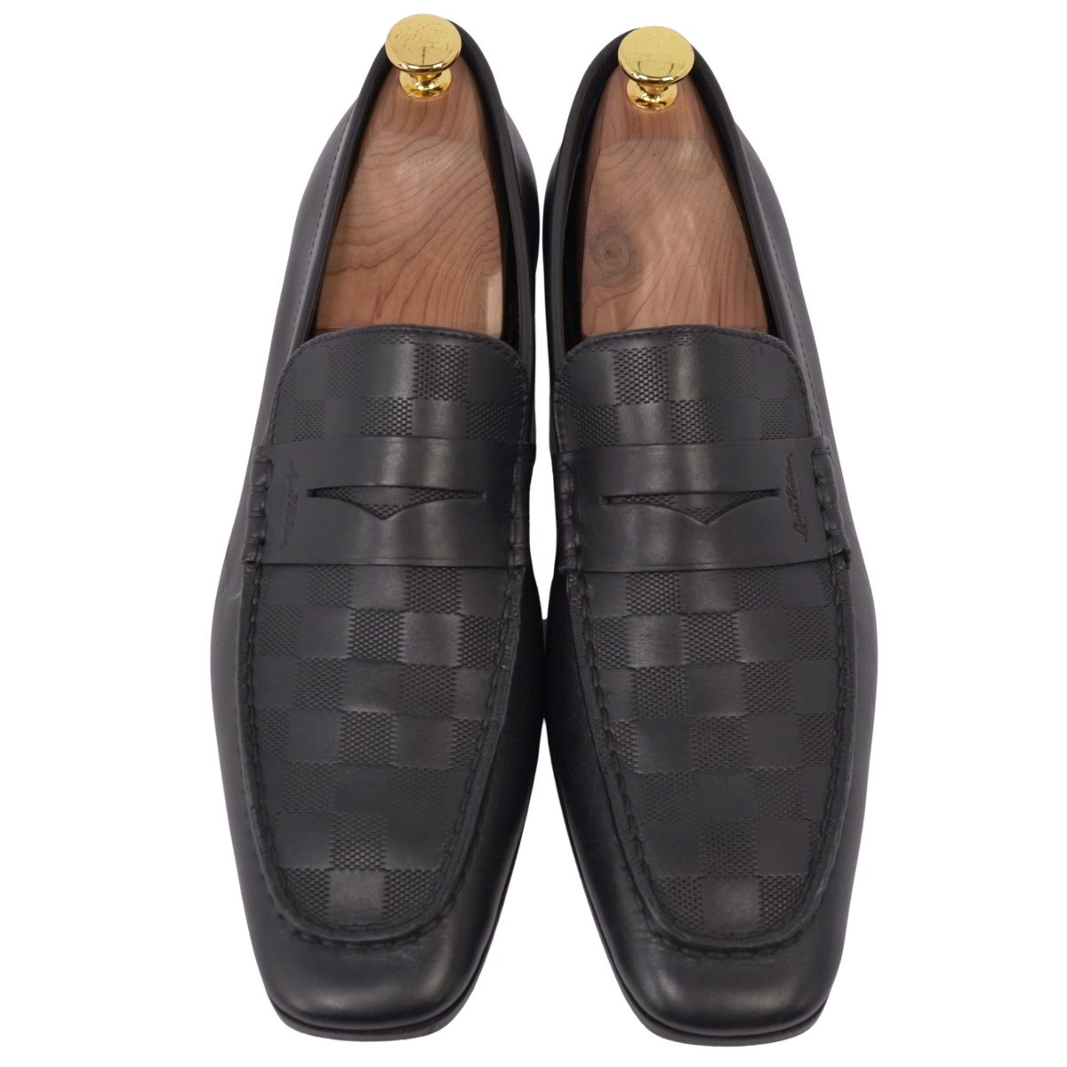 ルイヴィトン LOUIS VUITTON ローファー モカシン ビジネスシューズ ダミエ シューズ 革靴 メンズ イタリア製 ブラック サイズ8.5M(27cm相当)