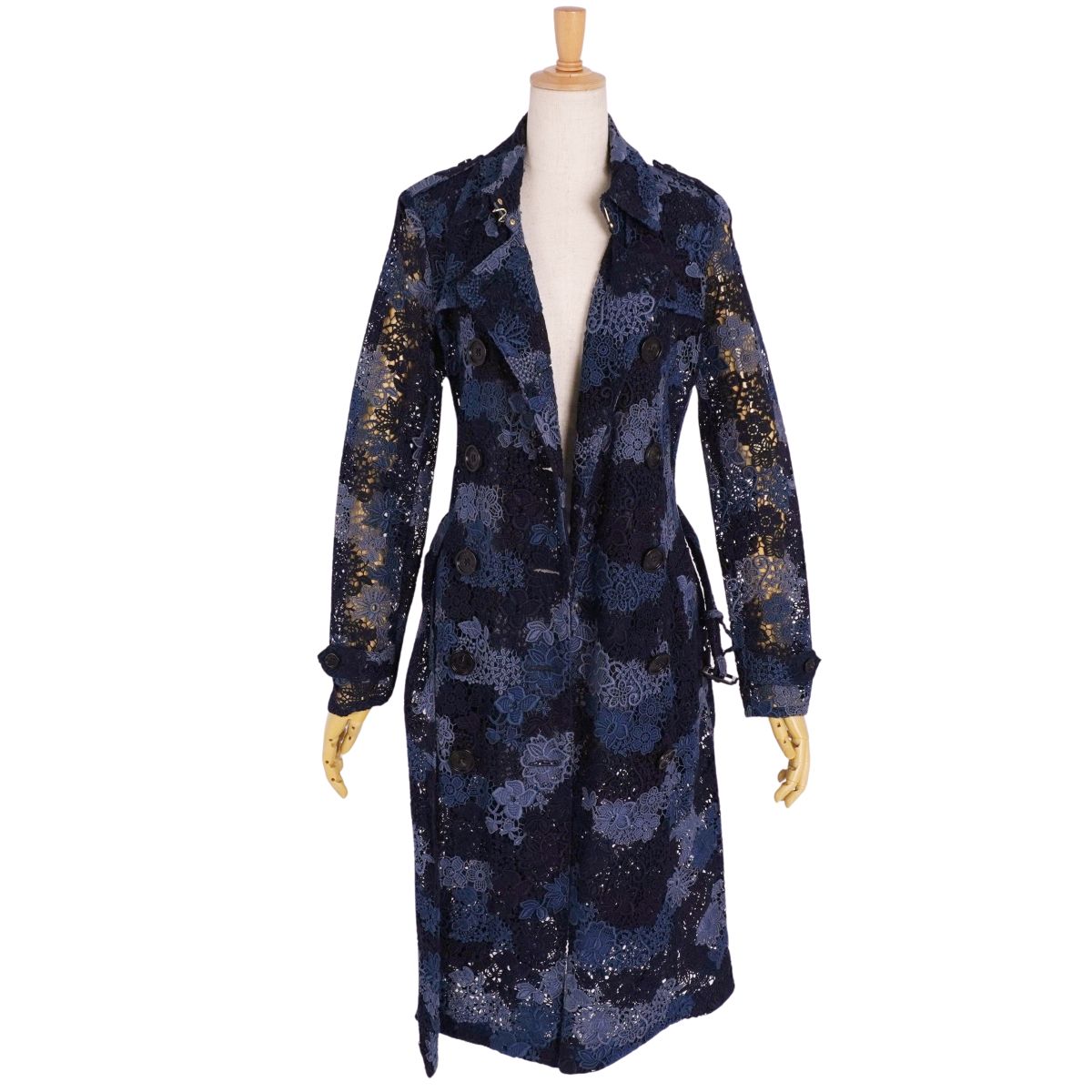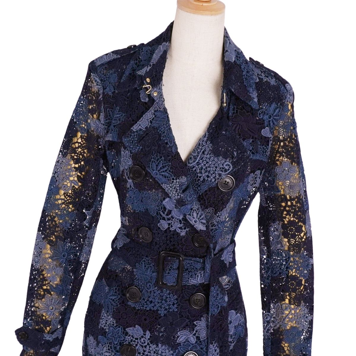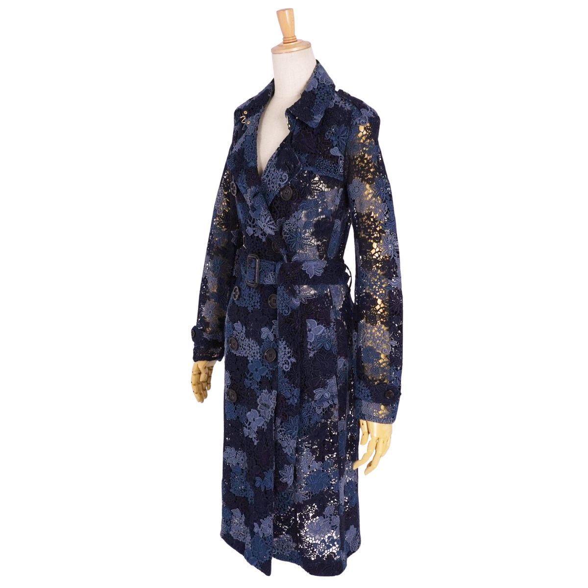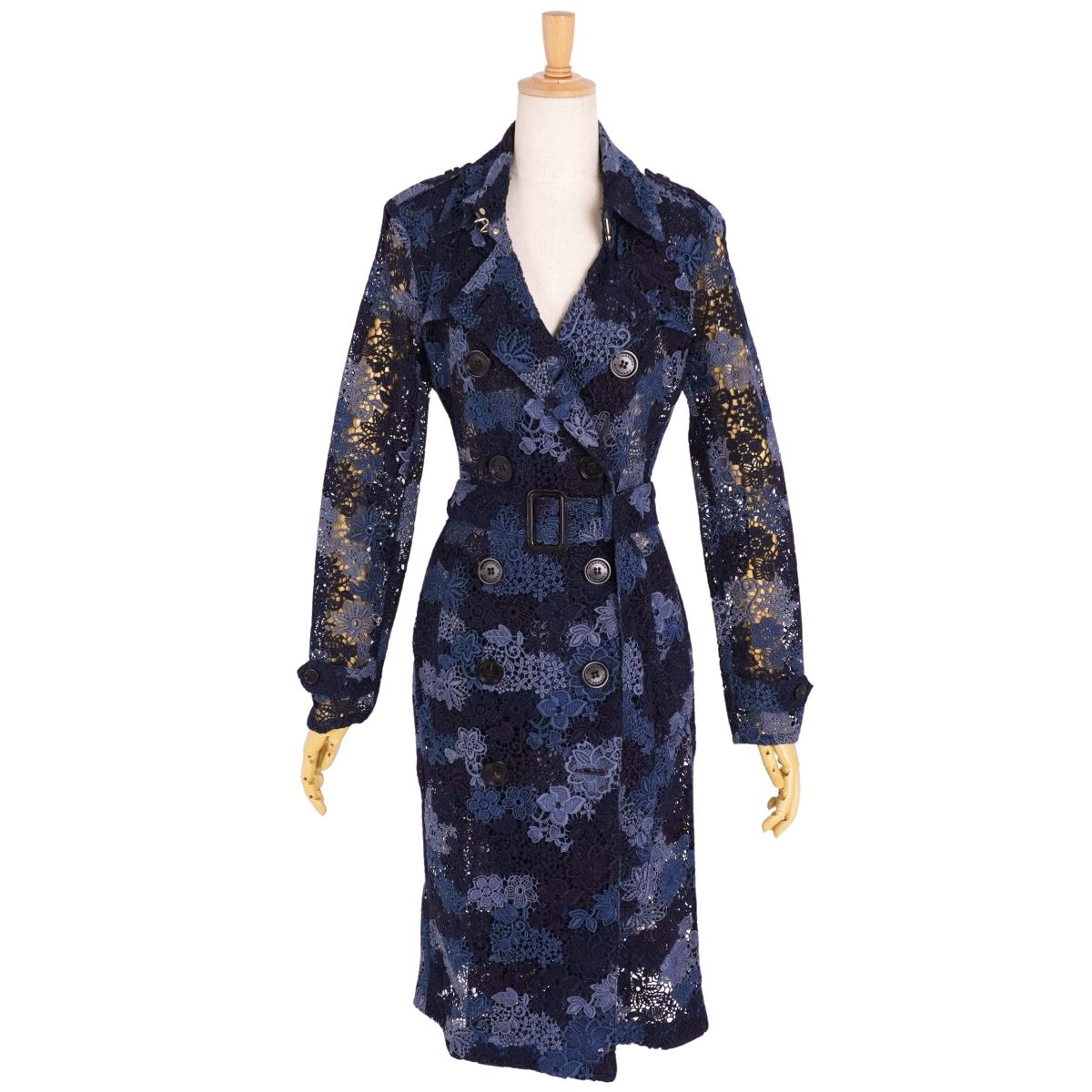 バーバリー BURBERRY コート トレンチコート 総レース コットン 花柄 アウター レディース ネイビー サイズIT36 US2 UK4(S相当)
