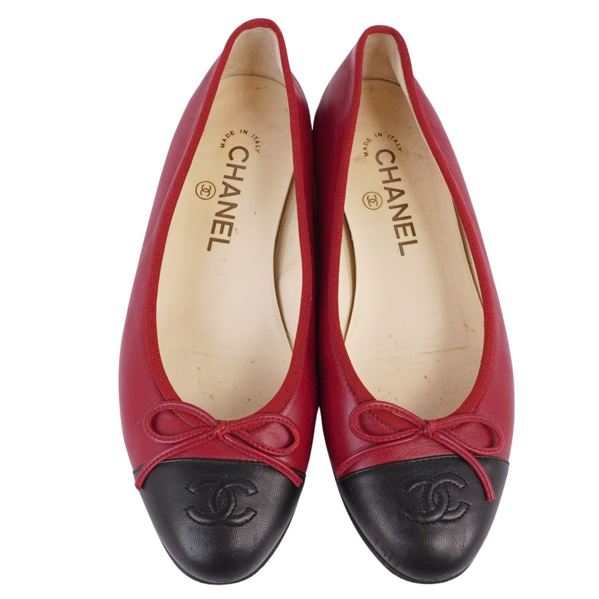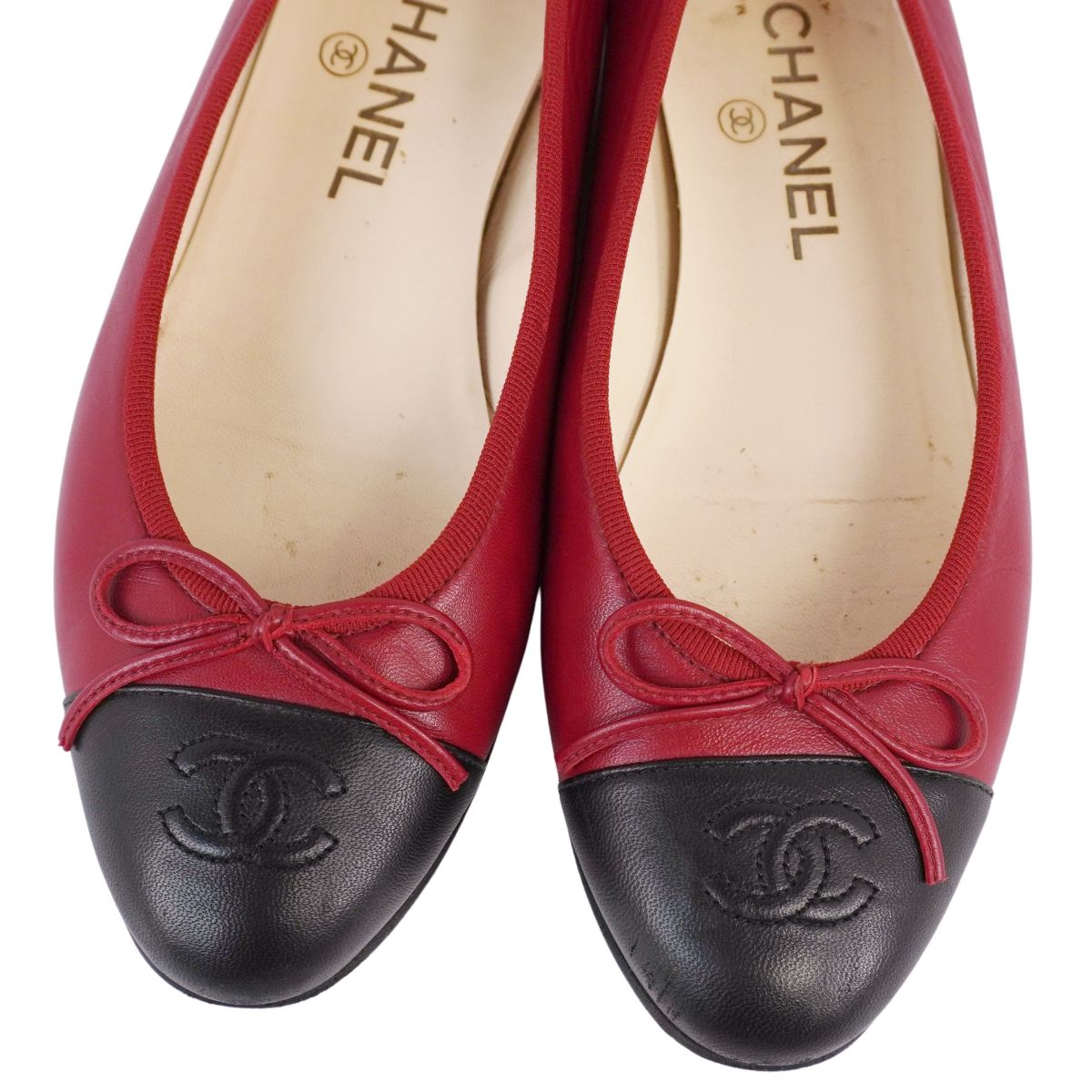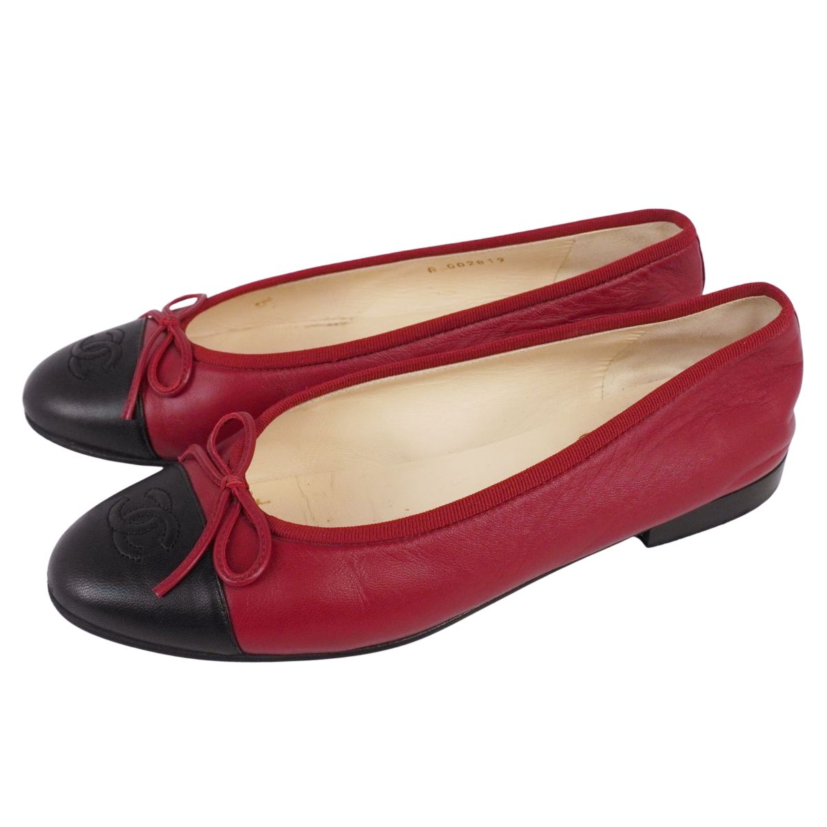 シャネル CHANEL パンプス バレリーナ G02819 リボン ココマーク レザー シューズ 靴 レディース イタリア製 レッド サイズ37.5