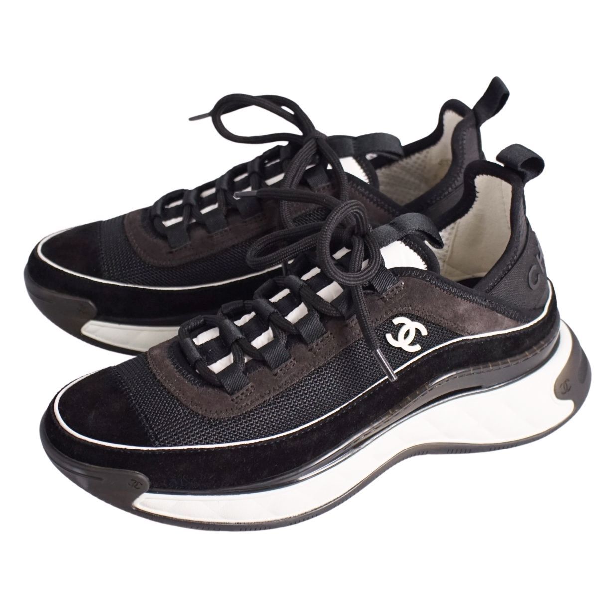シャネル CHANEL スニーカー G39070 ローカット ココマーク スウェードレザー メッシュ シューズ 靴 レディース イタリア製 ブラック サイズ36.5
