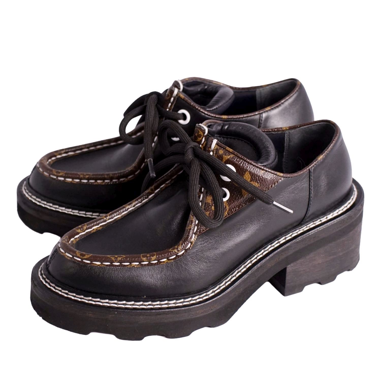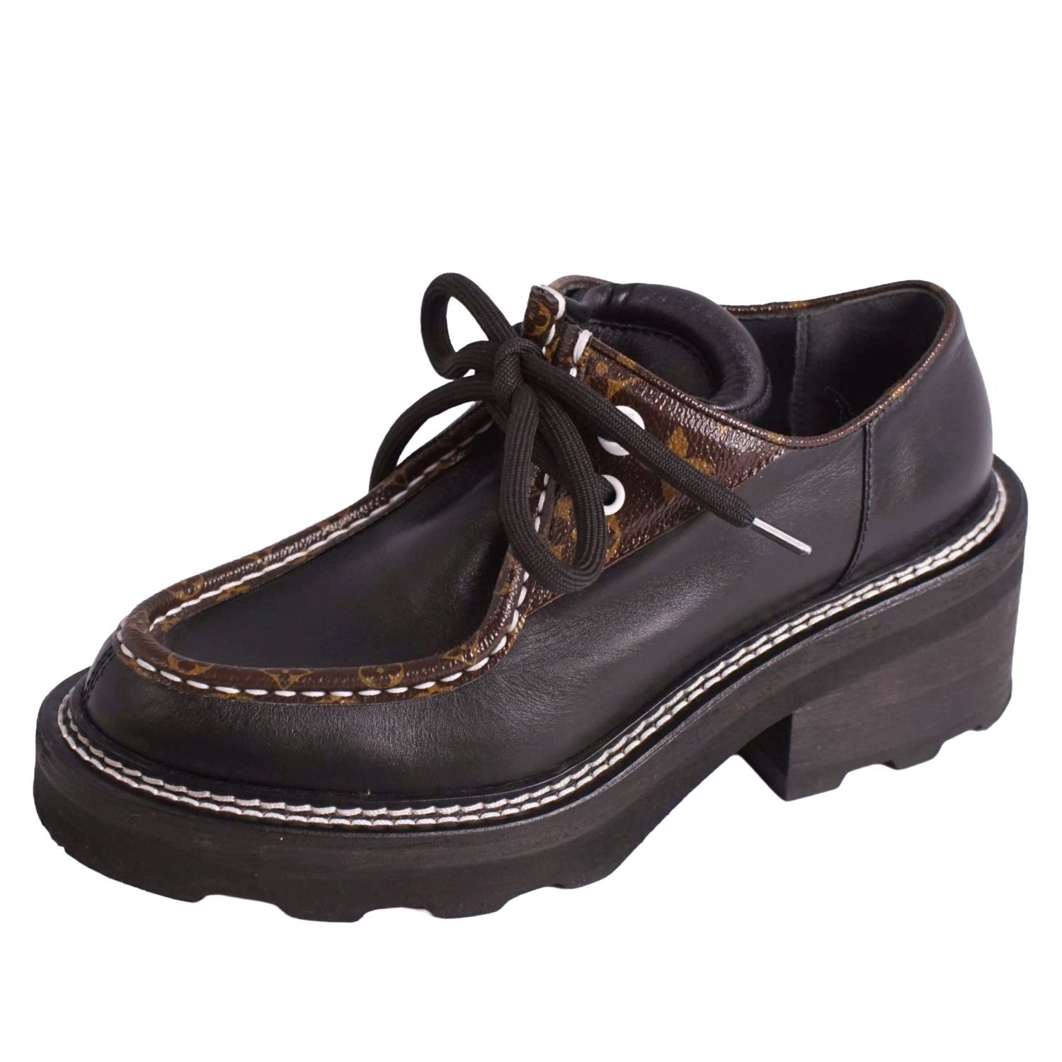 ルイヴィトン LOUIS VUITTON LVボブール ライン レザーシューズ チロリアンシューズ モノグラム シューズ 靴 レディース ブラック サイズ36(23cm相当)