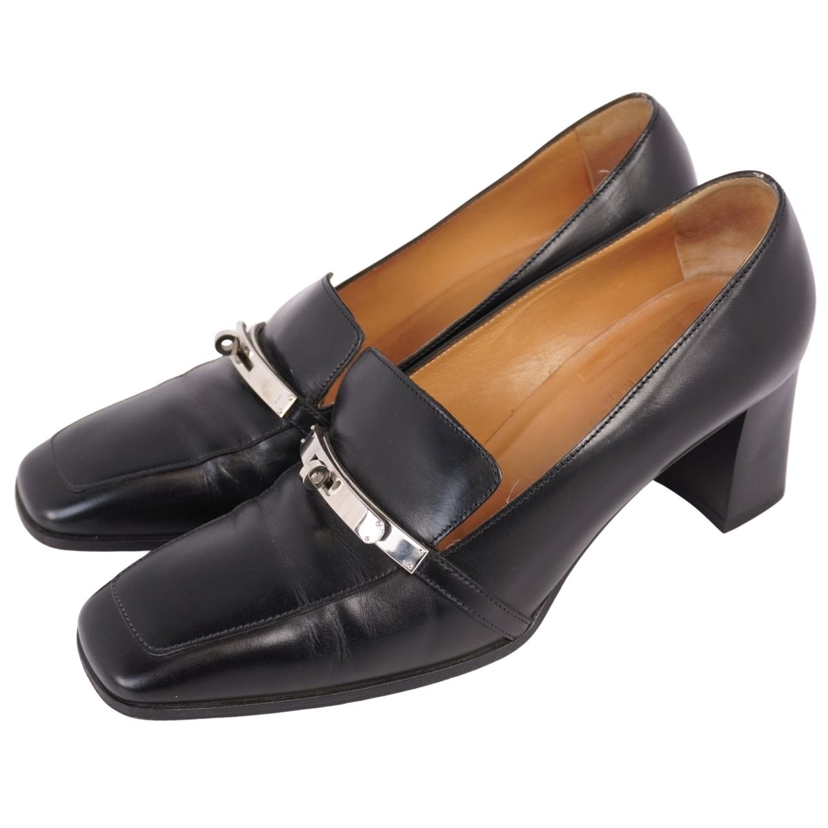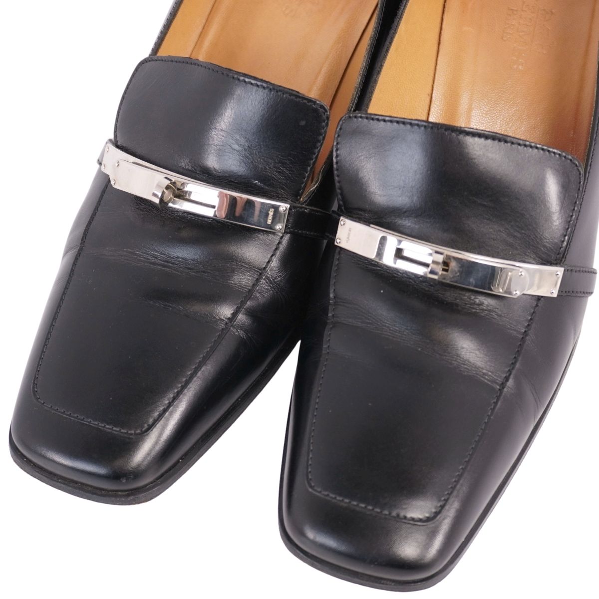 エルメス HERMES ローファー ケリー金具 レザー ヒール シューズ 靴 レディース イタリア製 ブラック サイズ37.5(24.5cm相当)