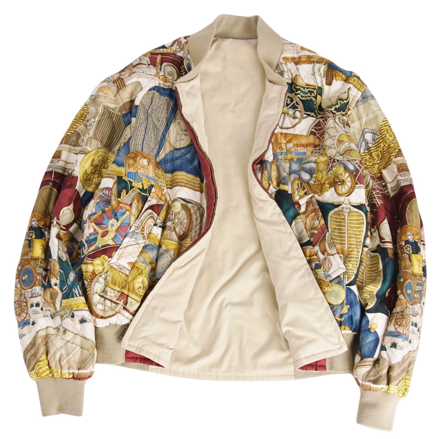 Vintage エルメス HERMES ジャケット ブルゾン リバーシブル 総柄 シルク ジップアップ アウター メンズ フランス製 マルチカラー サイズ50(M相当)