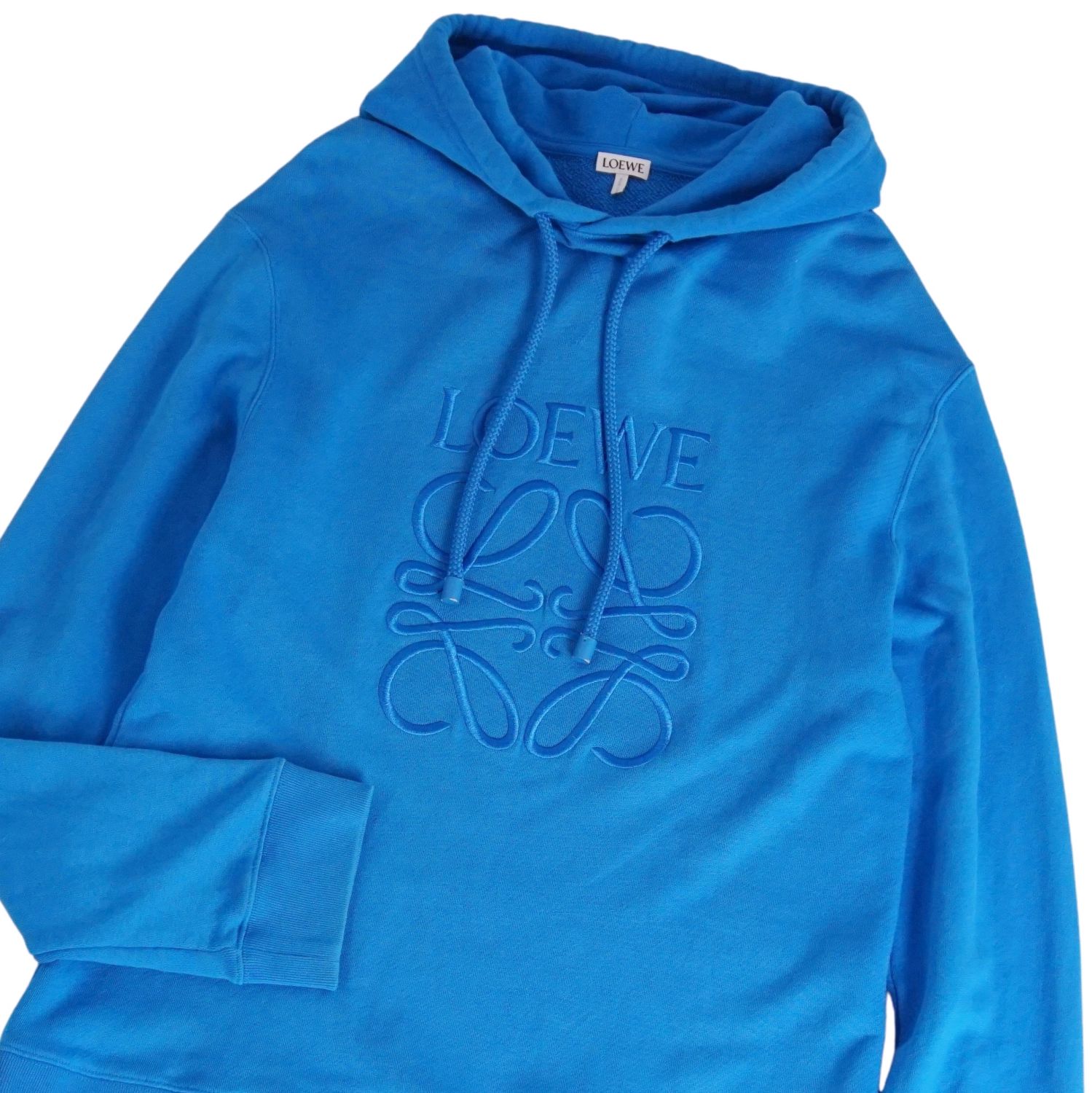 ロエベ LOEWE パーカー フーディー スウェット ロングスリーブ 長袖 アナグラム コットン トップス メンズ ブルー サイズL