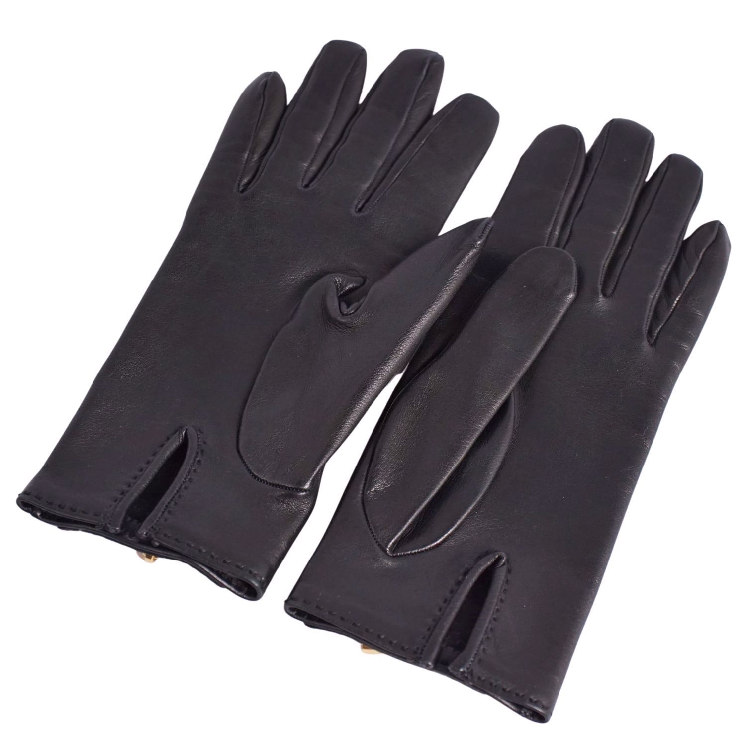 エルメス HERMES 手袋 グローブ ケリー金具 カデナ 南京錠 ラムレザー フランス製 レディース ブラック サイズ7