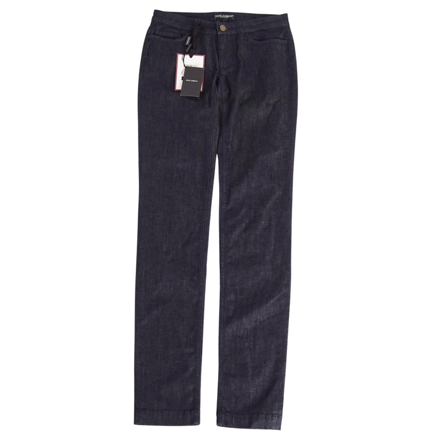 ドルチェ&ガッバーナ DOLCE&GABBANA パンツ デニムパンツ ジーンズ ストレート ロゴパッチ コットン ボトムス レディース インディゴブルー サイズ38(S相当)