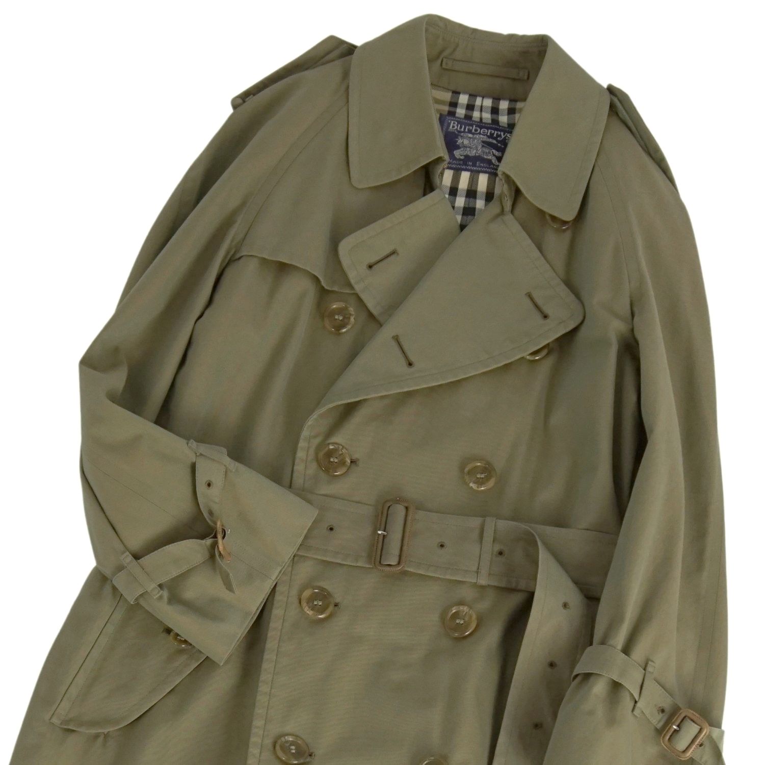 商品名 【美品】Vintage バーバリー Burberrys コート 英国製 トレンチコート コットン100% アウター メンズ 44(S相当) カーキグリーン【中古】