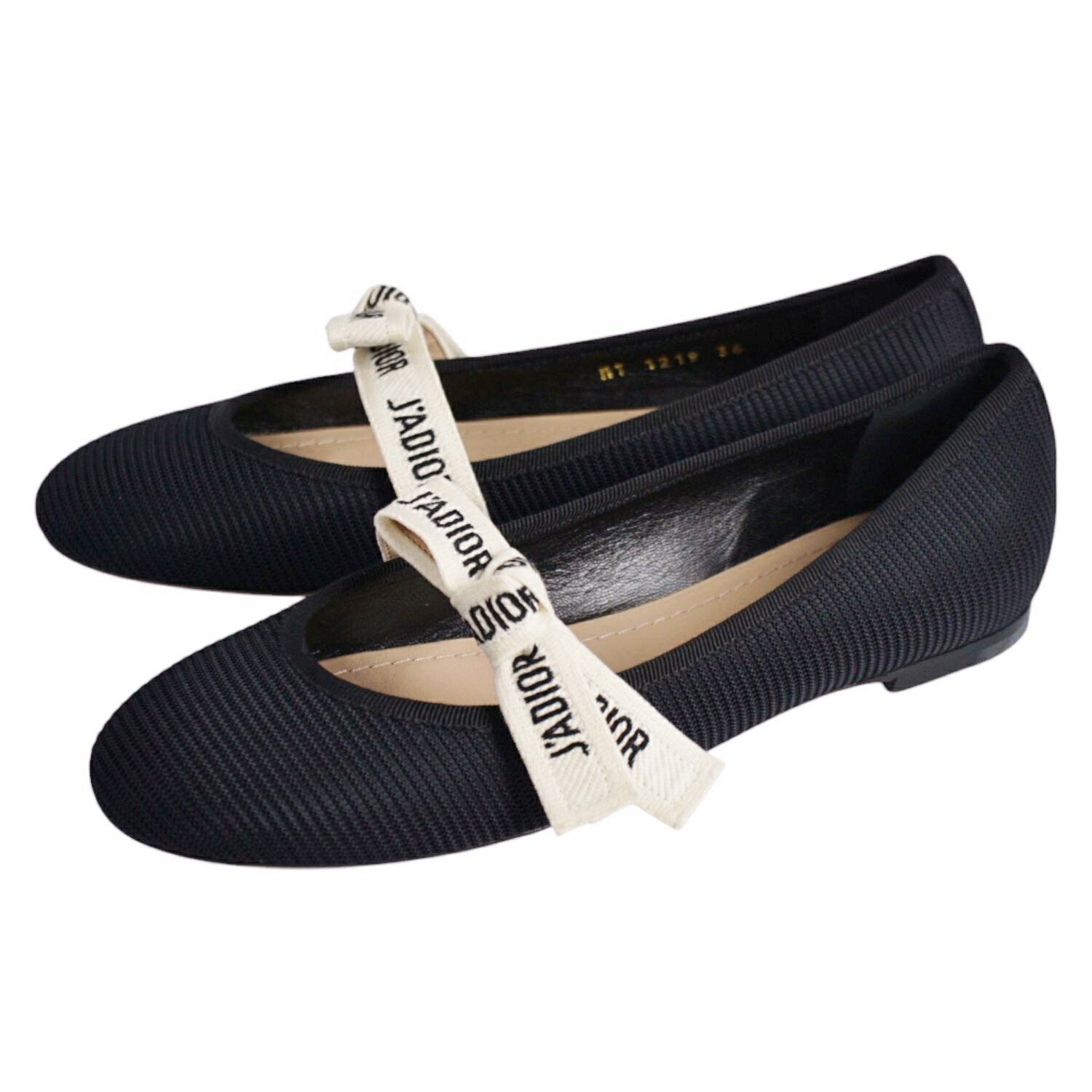 クリスチャンディオール Christian Dior パンプス JADIOR フラットパンプス リボン ファブリック シューズ 靴 レディース イタリア製 ブラック サイズ36(23cm相当)