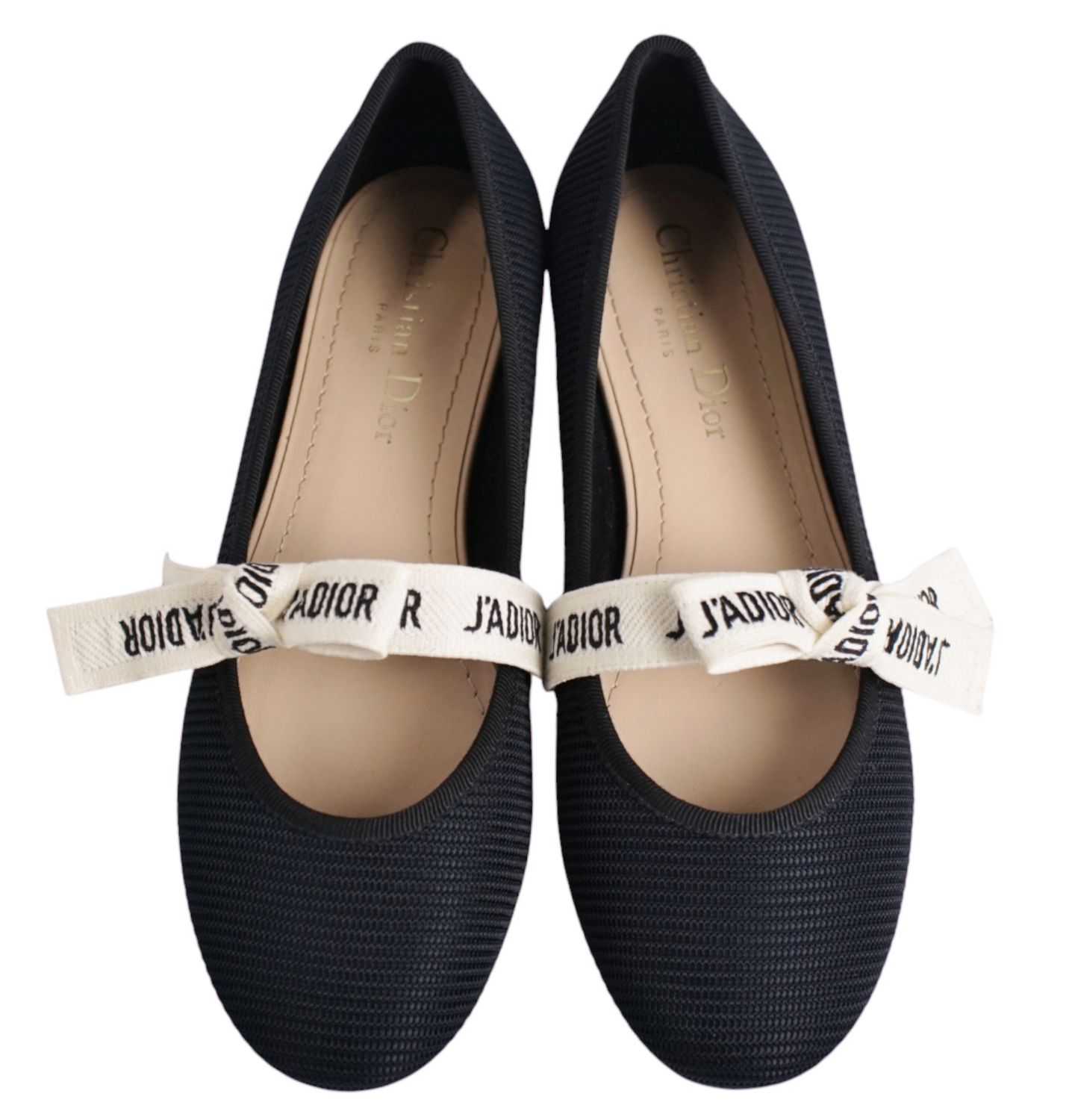【新古品】クリスチャンディオール Christian Dior パンプス JADIOR フラットパンプス リボン ファブリック シューズ 靴 レディース イタリア製 36(23cm相当) ブラック【中古】