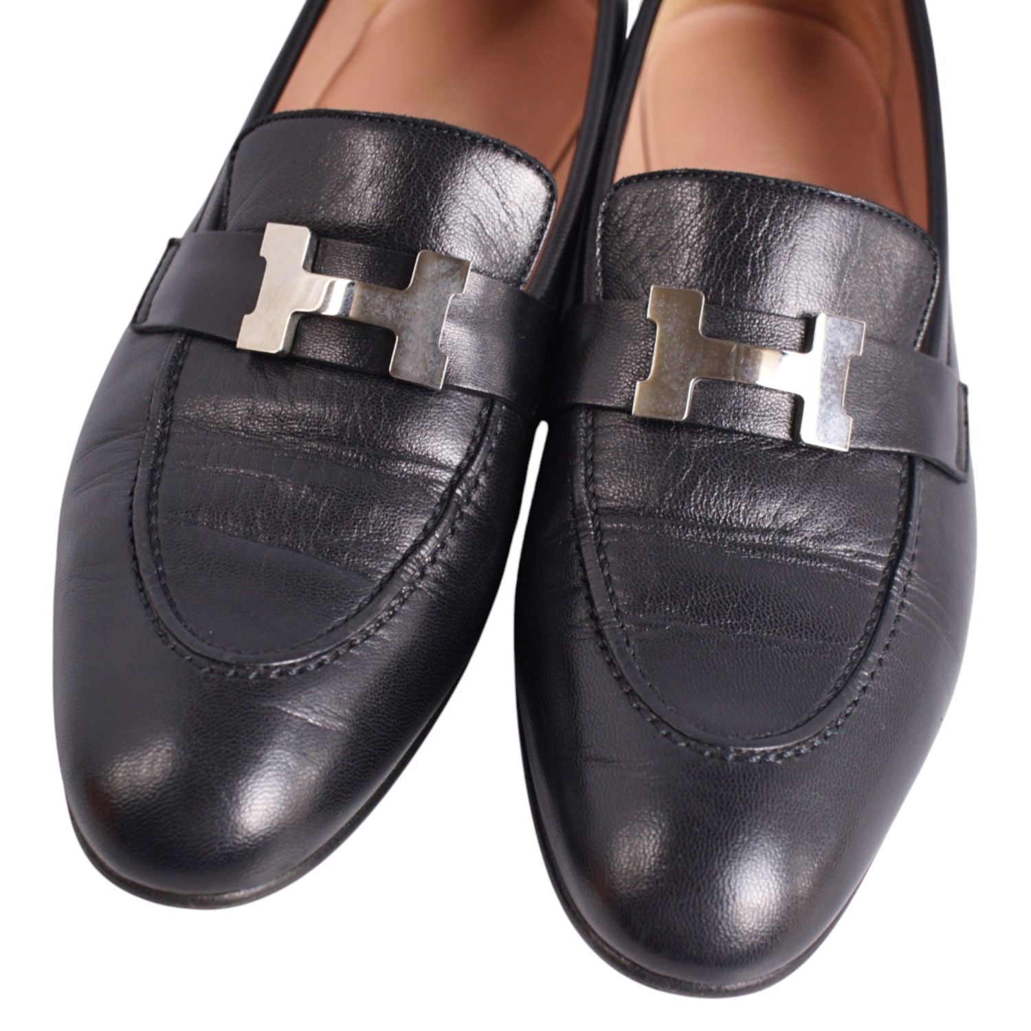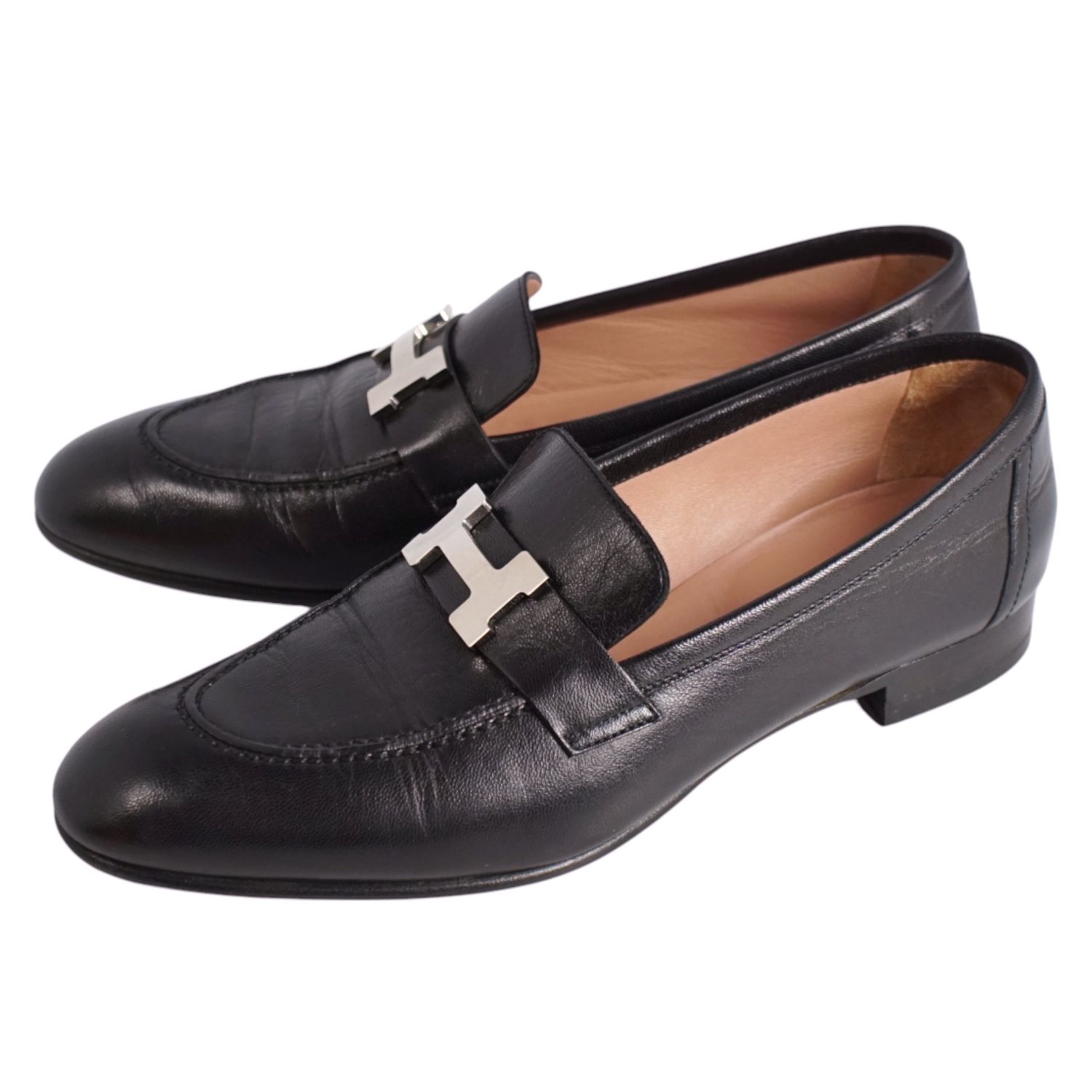 エルメス HERMES ローファー 2021 モカシン PARIS パリ コンスタンス Hロゴ金具 レザー シューズ レディース イタリア製 ブラック サイズ37.5(24.5cm相当)