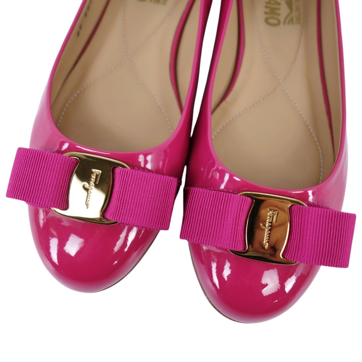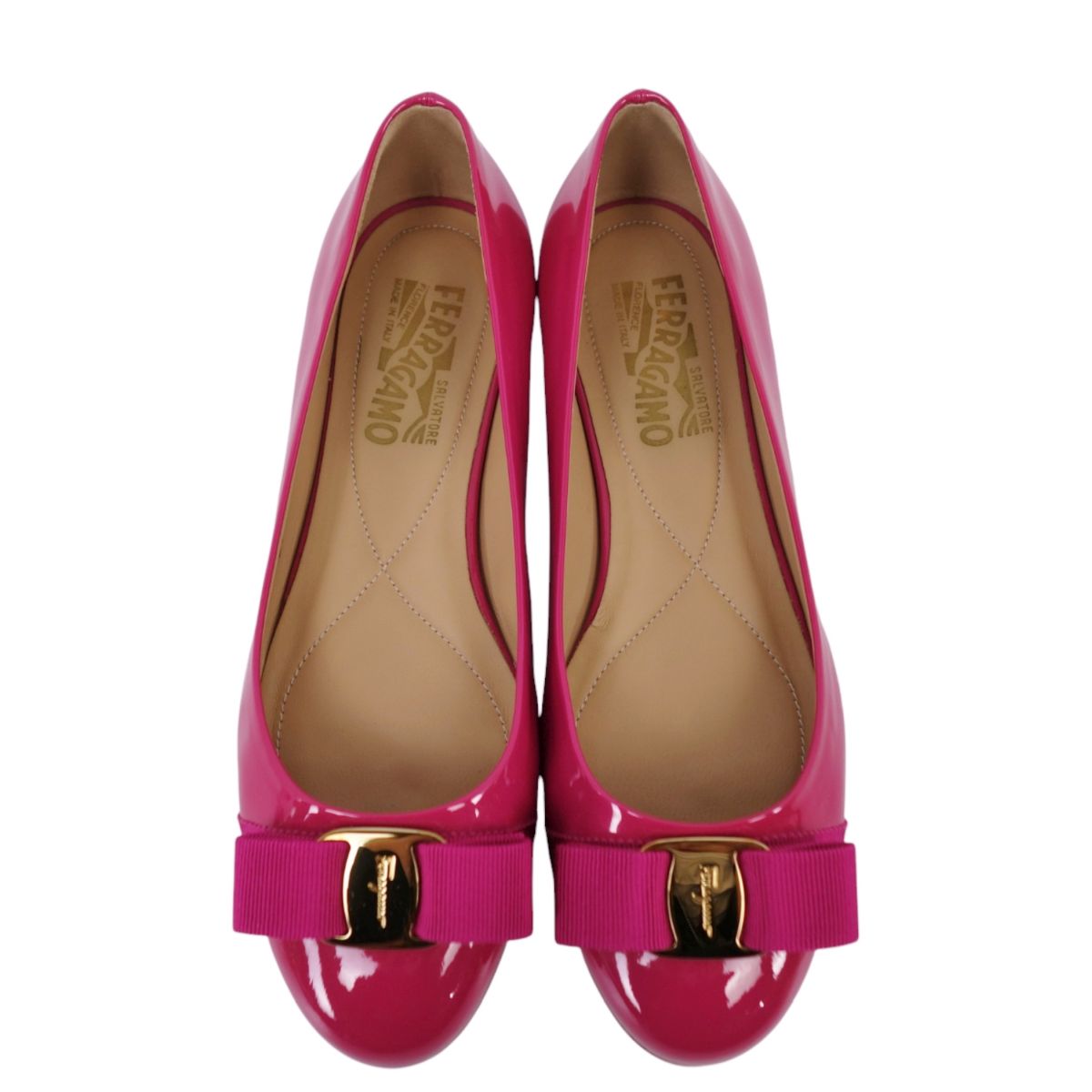 サルヴァトーレ フェラガモ Salvatore Ferragamo パンプス ヴァラ リボン ラウンドトゥ パテントレザー レザー イタリア製 シューズ 靴 レディース ピンク サイズ7D(24.5cm相当)