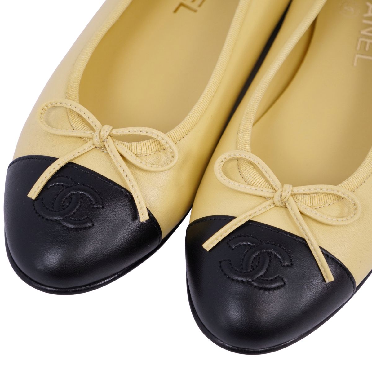 シャネル CHANEL パンプス バレリーナ G02819 リボン ココマーク レザー イタリア製 シューズ 靴 レディース イタリア製 イエローベージュ サイズ38C