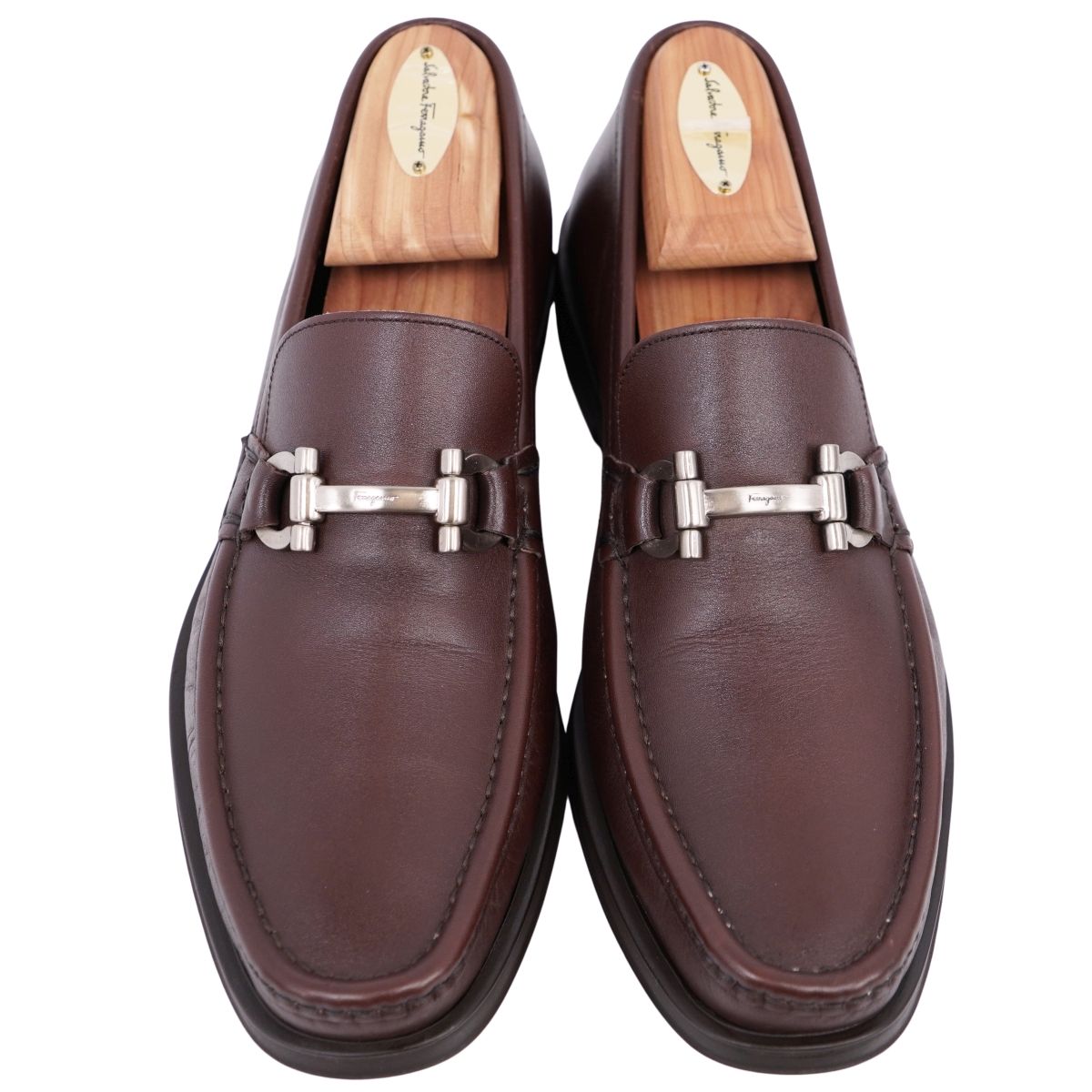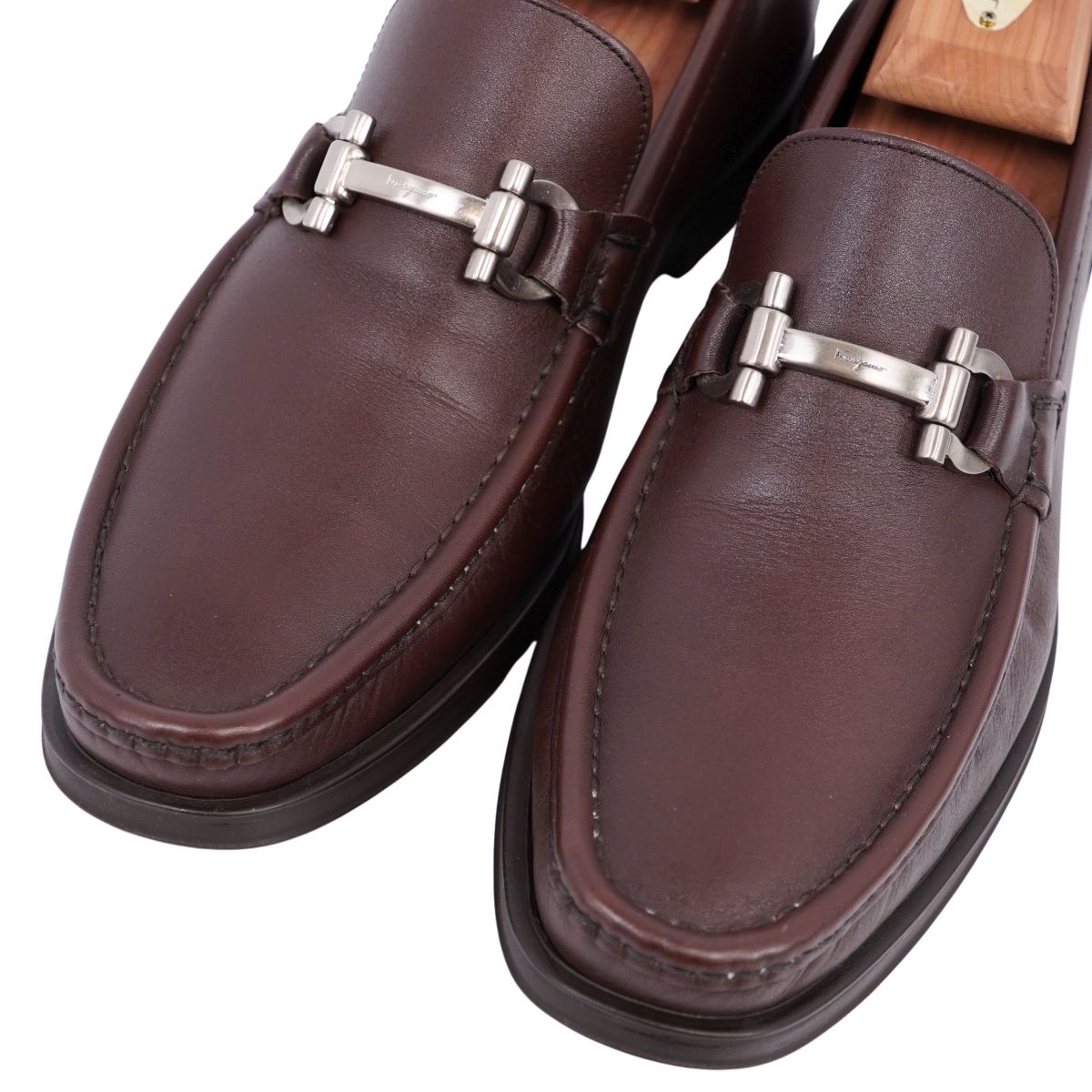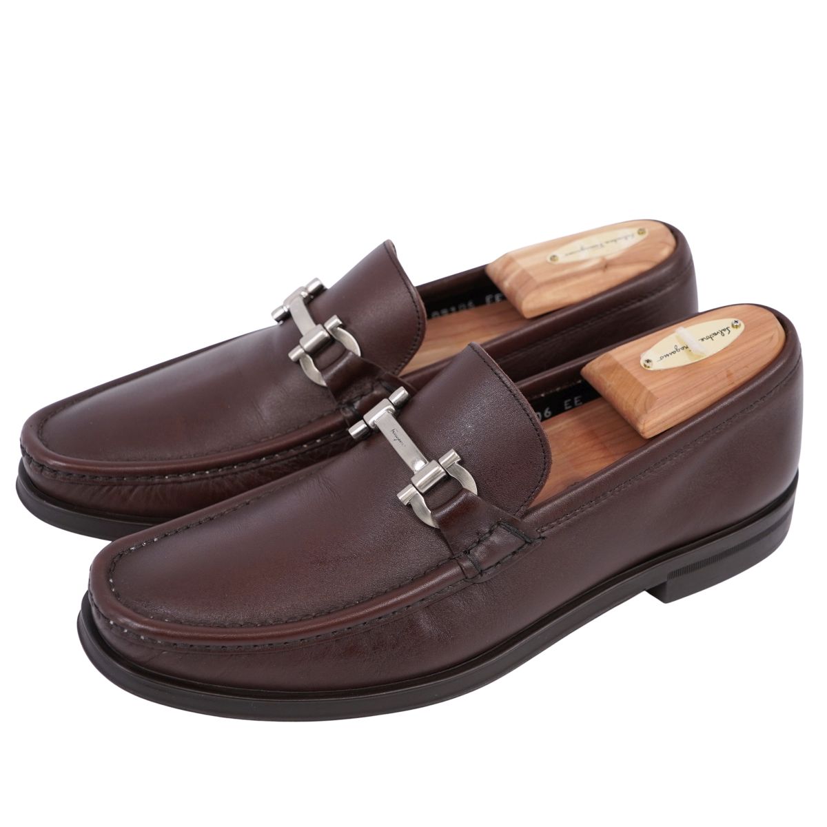 【美品】サルヴァトーレ フェラガモ Salvatore Ferragamo ローファー モカシン ガンチーニ ビジネスシューズ 革靴 メンズ イタリア製 6EE(24.5cm相当) ブラウン【中古】