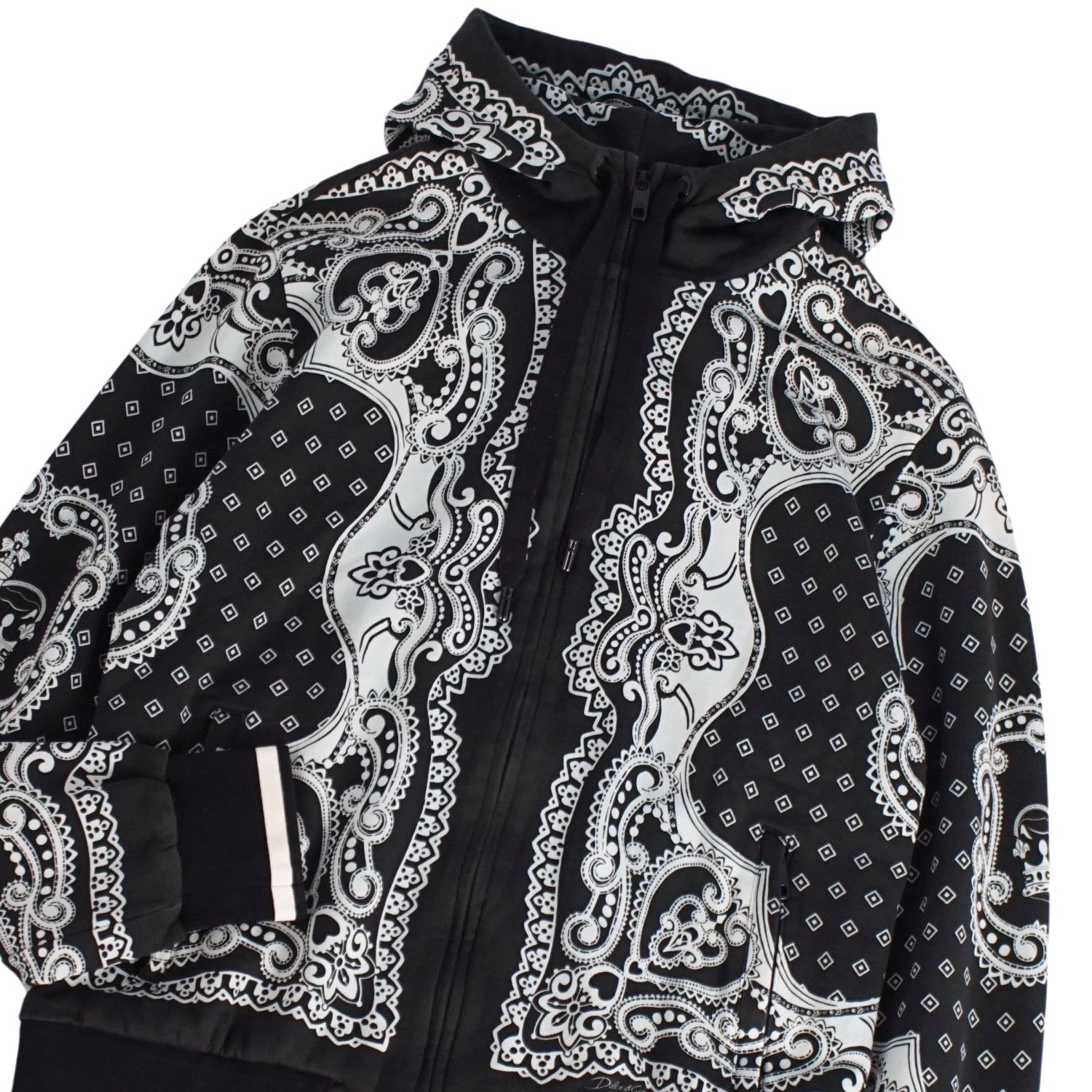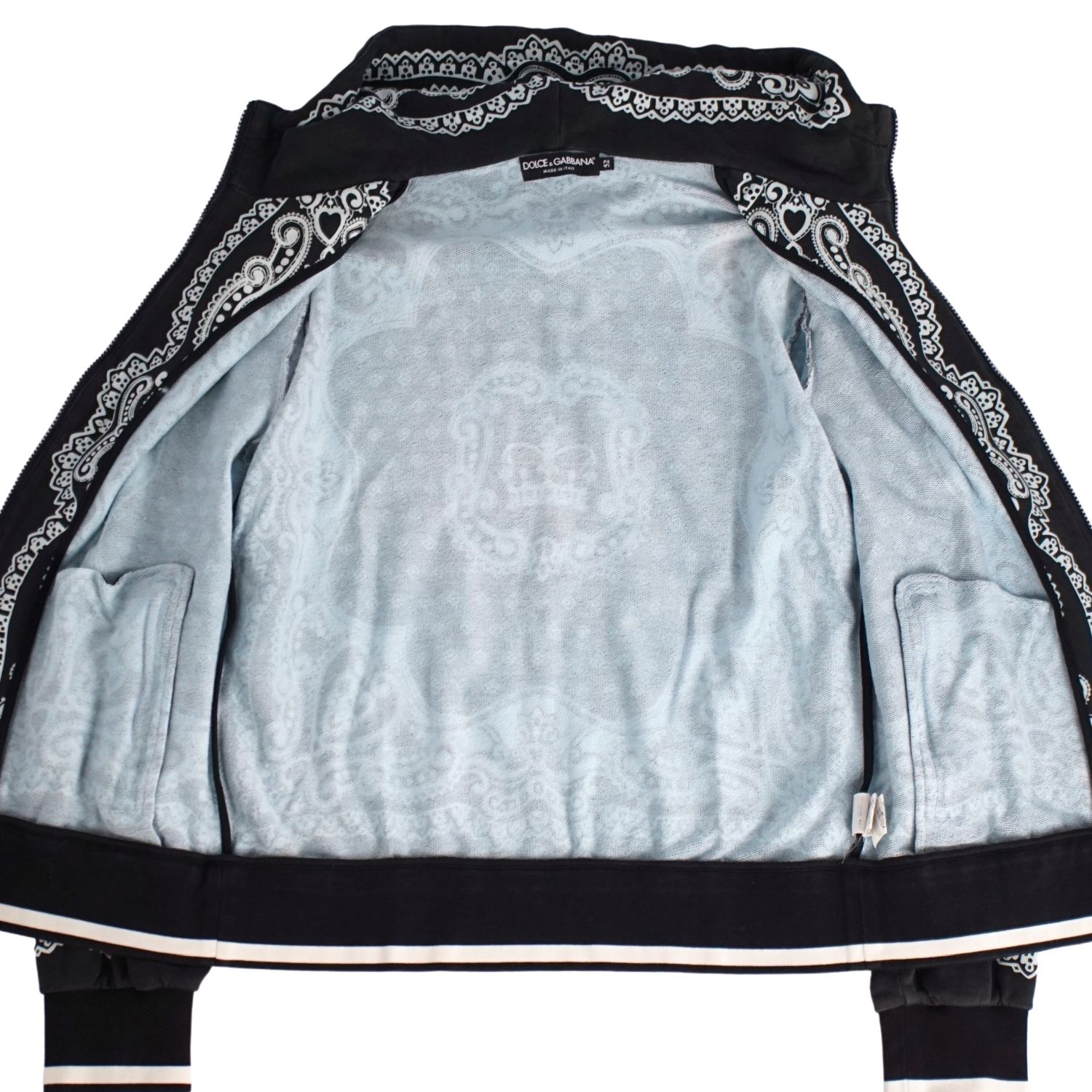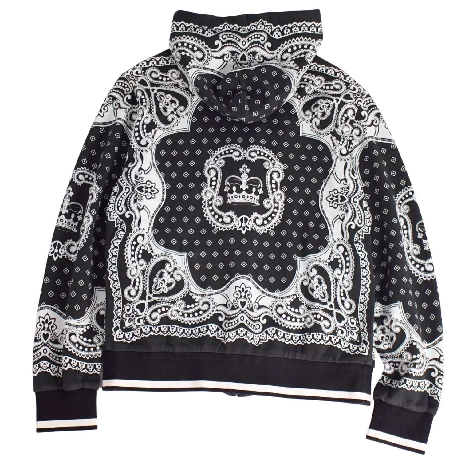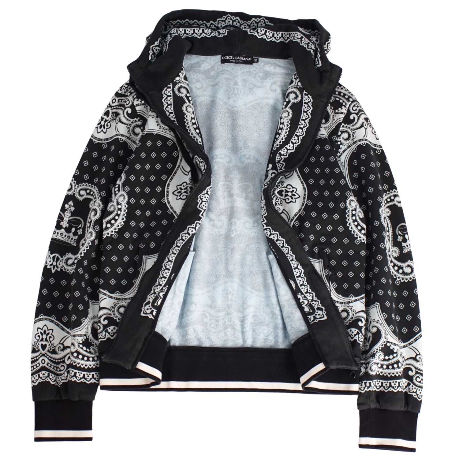 ドルチェ&ガッバーナ DOLCE&GABBANA パーカー フーディー スウェット ジップアップ ペイズリー コットン トップス メンズ イタリア製 ブラック サイズ52(L相当)
