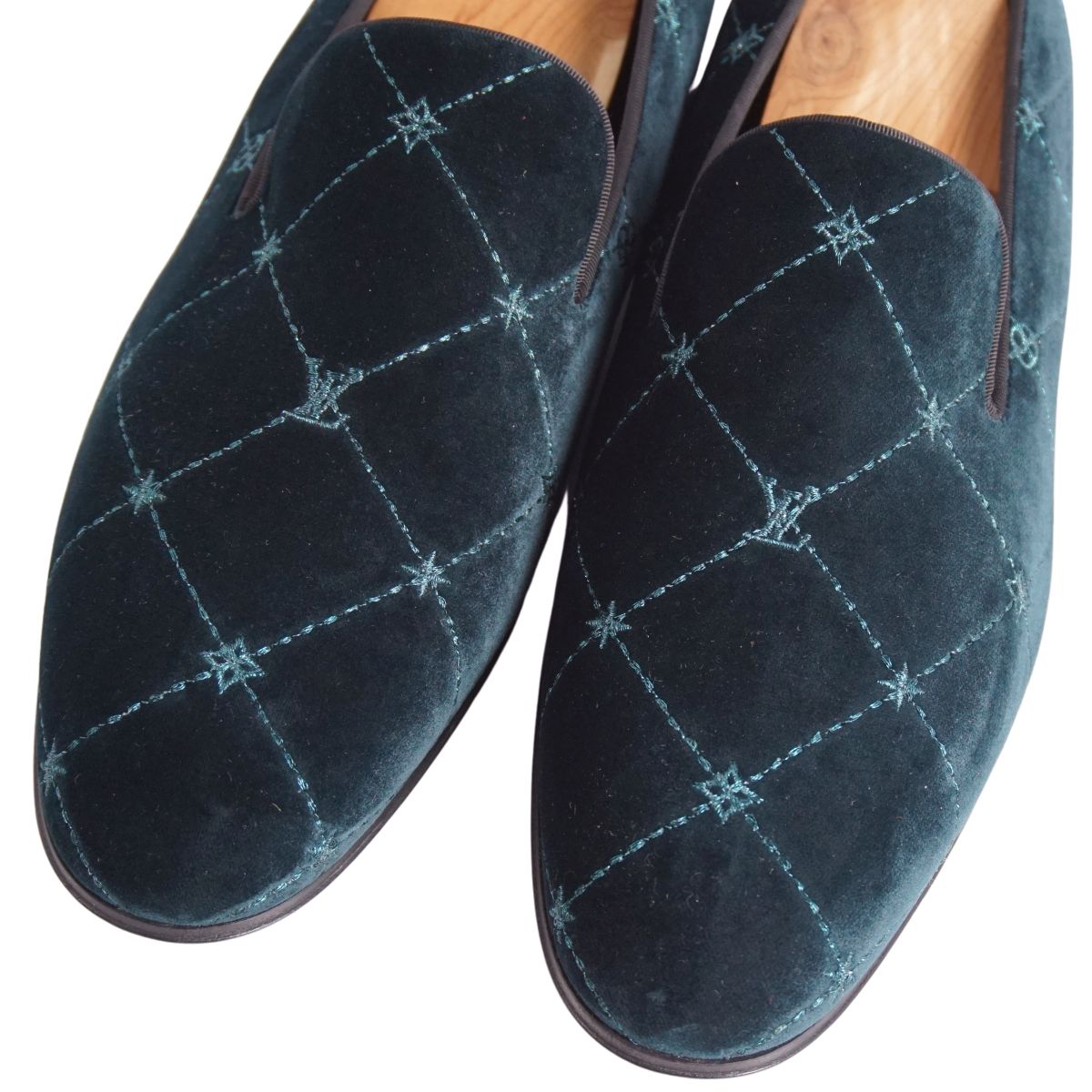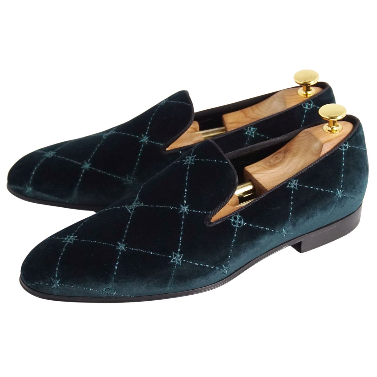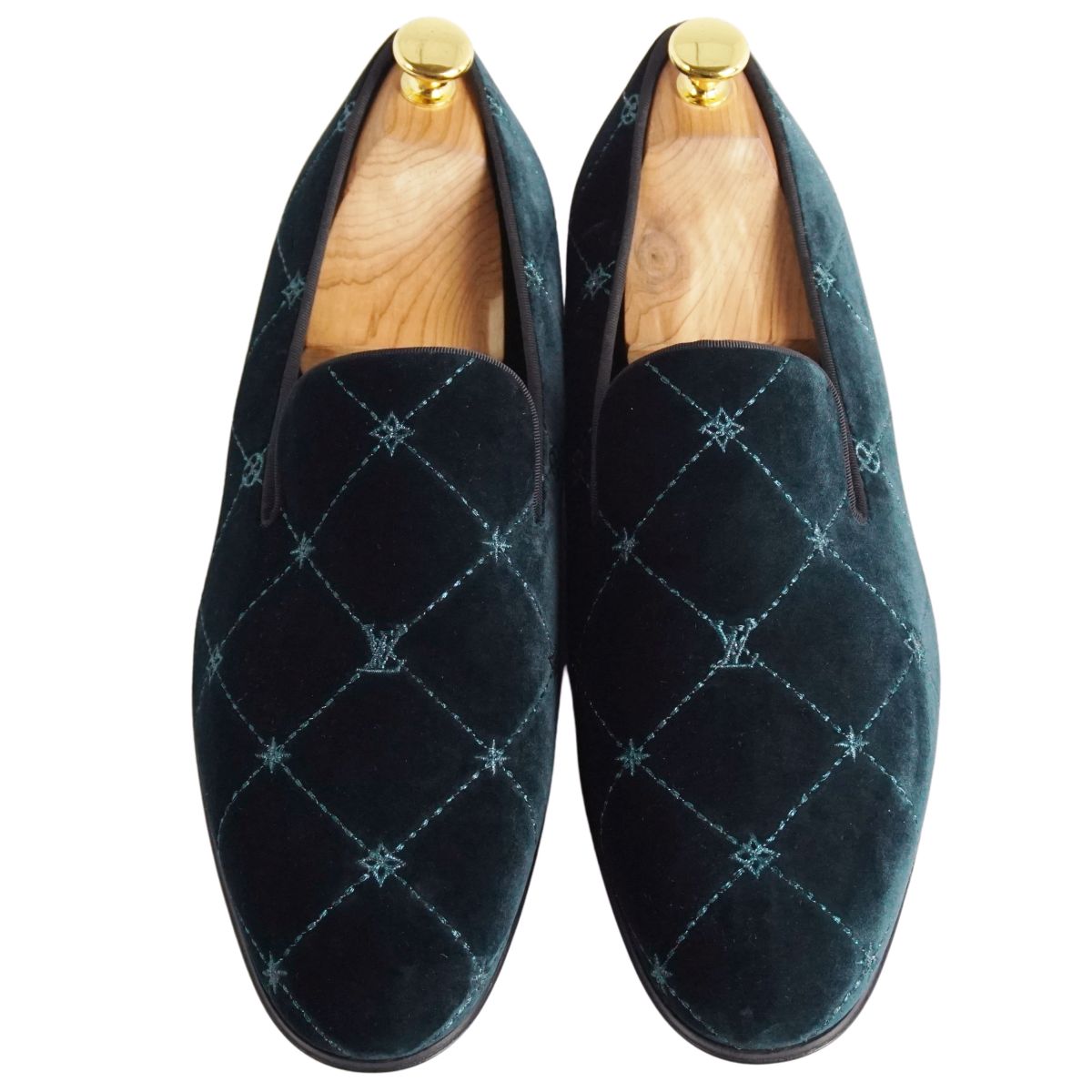 ルイヴィトン LOUIS VUITTON ローファー オートゥイユライン オペラシューズ ベロア シューズ 靴 メンズ イタリア製 グリーン サイズ8(26.5cm相当)