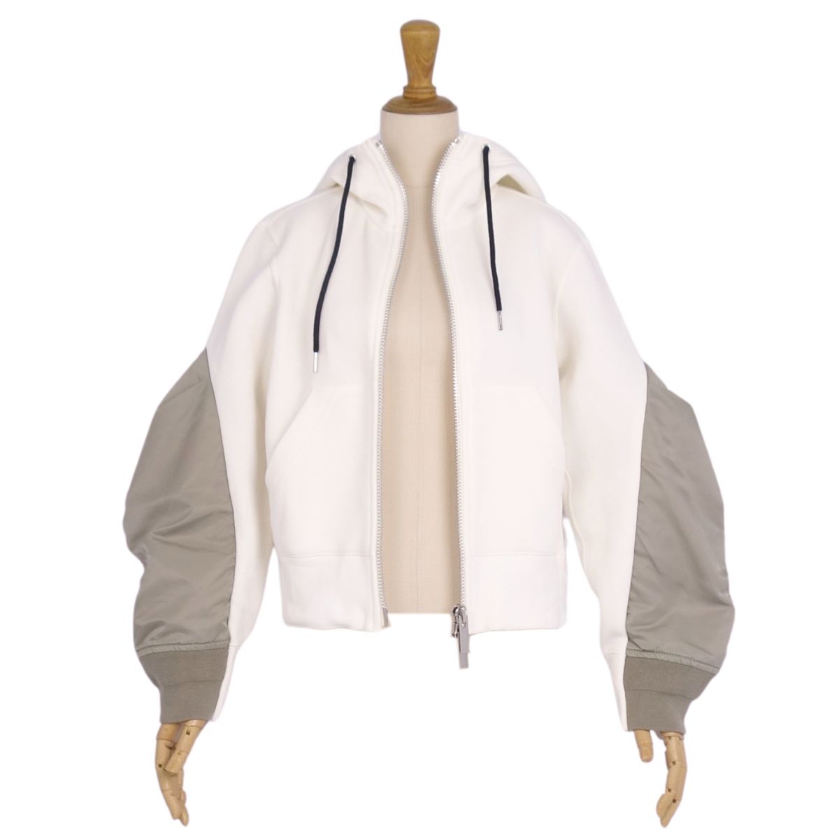 サカイ Sacai パーカー 24AW 24-07536 フーディー スウェット ジップアップ コットン トップス レディース ホワイト サイズ1(S相当)
