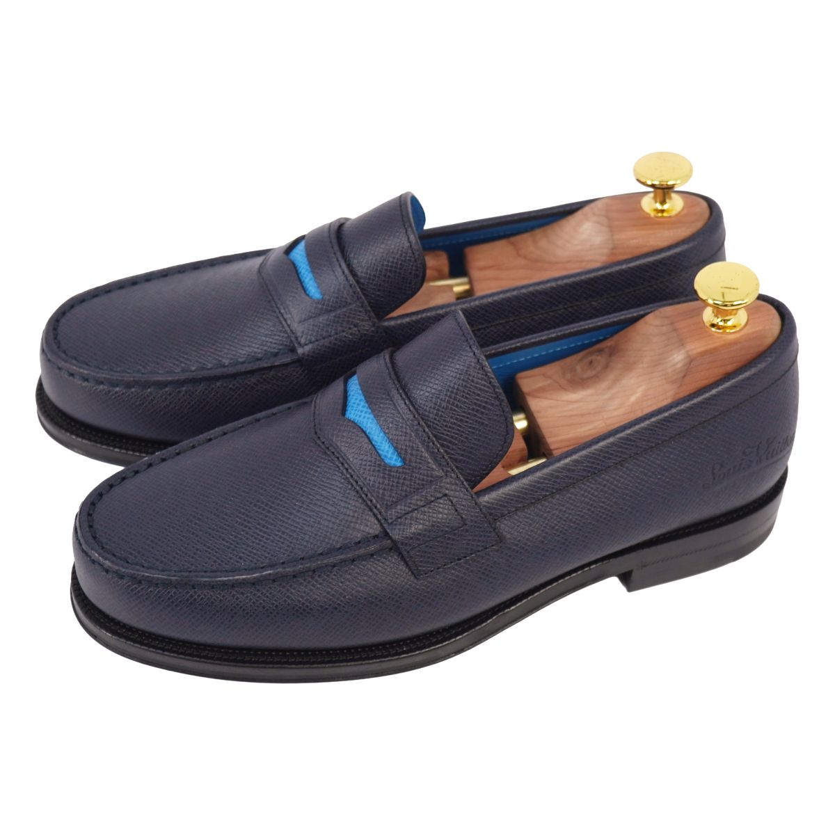 ルイヴィトン LOUIS VUITTON ローファー モカシン ソルボンヌライン レザー 靴 メンズ イタリア製 ネイビー サイズ5L(24.5cm相当)