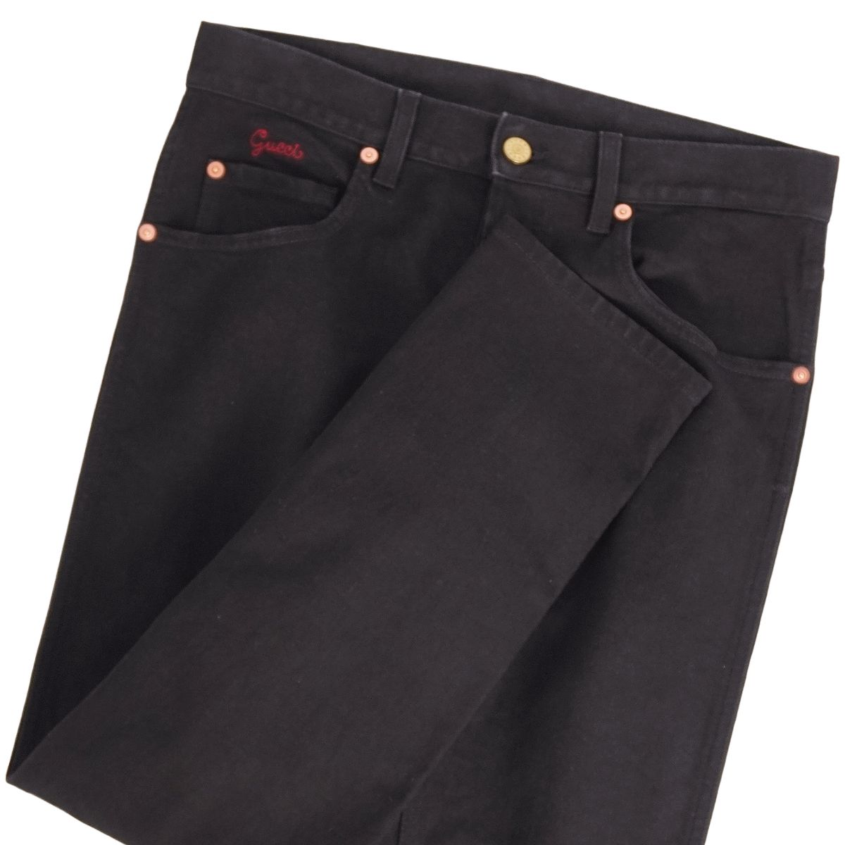 商品名 【美品】グッチ GUCCI パンツ デニムパンツ ブラックデニム ロゴ刺繍 コットン ボトムス メンズ イタリア製 30 ブラック【中古】