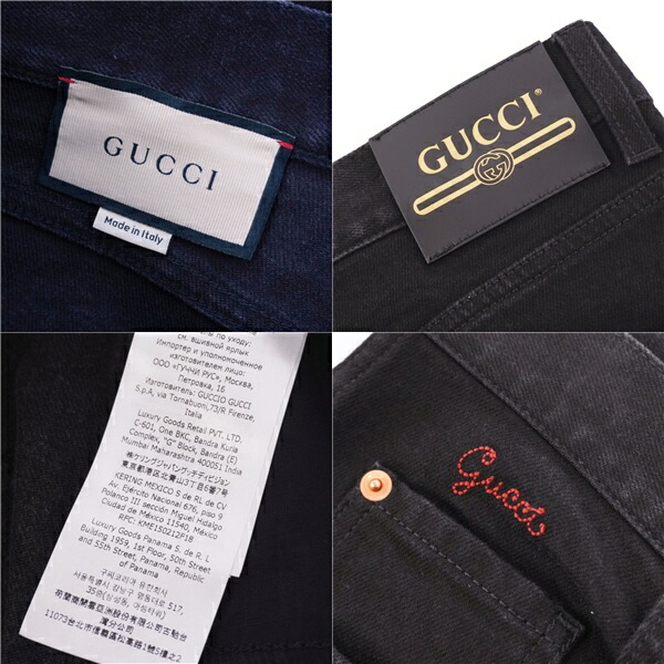 グッチ GUCCI パンツ デニムパンツ ブラックデニム ロゴ刺繍 コットン ボトムス メンズ イタリア製 ブラック サイズ30