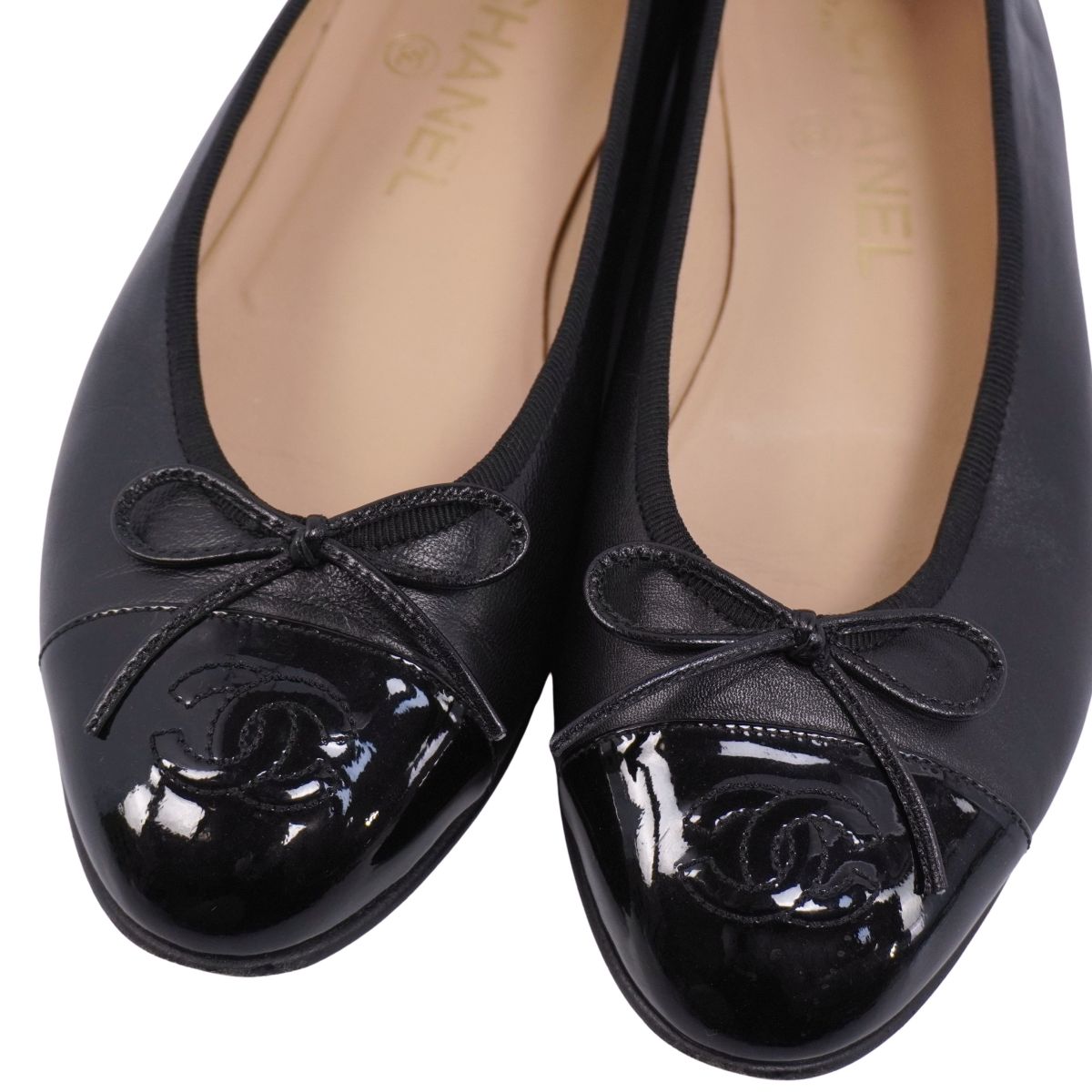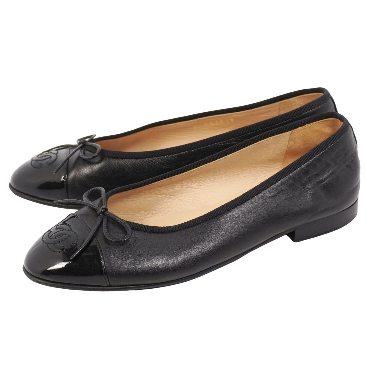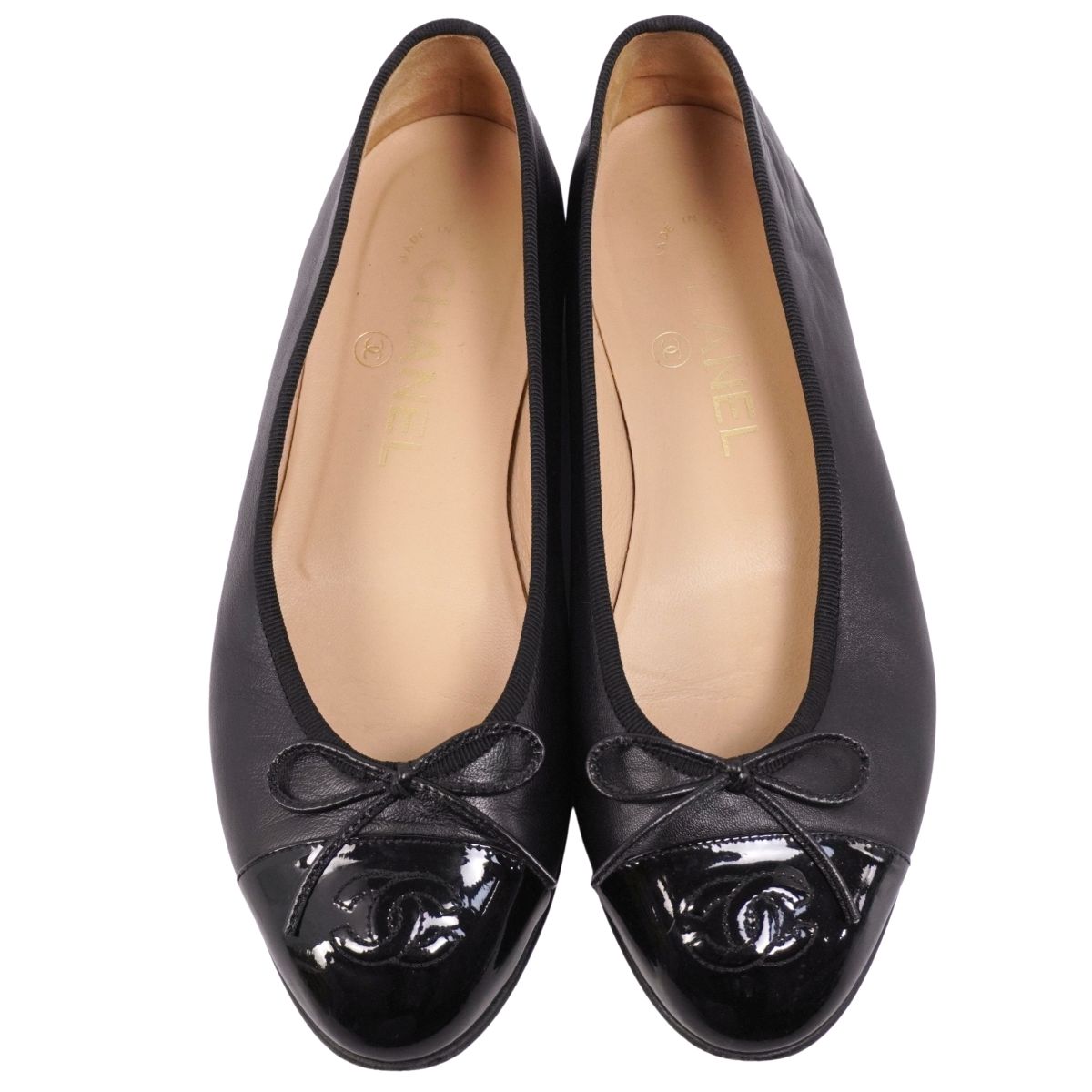 シャネル CHANEL パンプス バレリーナ G02819 リボン ココマーク レザー シューズ 靴 レディース イタリア製 ブラック サイズ36.5C