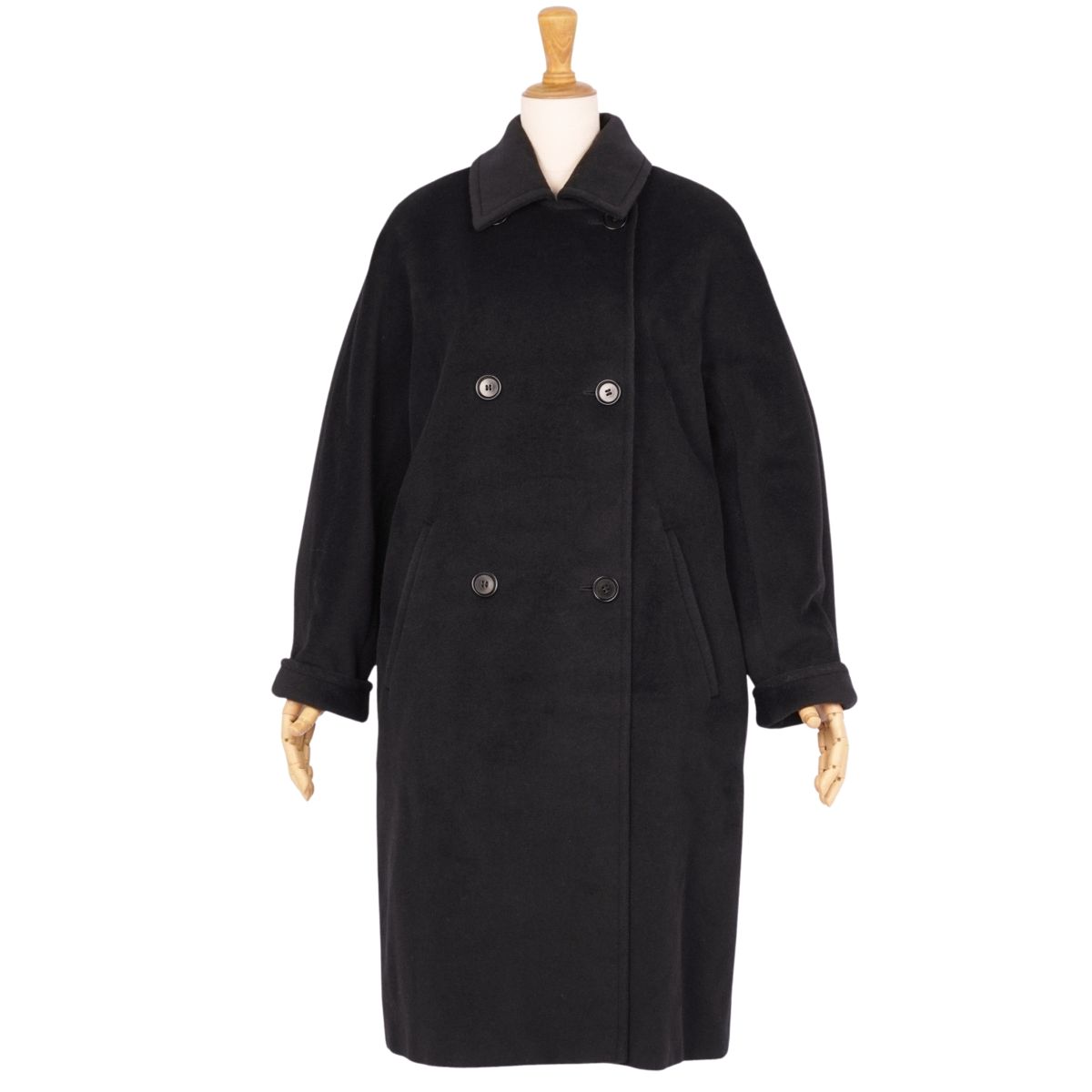 マックスマーラ Max Mara コート ダブルブレスト ロングコート ウール アウター レディース イタリア製 ブラック サイズJI38 USA4 GB6(M相当)