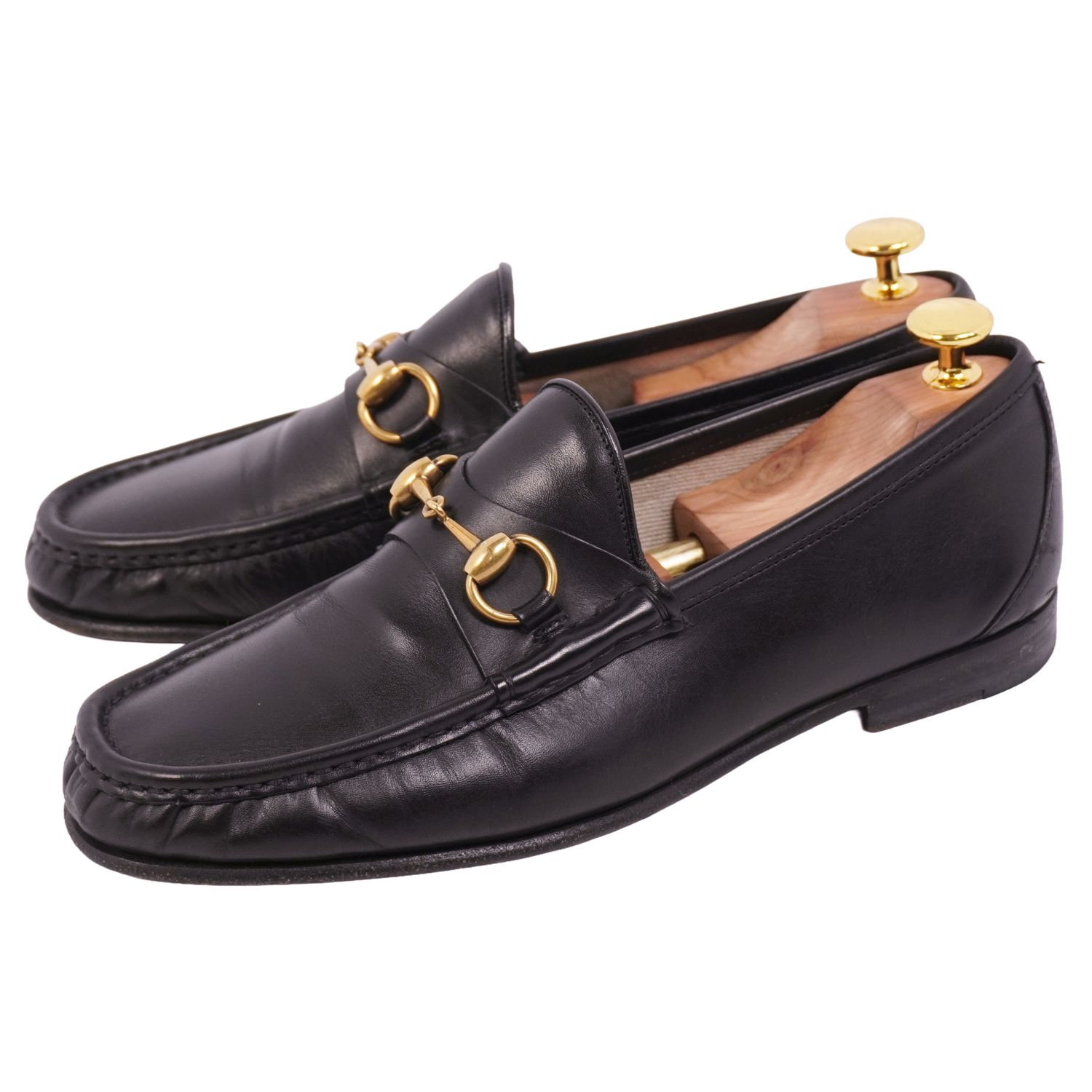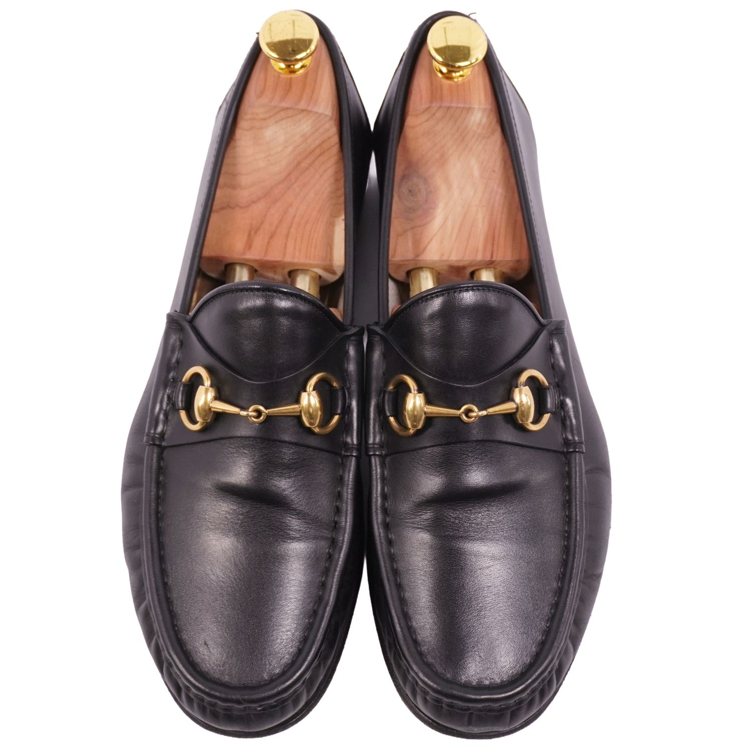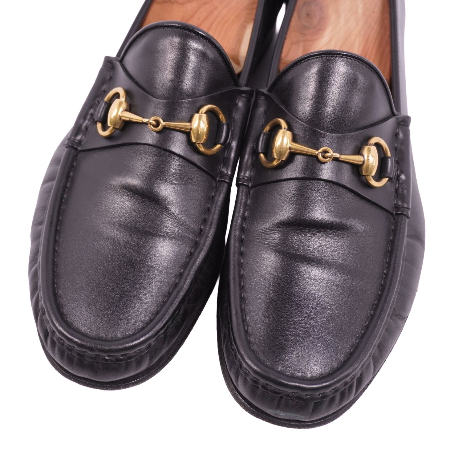 グッチ GUCCI ローファー モカシン ホースビット カーフレザー シューズ 革靴 メンズ ブラック サイズ6.5(25.5cm相当)