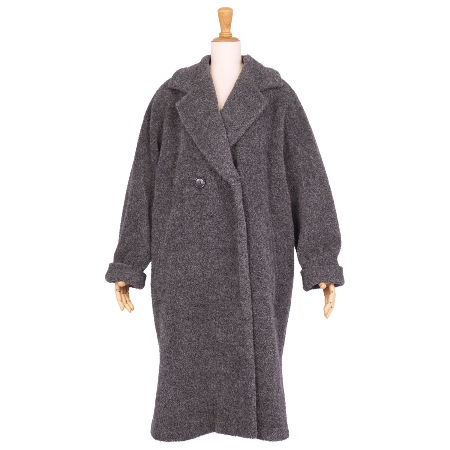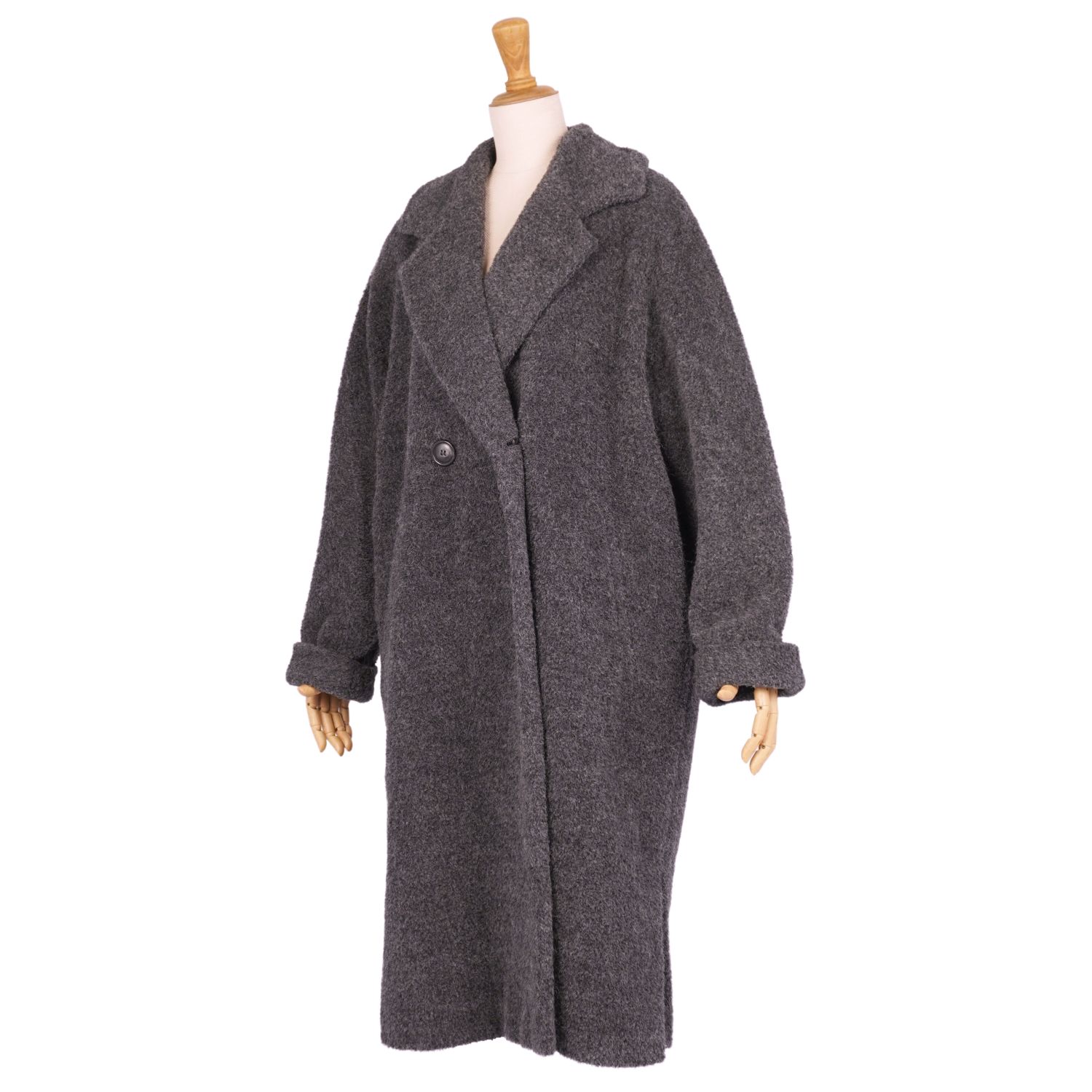 マックスマーラ Max Mara 白タグ コート ロングコート ダブルブレスト シャギー アルパカ ウール アウター レディース グレー サイズJI40 USA6 FB38(M相当)