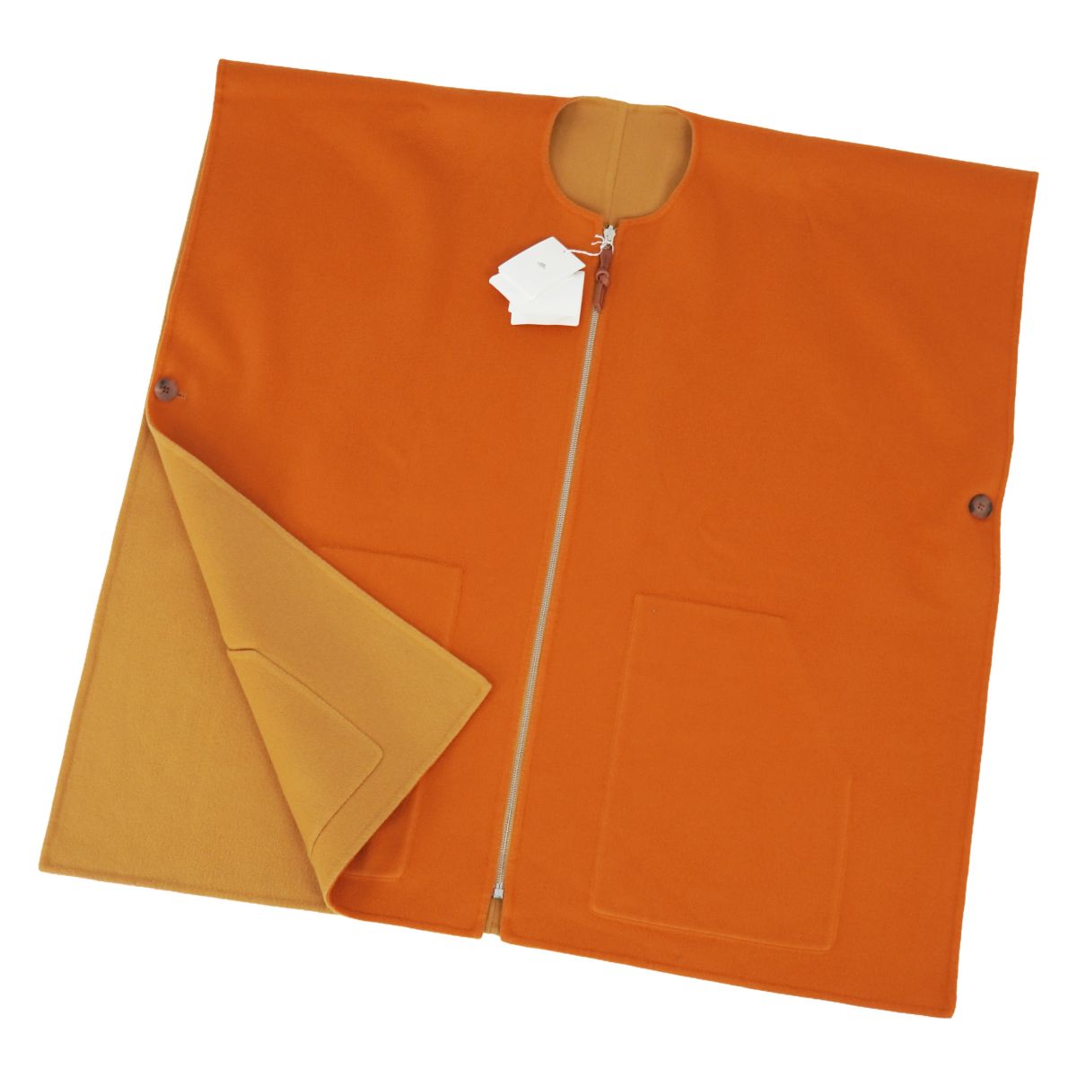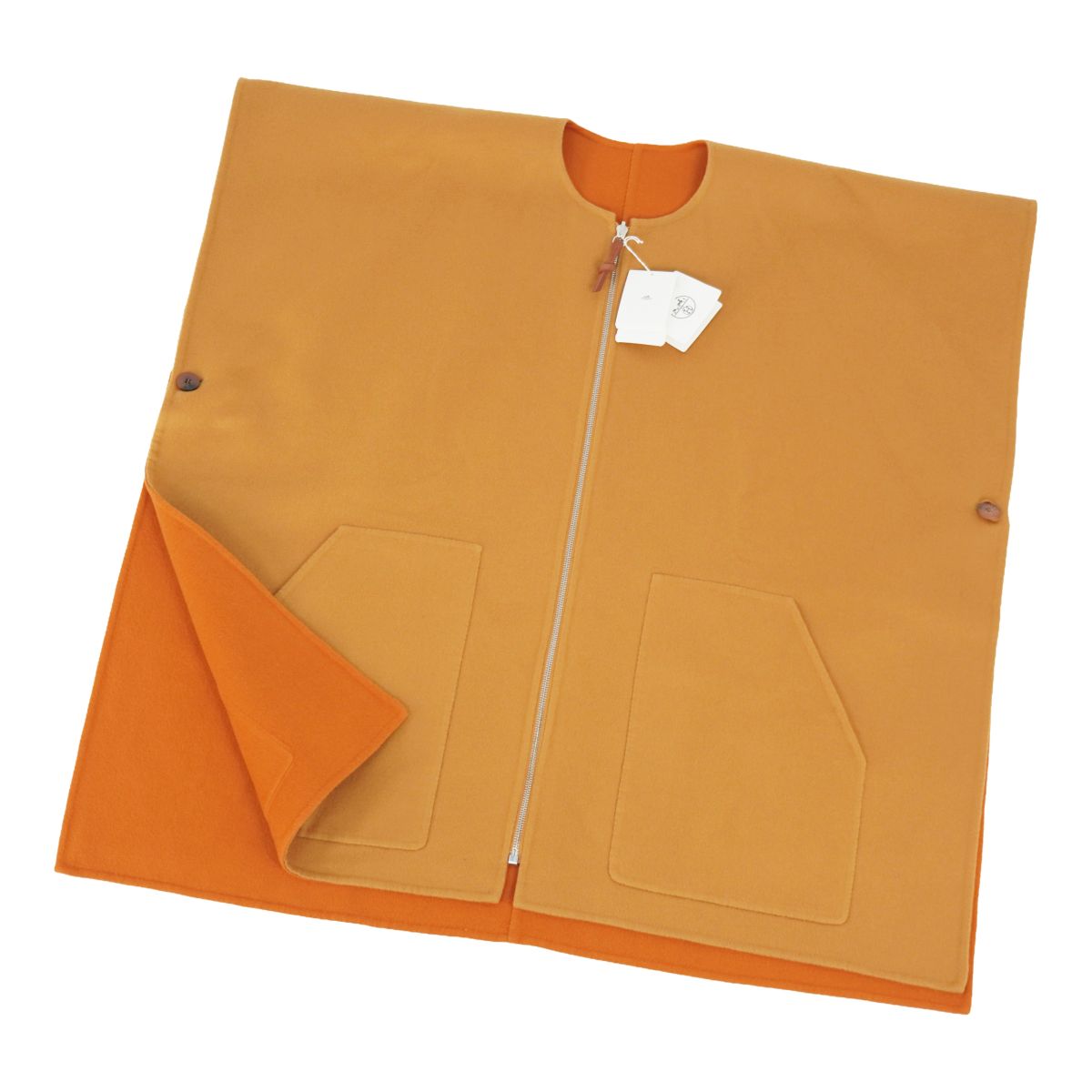 エルメス HERMES 2023 コート ポンチョ ケープ リバーシブル カシミヤ ダブルフェイス フランス製 アウター レディース オレンジ サイズ38(M相当)