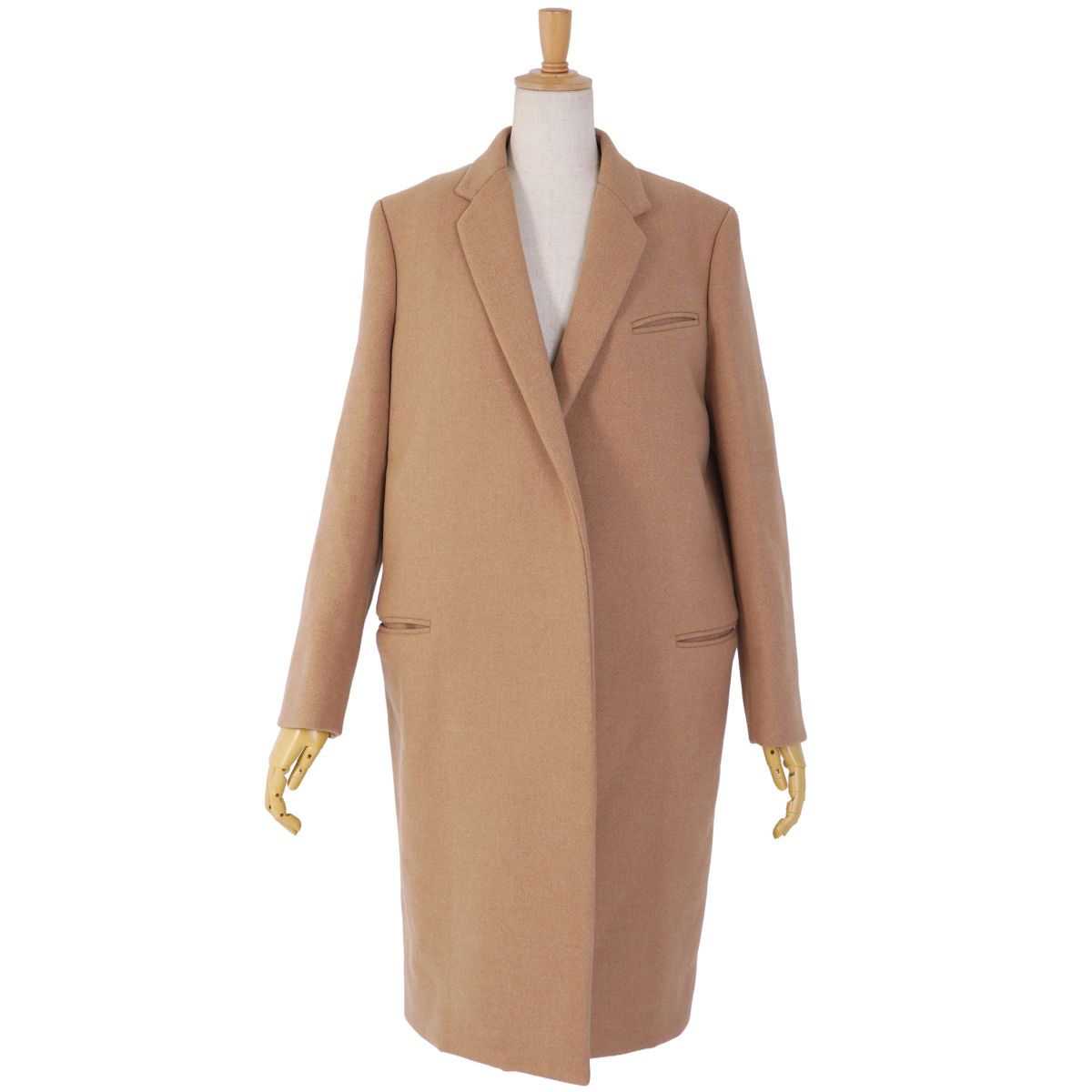 セリーヌ CELINE コート フィービー期 クロンビーコート チェスターコート ボタンレス キャメルヘアー ウール アウター レディース キャメルブラウン サイズ38(M相当)