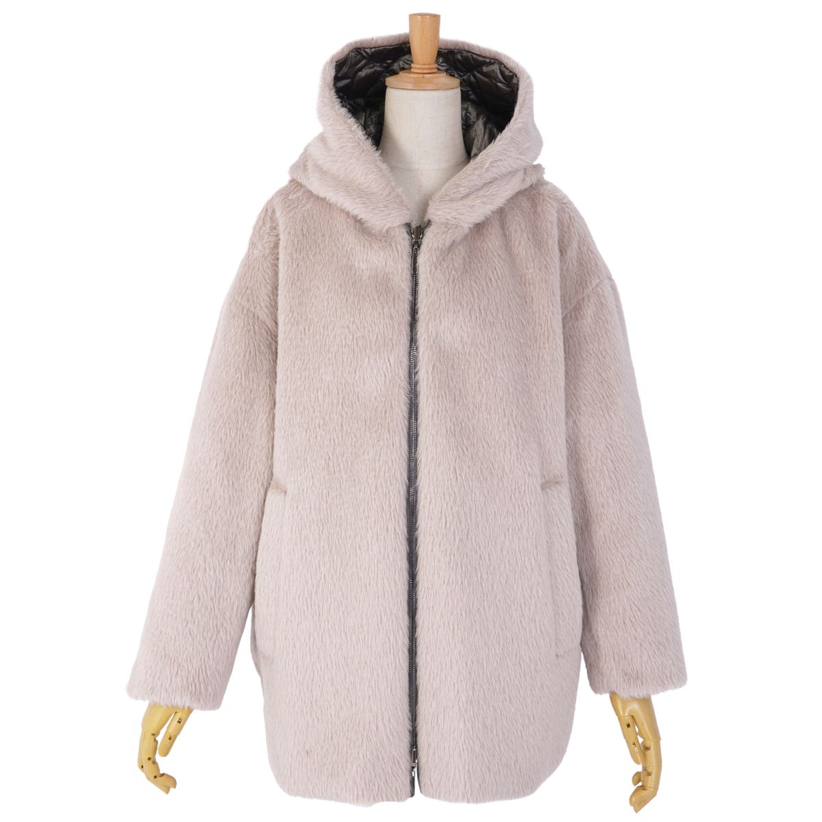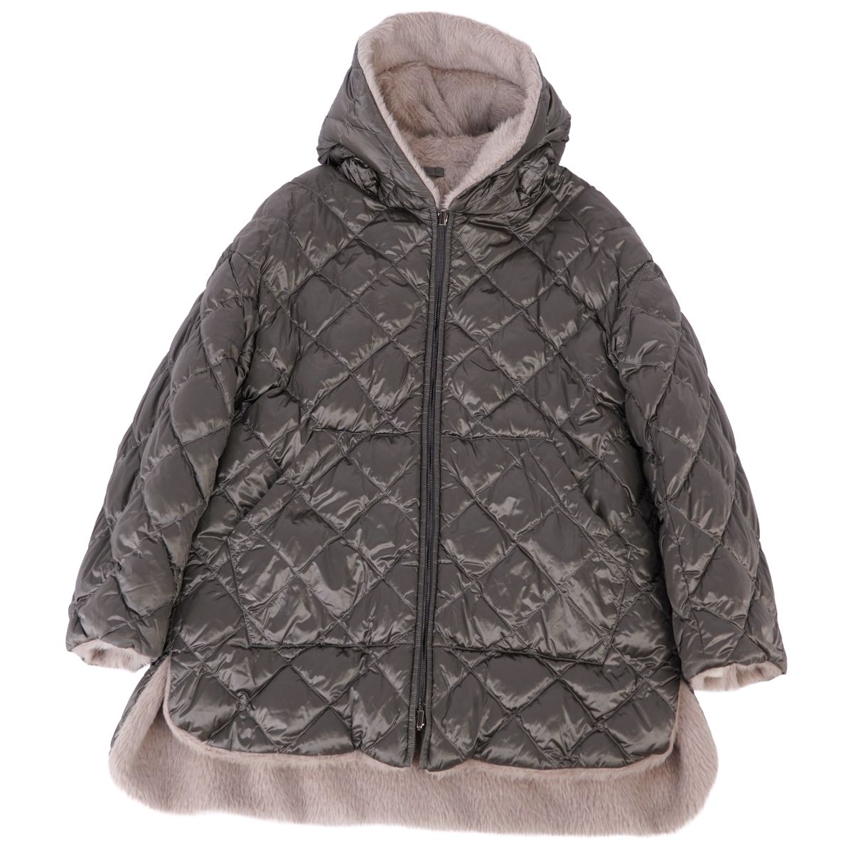 マックスマーラ Max Mara The Cube コート 2024 ダウンコート フード付き リバーシブル アルパカ ウール アウター レディース グレージュ サイズIT34 US0 GB2(S相当)